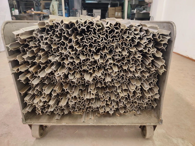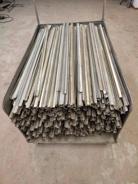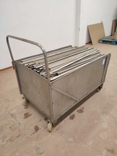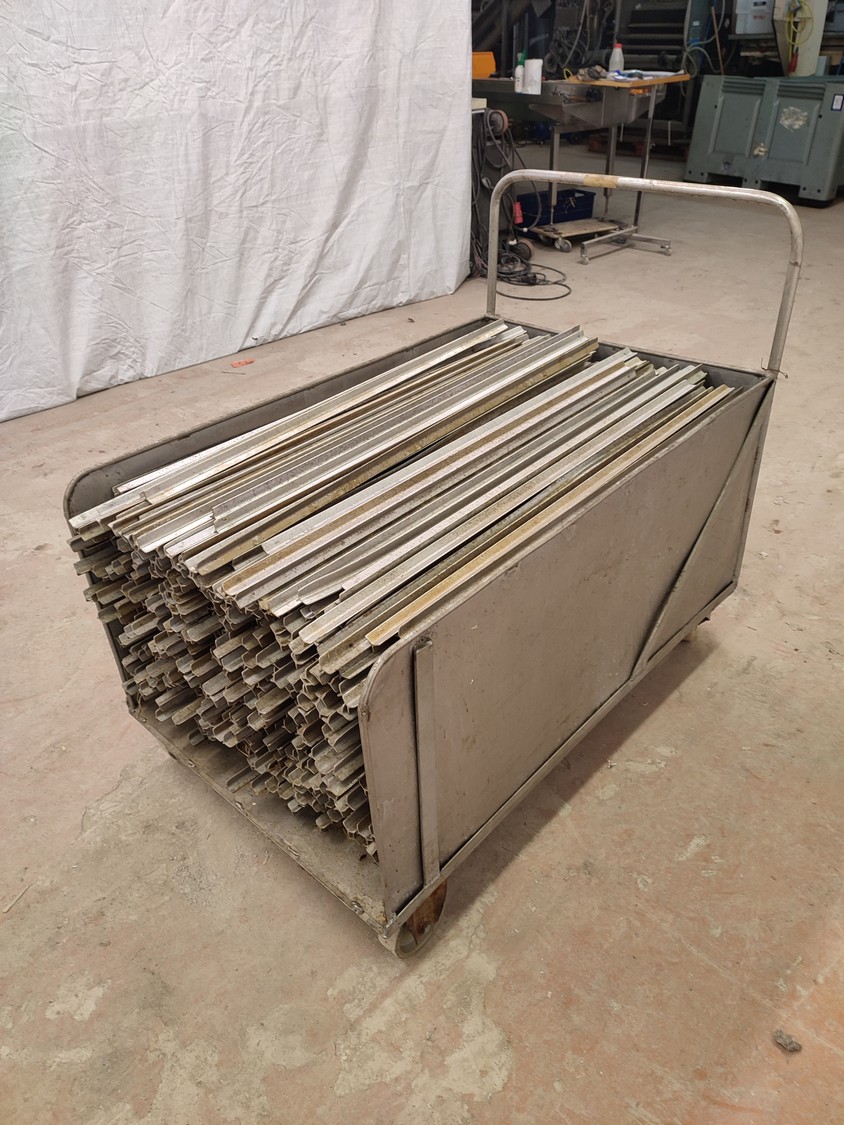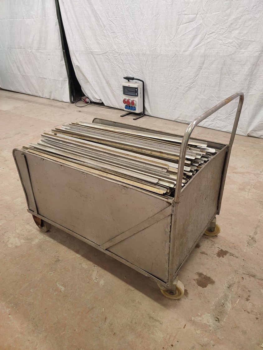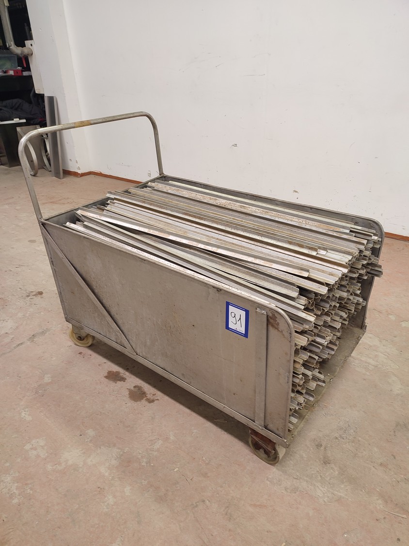 S/s trolley with large amount of aluminium smoke sticks, Y-shaped, length: 960 mm, dimensions trolley: 1200 mm x 720 mm x 990 mm.