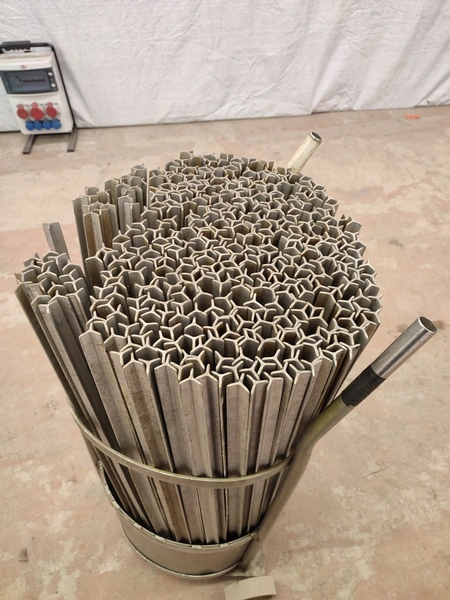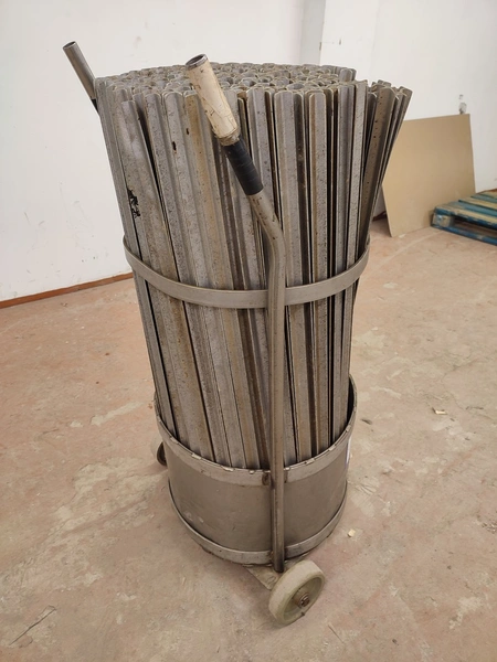 S/s trolley with large amount of aluminium smoke sticks, Y-shaped, length: 1000 mm, dimensions trolley: 530 mm x 620 mm x 1110 mm.