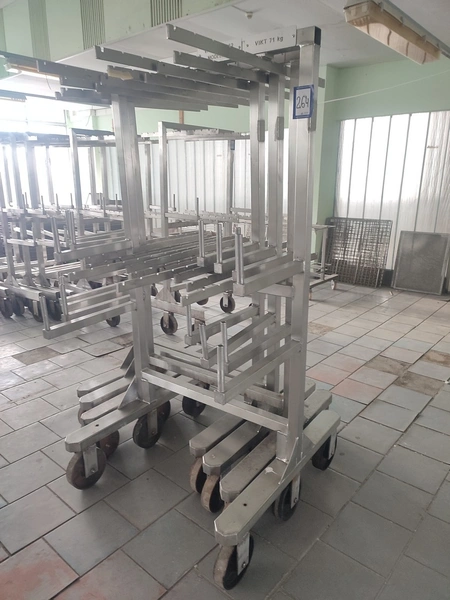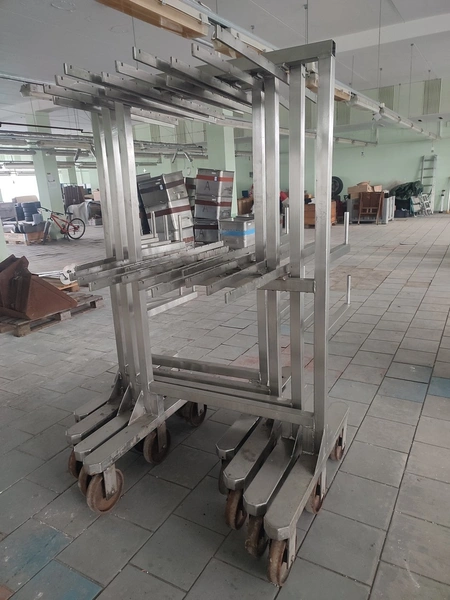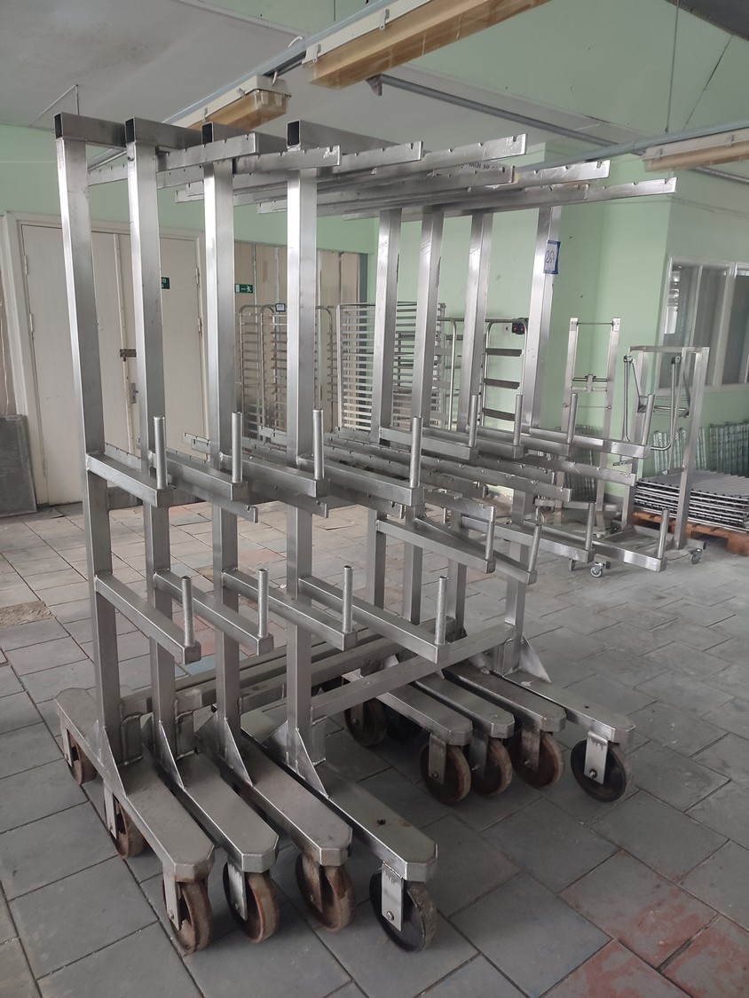 4 s/s smoke trolleys, dimensions: (4x) 1000 mm x 990 mm x 1950 mm.