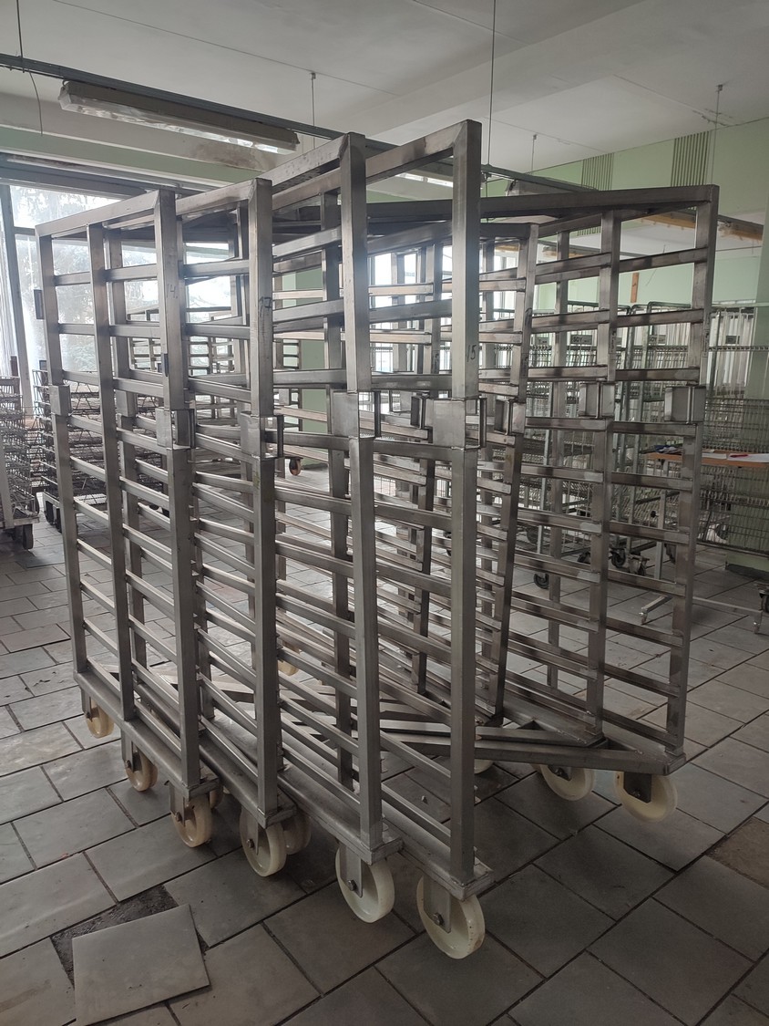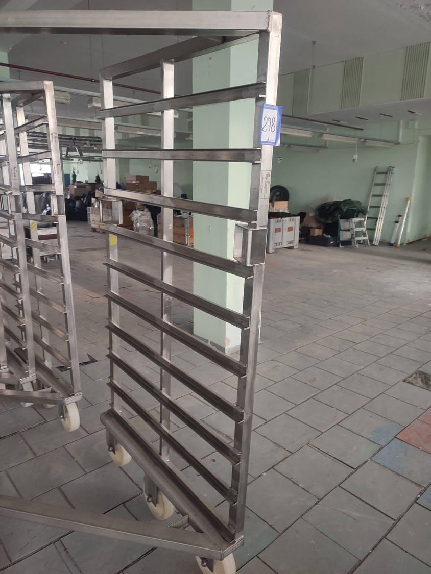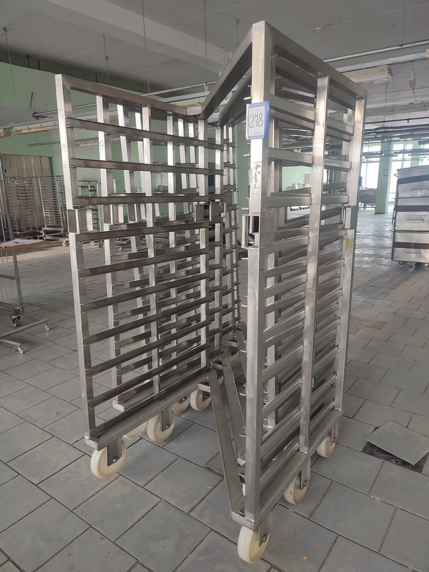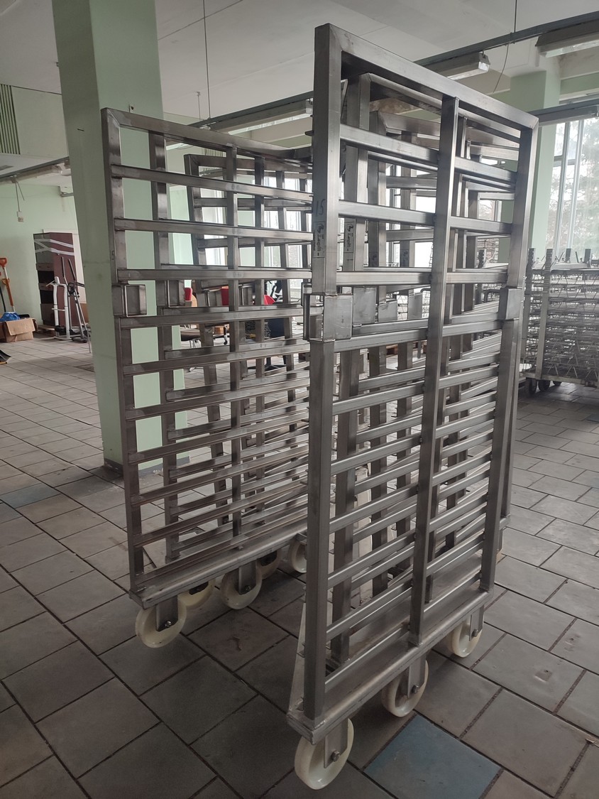 4 s/s smoke trolleys, 10 floors, dimensions floors: (10x) 990 mm x 865 mm, total dimensions: (4x) 990 mm x 995 mm x 1905 mm.