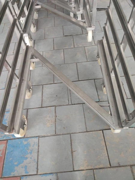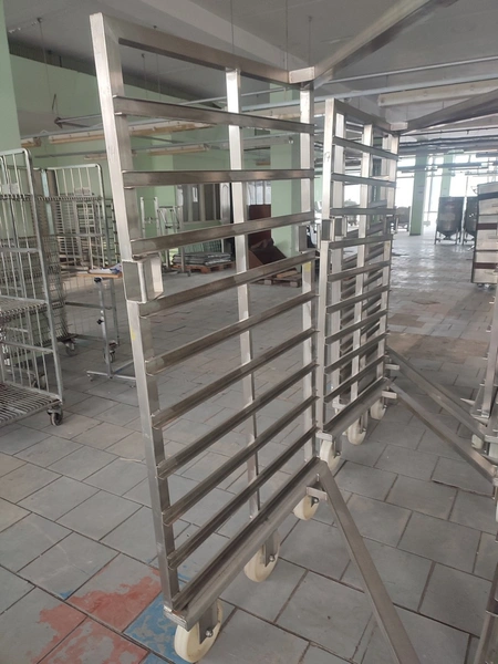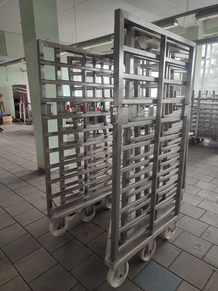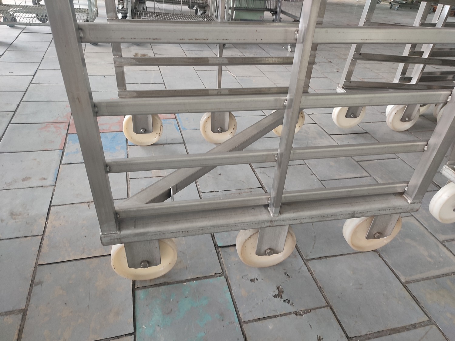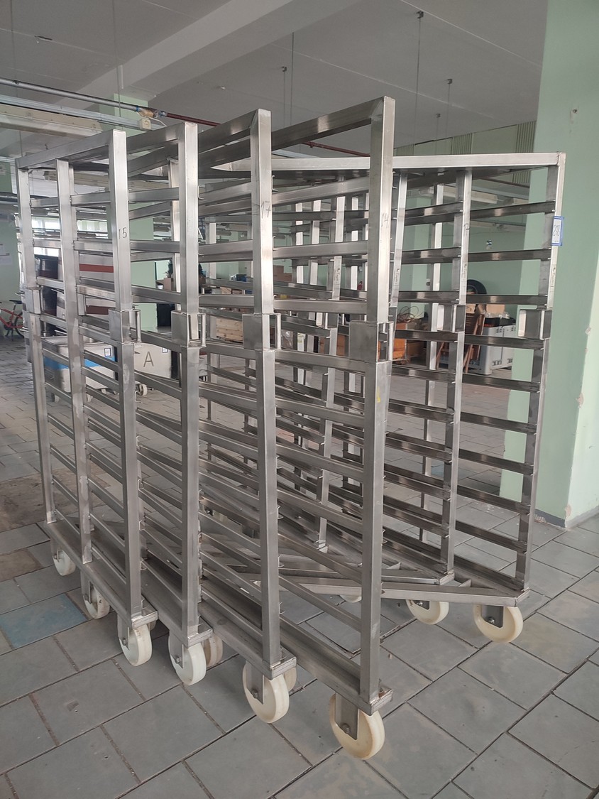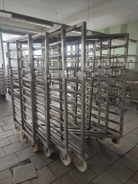 4 s/s smoke trolleys, 10 floors, dimensions floors: (10x) 990 mm x 865 mm, total dimensions: (4x) 990 mm x 995 mm x 1905 mm.