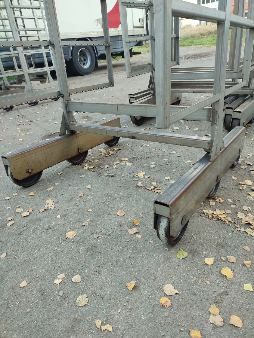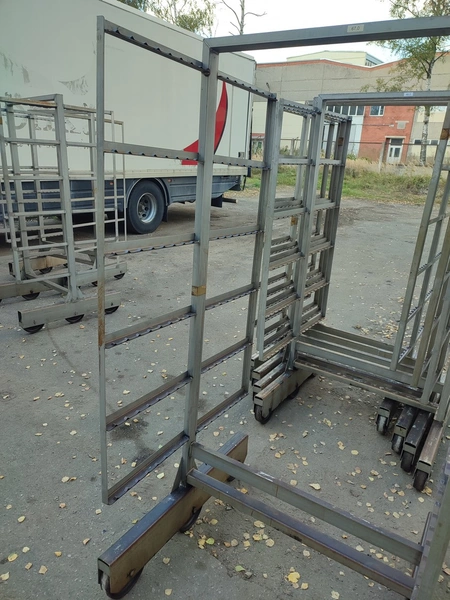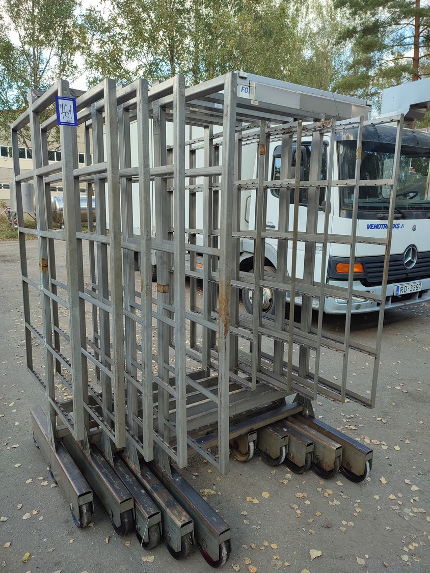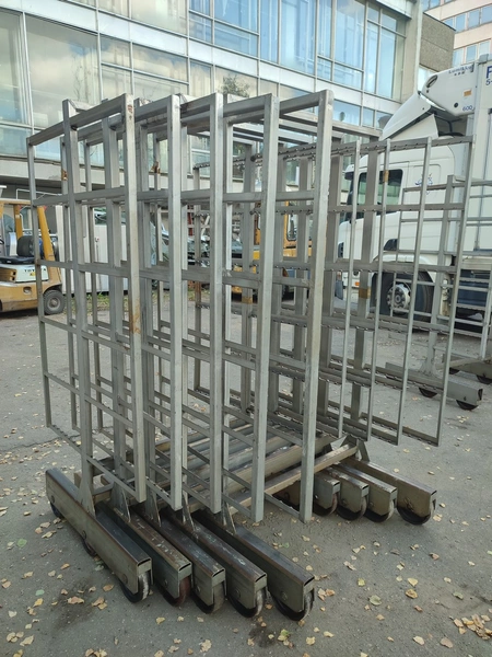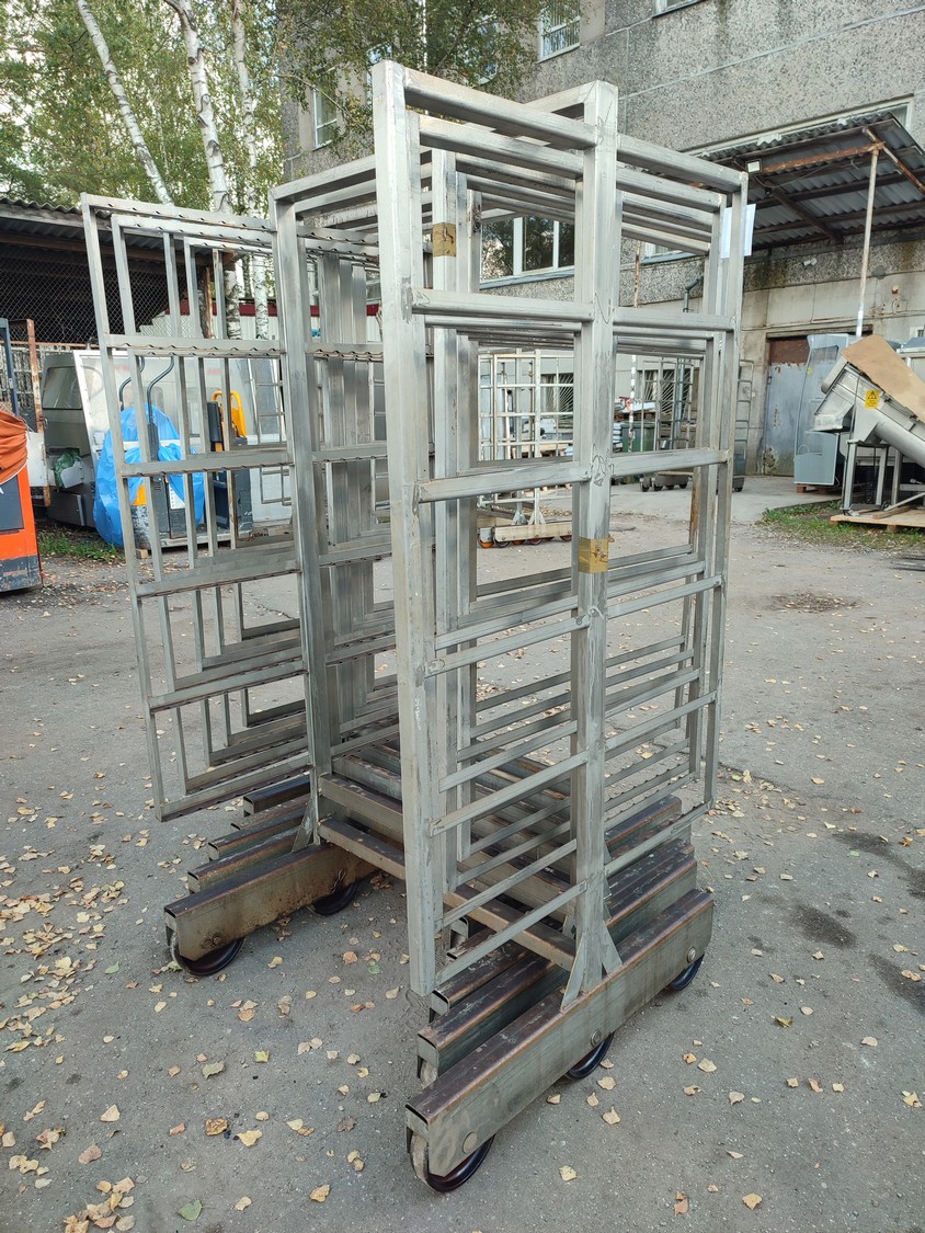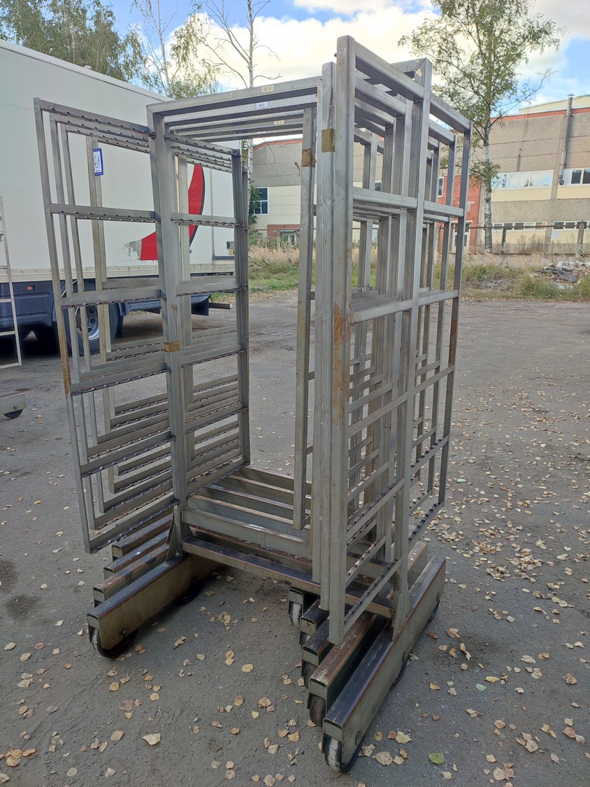5 s/s smoke trolleys, 6 floors each, dimensions each floor: 1005 mm x 995 mm, total dimensions: (5x) 1015 mm x 1000 mm x 2005 mm.