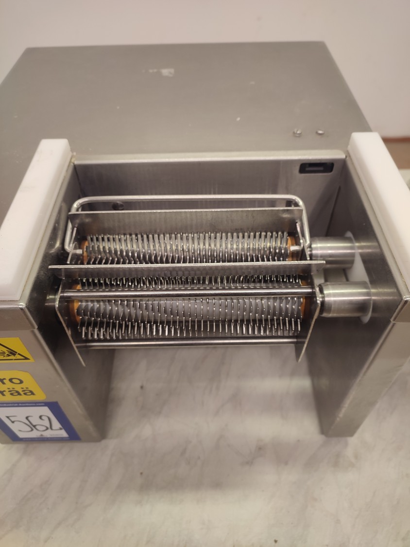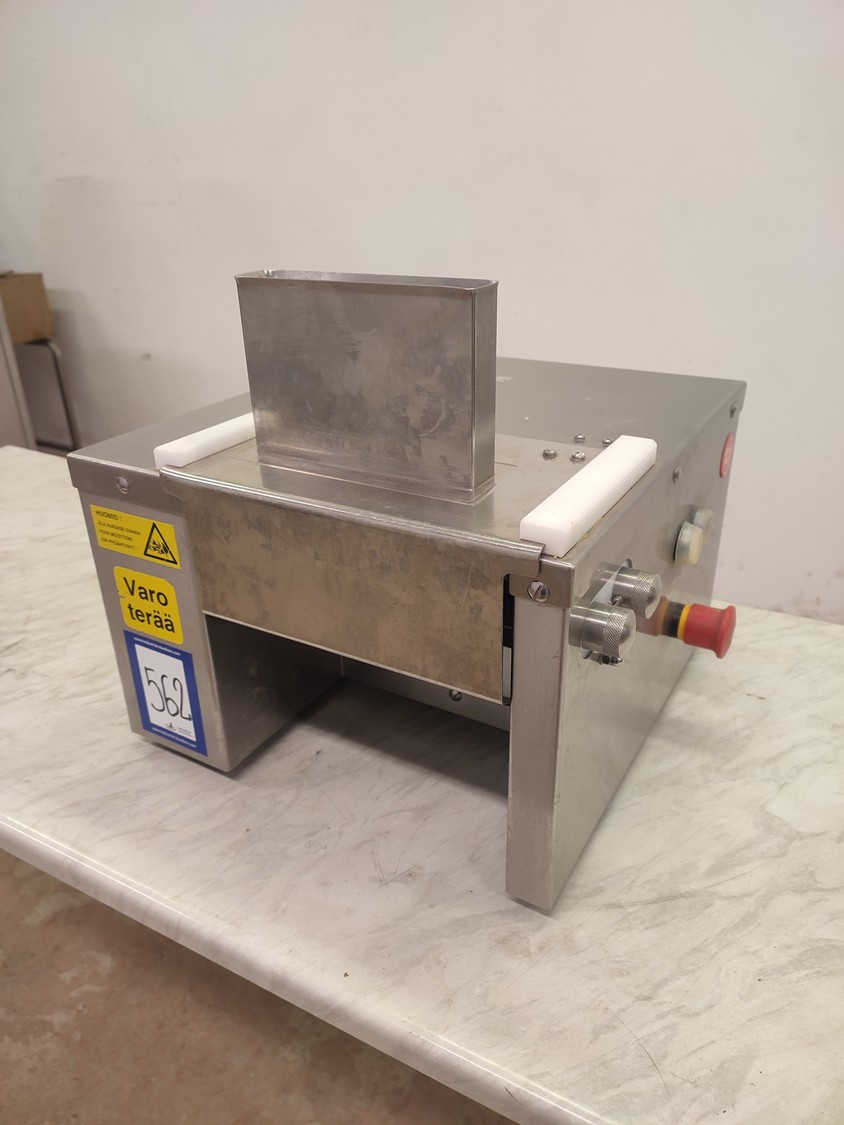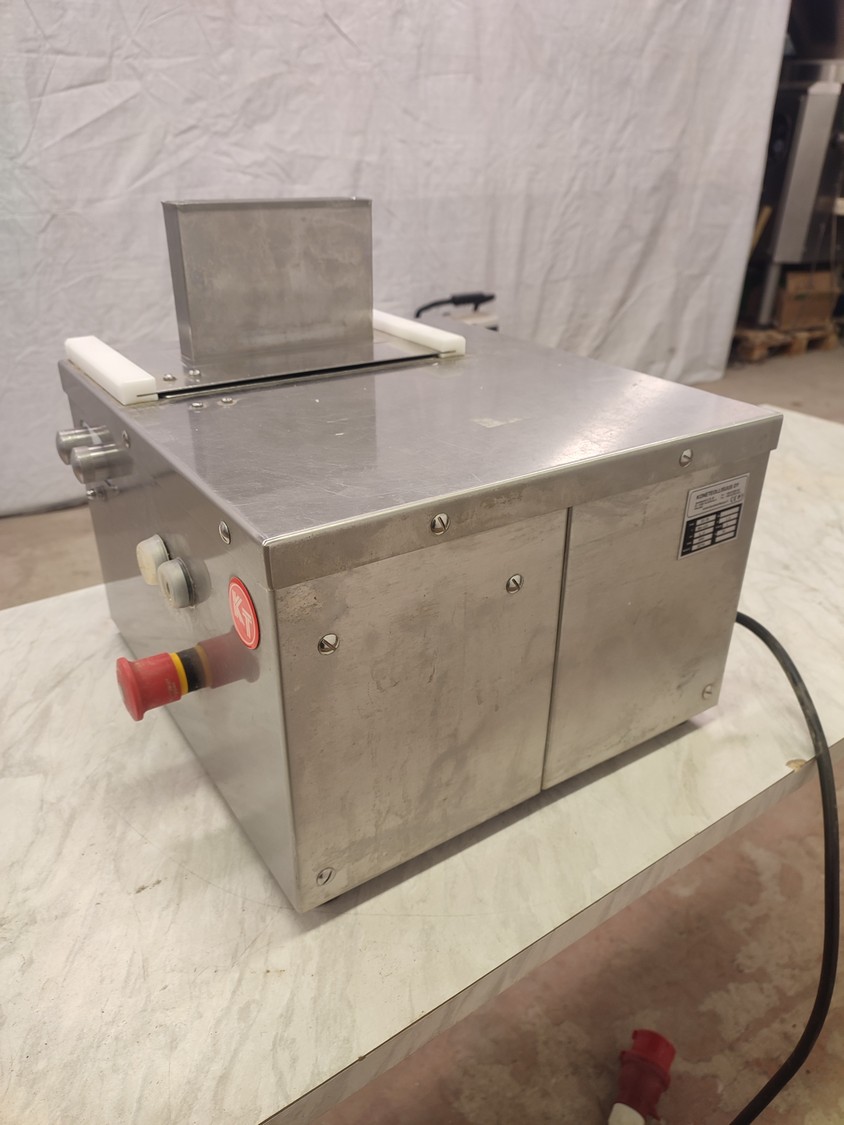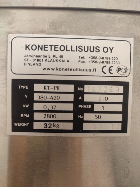 Koneteollisuus OY tenderizer, type: KT-PK, number: 147249, year of construction: 03 12, 380-420 V, 3 Ph, 50 Hz, 1.0 A, 0.37 kW, working width: 150 mm, weight: 32 kg, total dimensions: 470 mm x 430 mm x 400 mm.