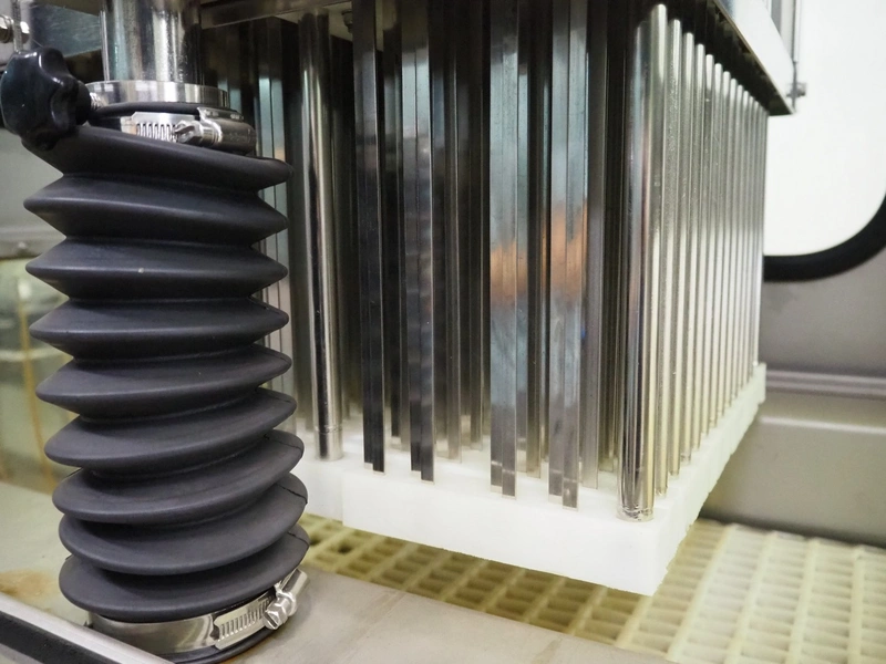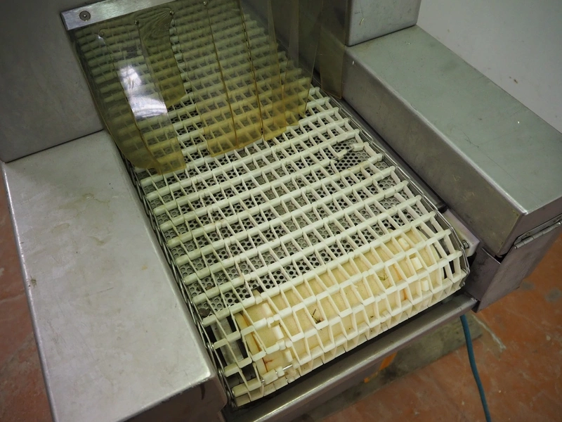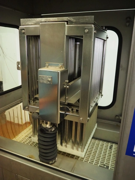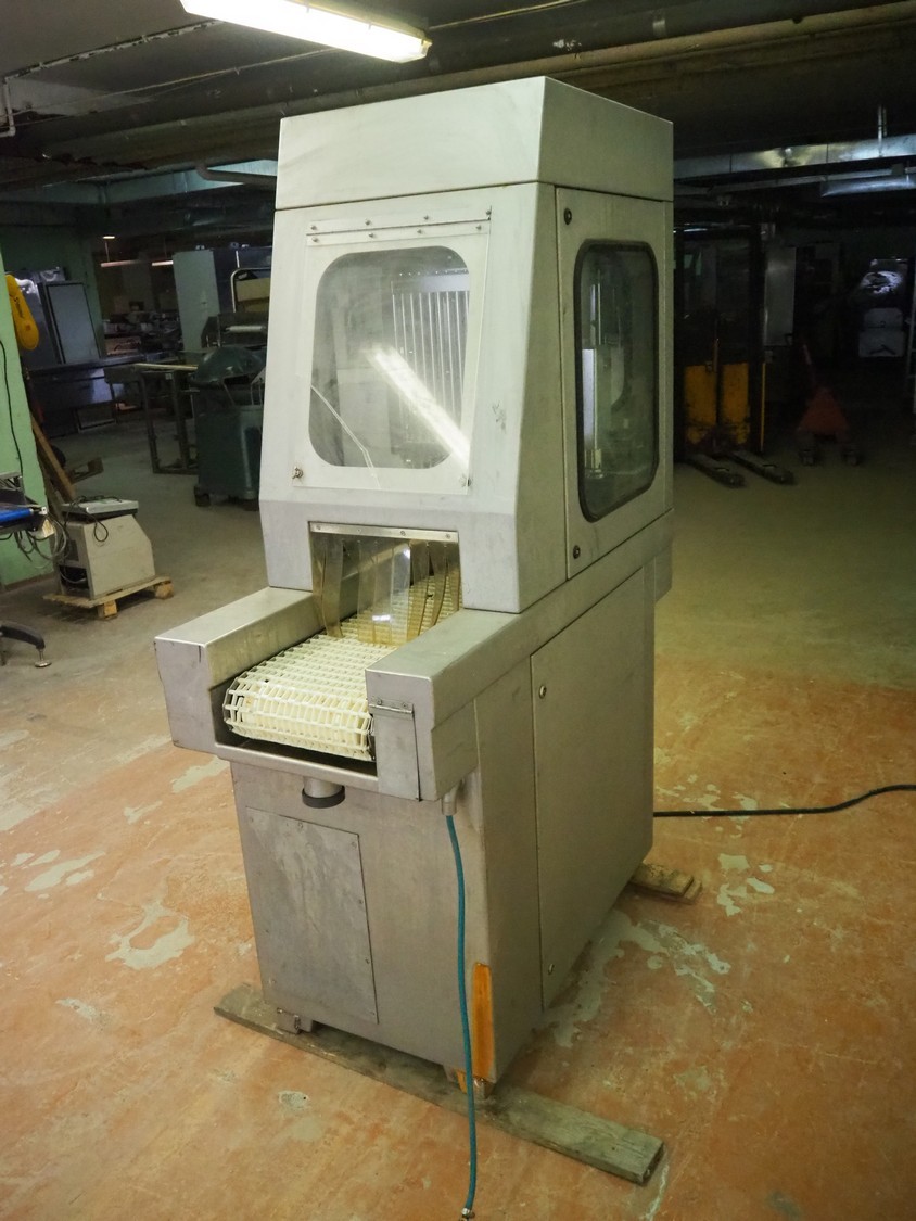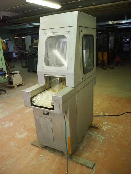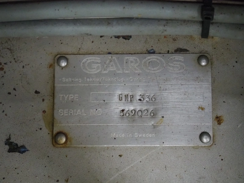 Garos tenderizer, type: GNP 336, serial number: 569026, plastic belt width: 320 mm, clearance: 340 mm x 200 mm, total dimensions: 1300 mm x 600 mm x 1940 mm.