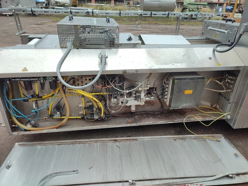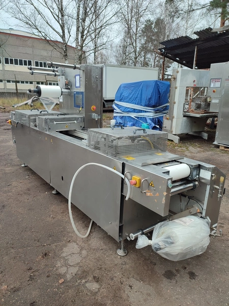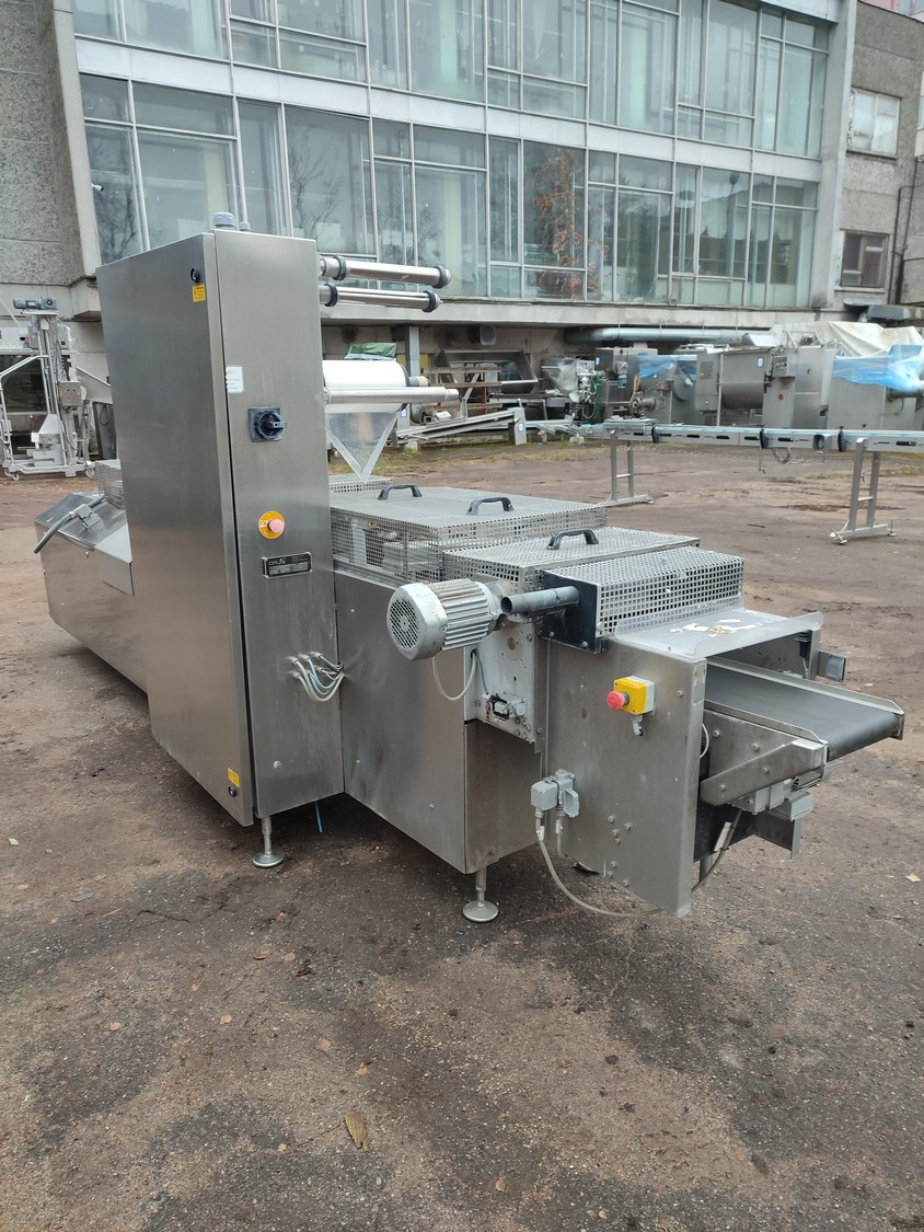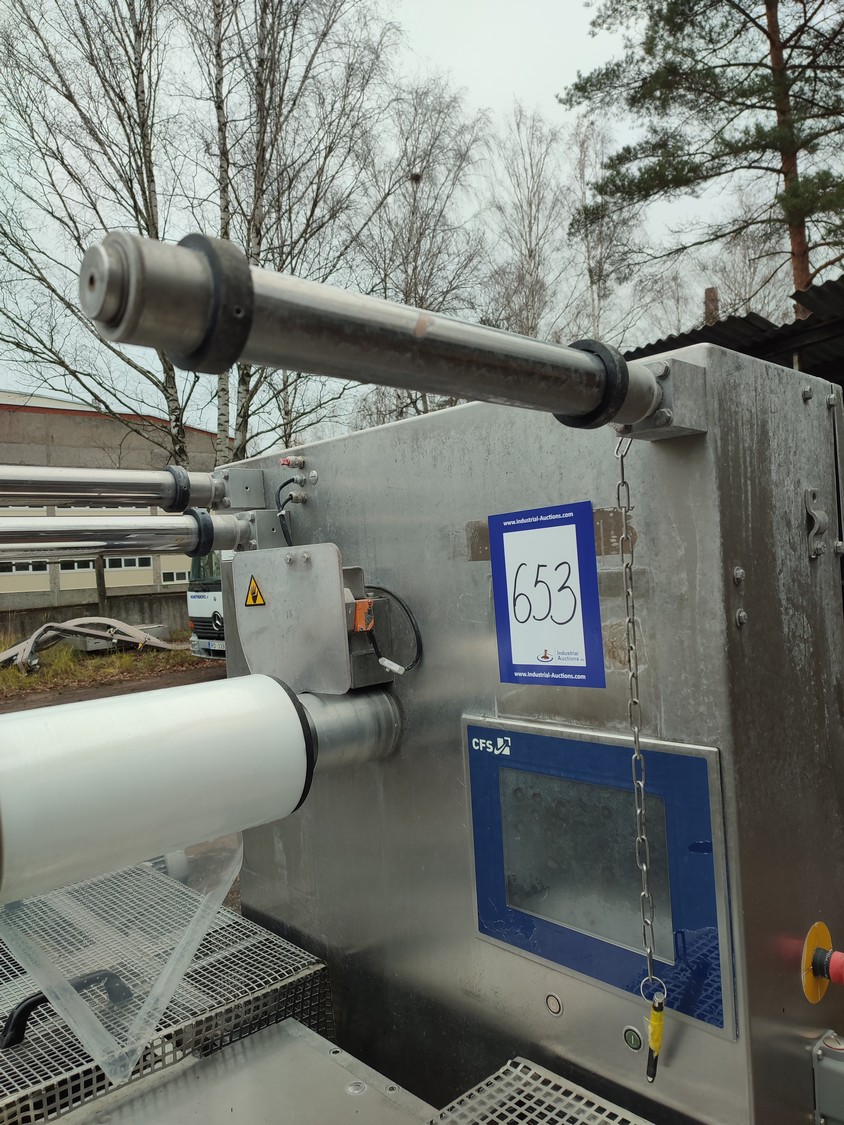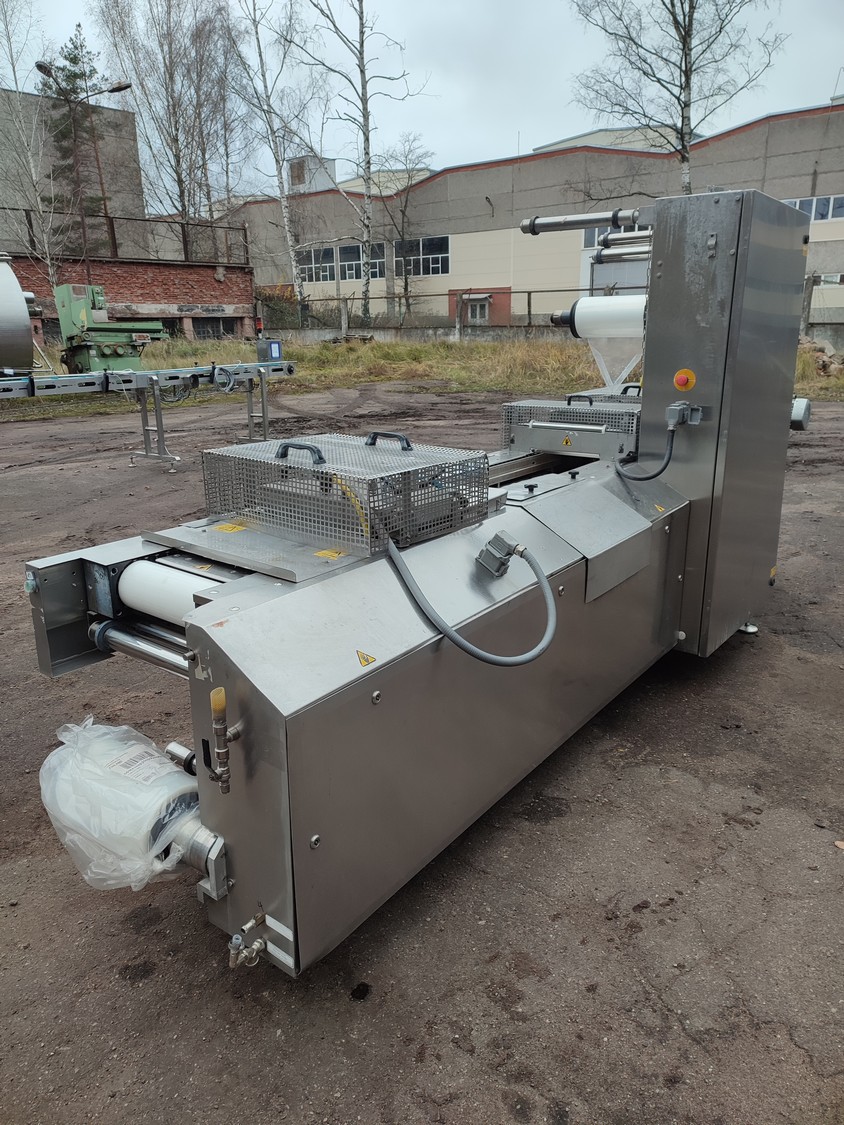 CFS Germany GmbH thermoformer, type: Juniorpak 320, machine number: 905/1004, year of construction: 2007, 400 V, 3 PH, 50 Hz, 26 A, 17 kW, bottom film width: 320 mm, top film width: 316 mm, dye: 275 mm x 285 mm x 100 mm, plastic outfeed belt, belt width: 255 mm, total dimensions: 4760 mm x 1100 mm x 1920 mm.