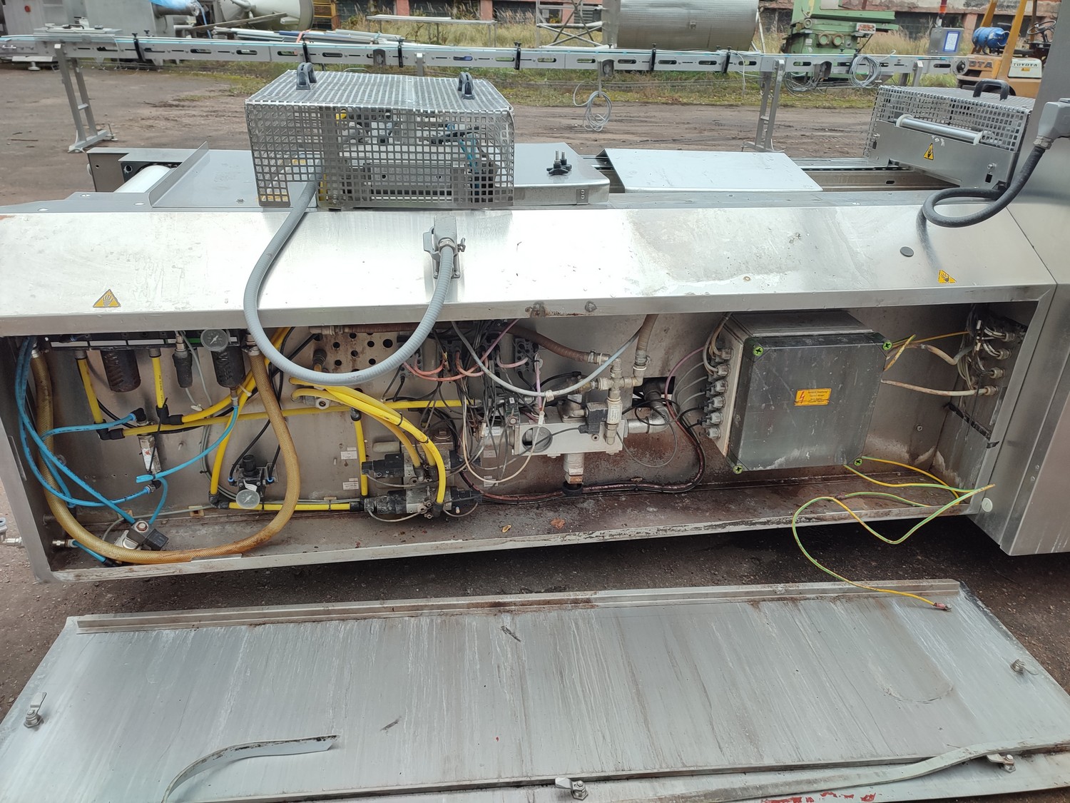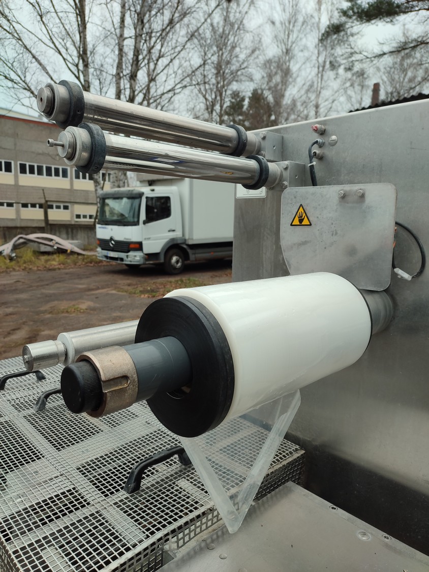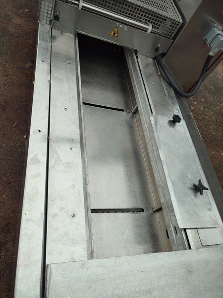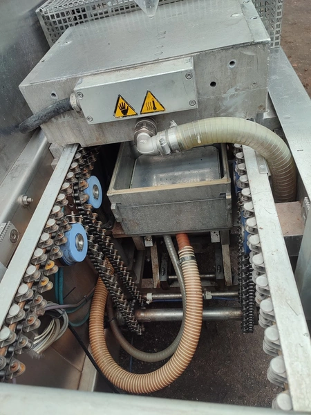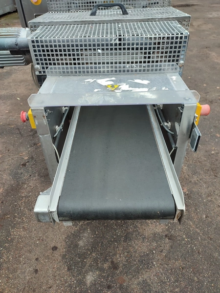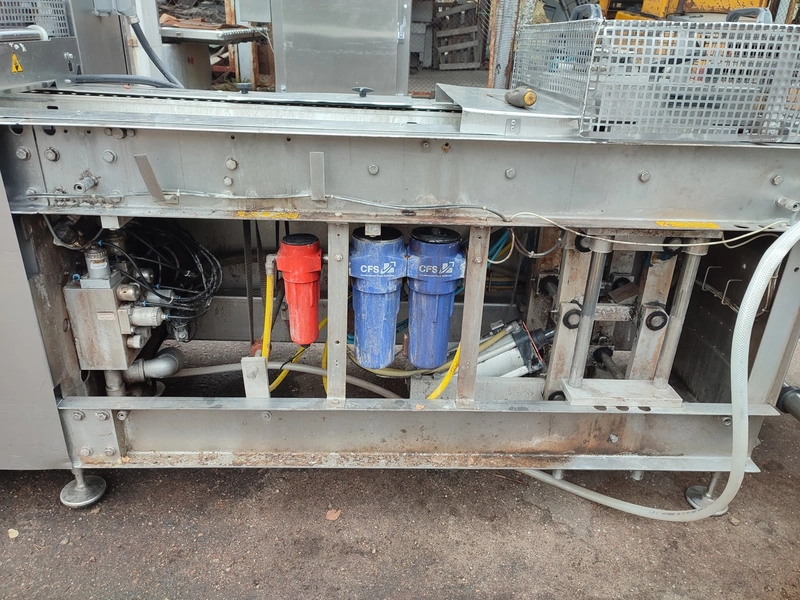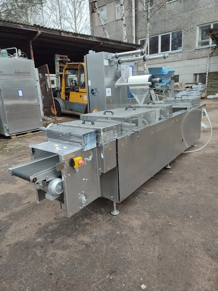 CFS Germany GmbH thermoformer, type: Juniorpak 320, machine number: 905/1004, year of construction: 2007, 400 V, 3 PH, 50 Hz, 26 A, 17 kW, bottom film width: 320 mm, top film width: 316 mm, dye: 275 mm x 285 mm x 100 mm, plastic outfeed belt, belt width: 255 mm, total dimensions: 4760 mm x 1100 mm x 1920 mm.