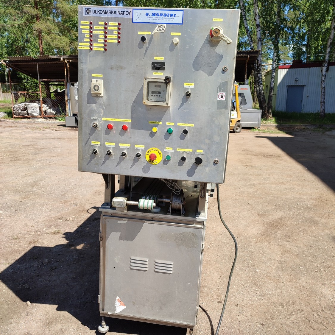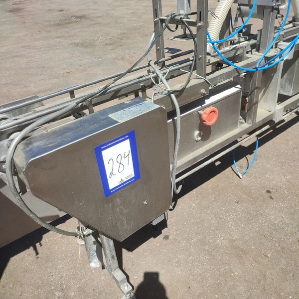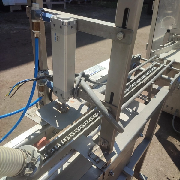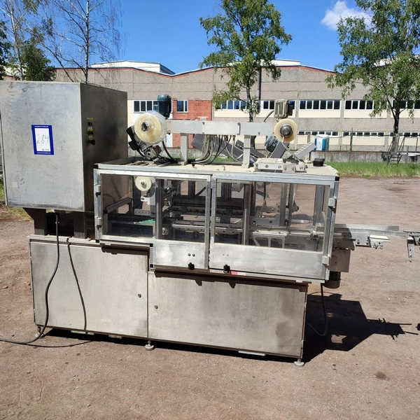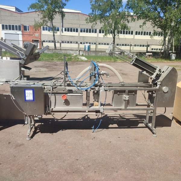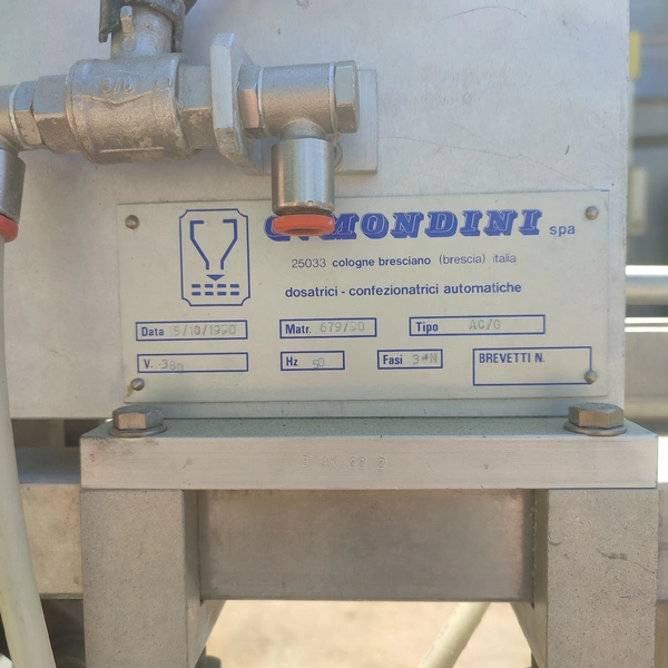 G. Mondini spa traysealer with denester and infeed belt, type infeed belt: C/T, serial number: 679/90, year of construction: 15/10/1990, 380 V, 3 Ph, 50 Hz, chain belt, dimensions: 2780 mm x 450 mm x 1600 mm, type traysealer: AC/G, serial number: 679/90, serial numbers: 15/10/1990, 380 V, 3 Ph, 50 Hz, film width: 170 mm, dye: (3x) 150 mm x 120 mm, total dimensions: 2250 mm x 750 mm x 1900 mm. Including 2 pallets with film.
