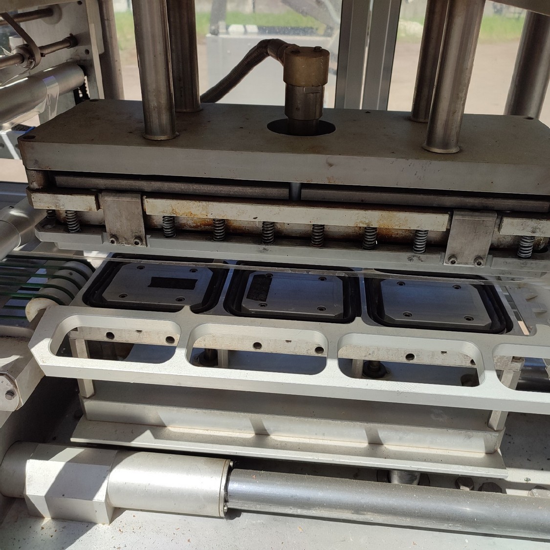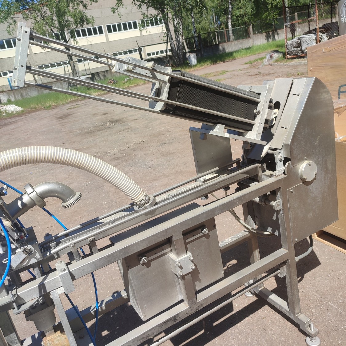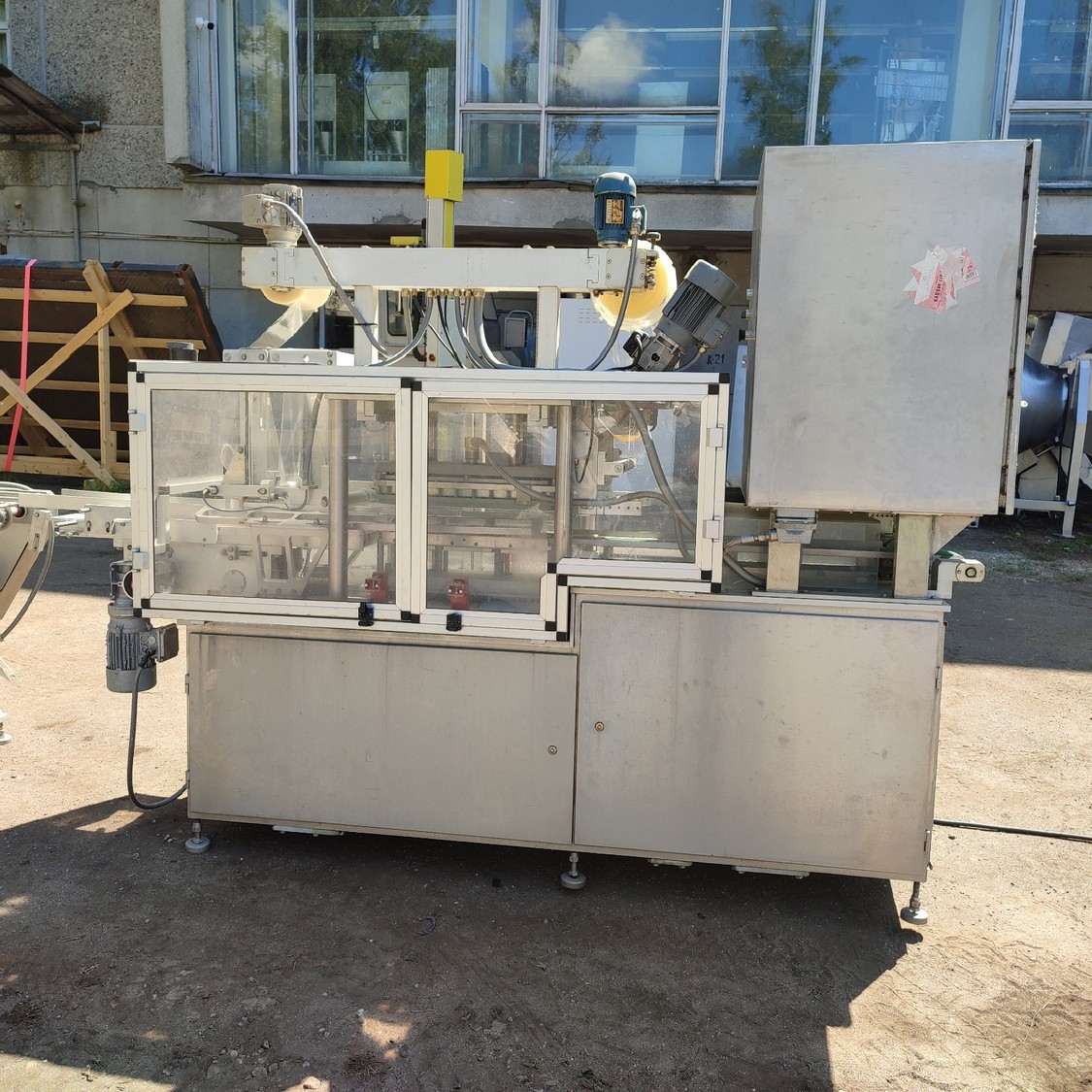 G. Mondini spa traysealer with denester and infeed belt, type infeed belt: C/T, serial number: 679/90, year of construction: 15/10/1990, 380 V, 3 Ph, 50 Hz, chain belt, dimensions: 2780 mm x 450 mm x 1600 mm, type traysealer: AC/G, serial number: 679/90, serial numbers: 15/10/1990, 380 V, 3 Ph, 50 Hz, film width: 170 mm, dye: (3x) 150 mm x 120 mm, total dimensions: 2250 mm x 750 mm x 1900 mm. Including 2 pallets with film.