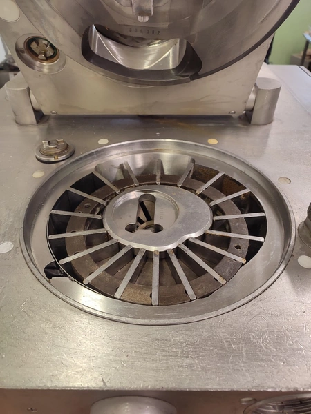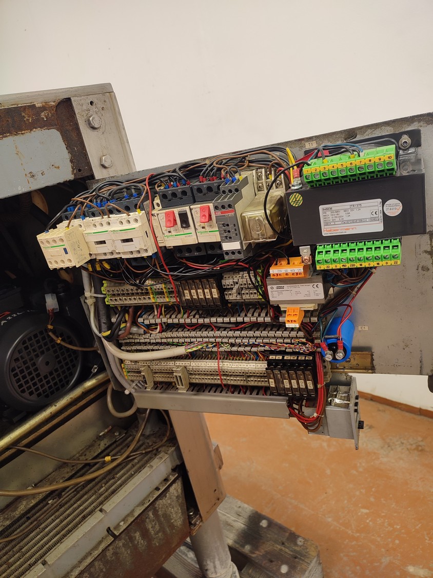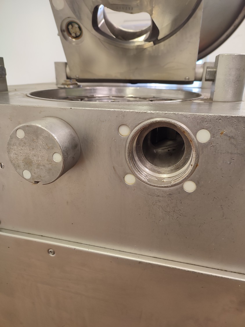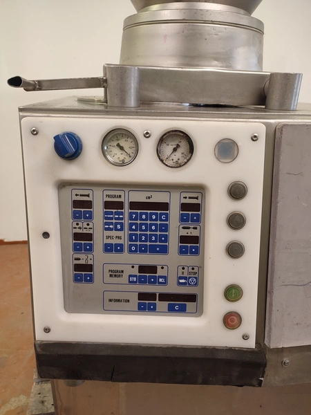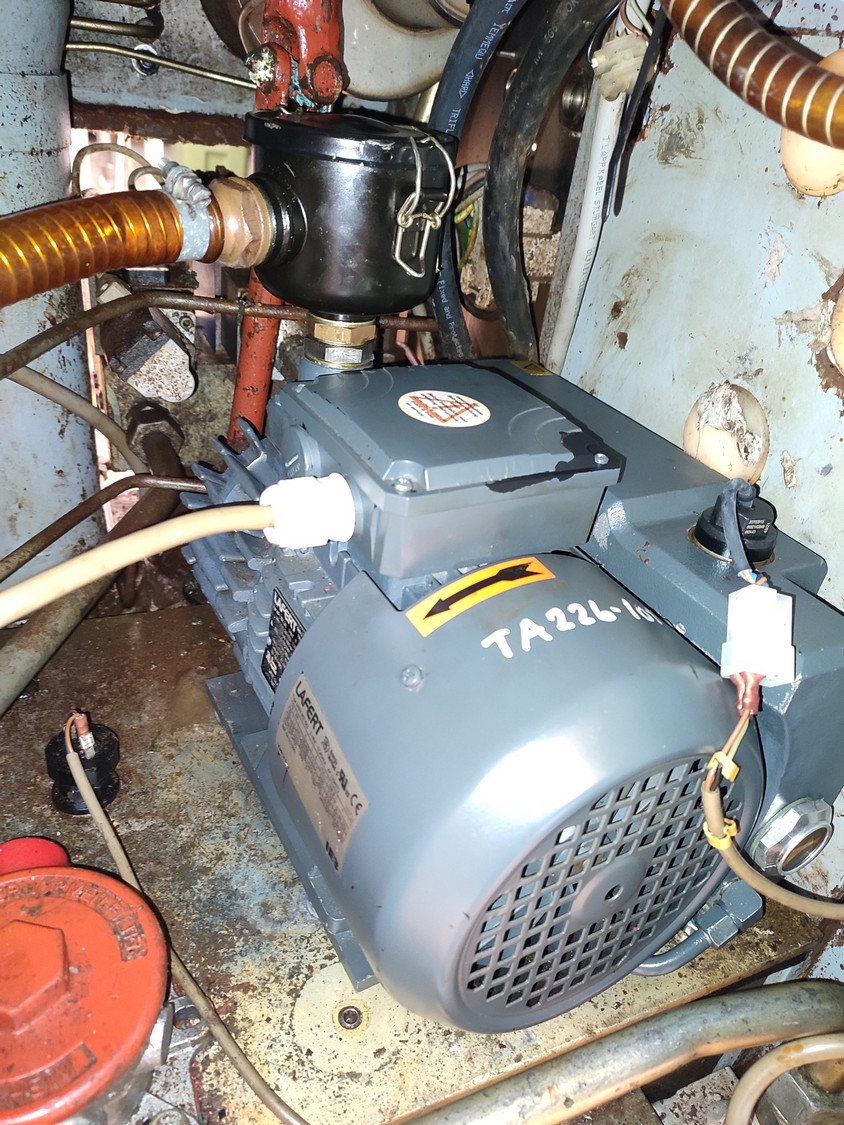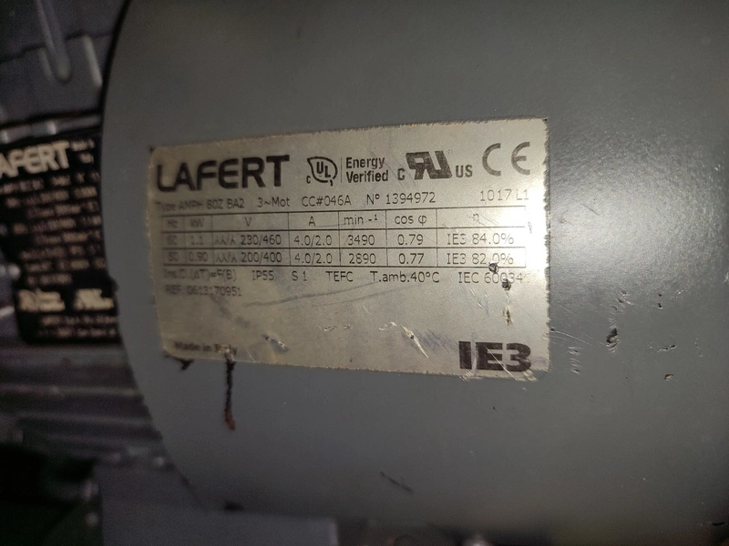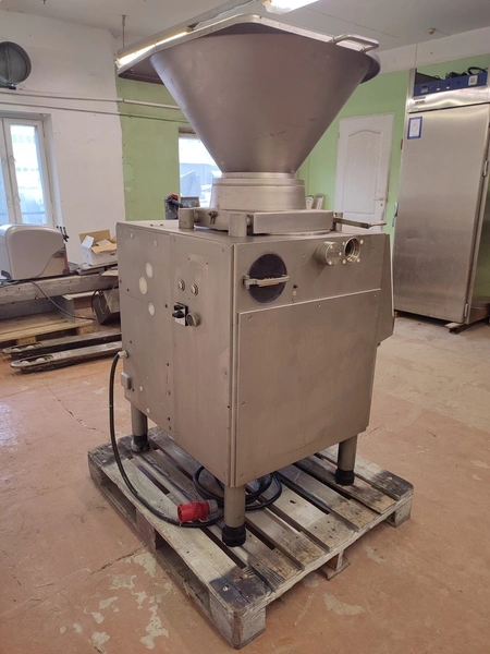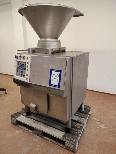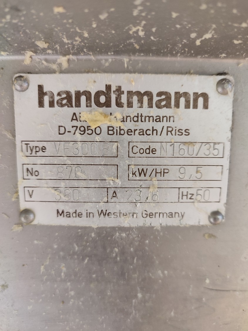 Handtmann vacuum filling machine, type: VF300 B, number: 870, 380 V, 3 Ph, 50 Hz, 23.6 A, 9.5 kW, Lafert vacuum pump, total dimensions: 970 mm x 900 mm x 1650 mm.