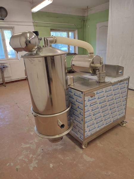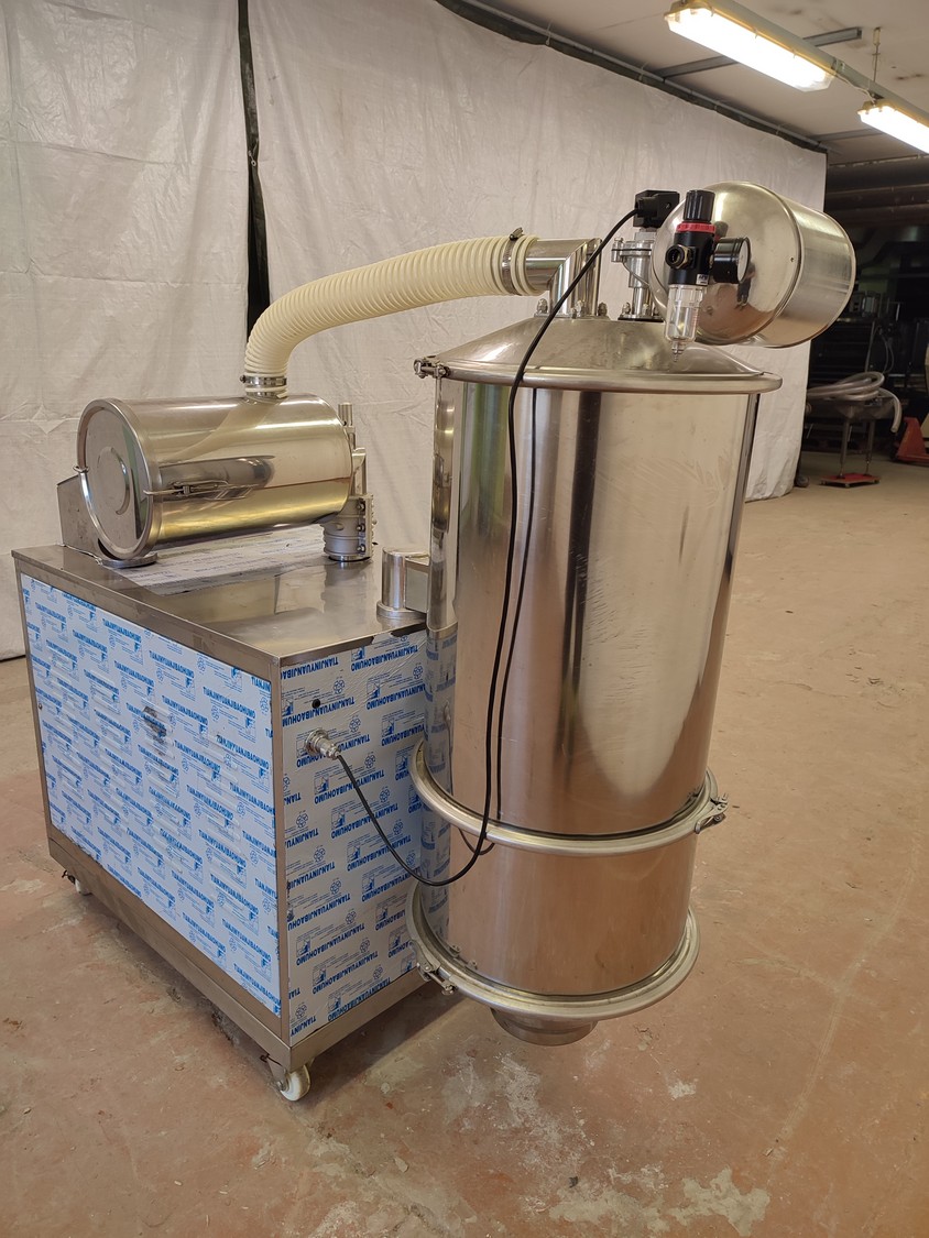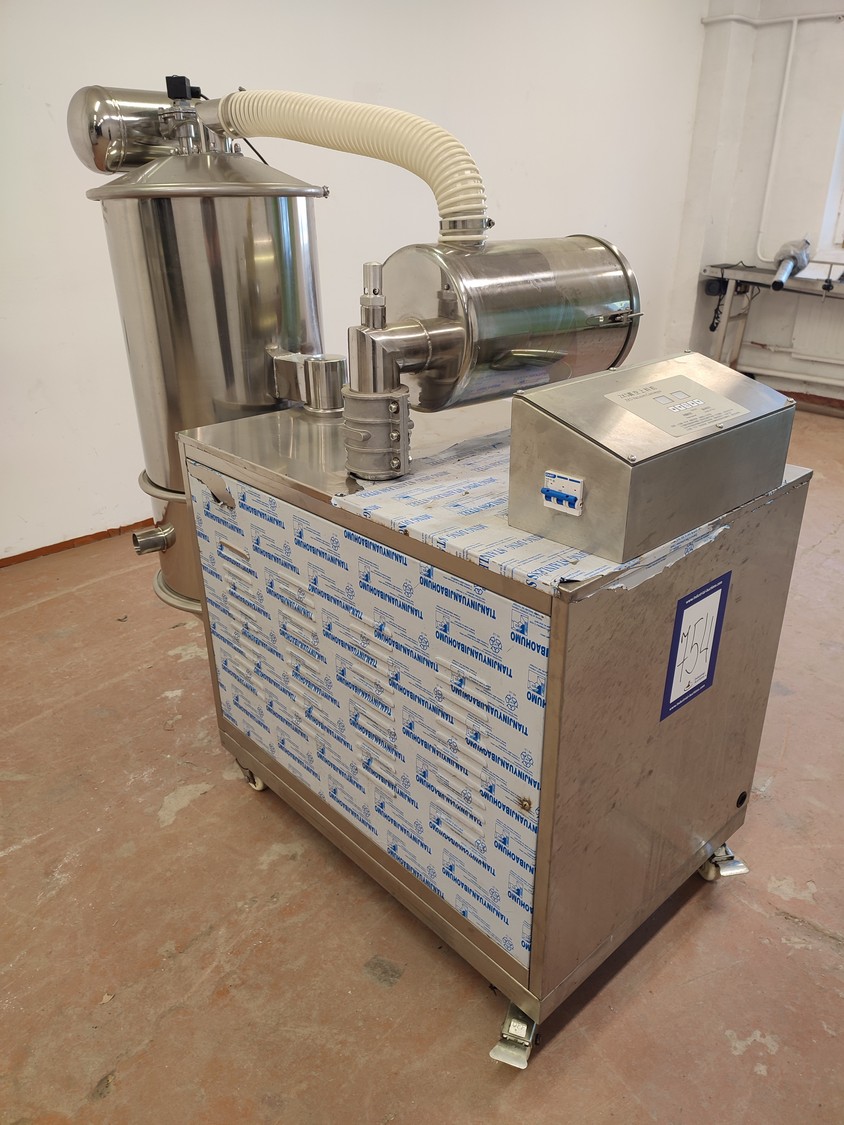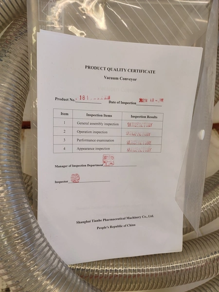 Shanghai Tianhe Pharmaceutical Machinery Co,. Ltd vacuum conveyor, dimensions: 600 mm x 1470 mm x 1430 mm.