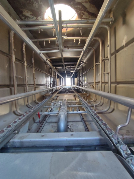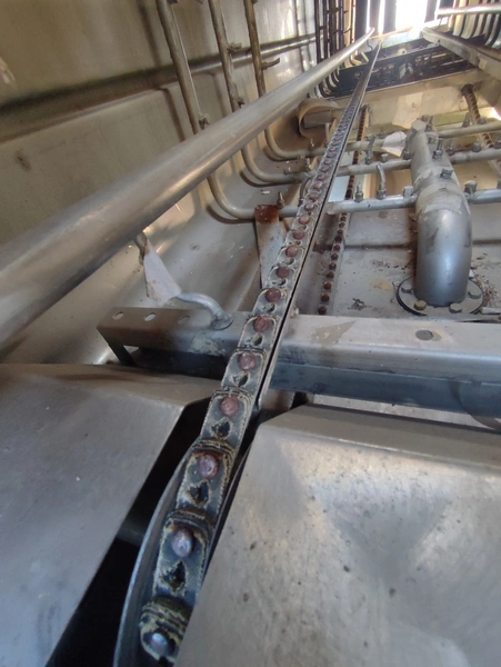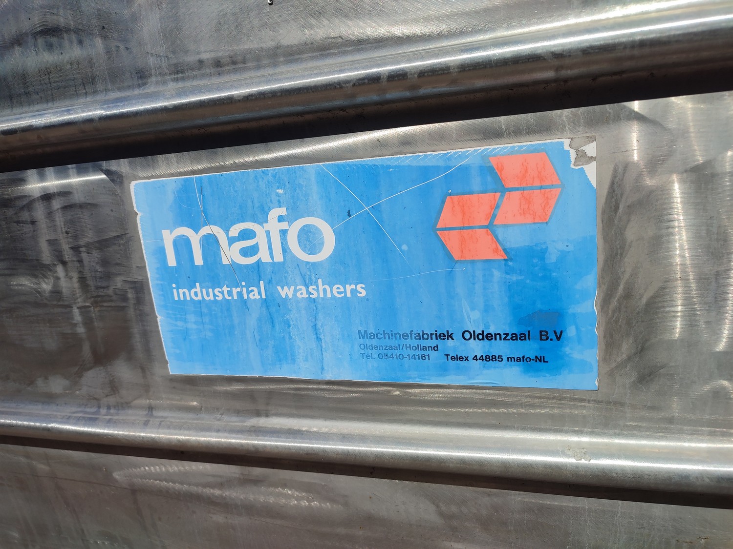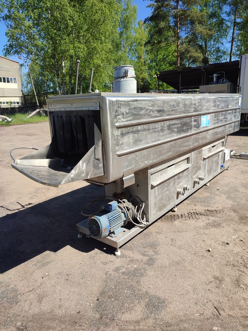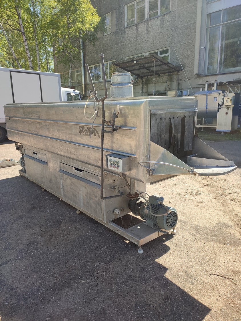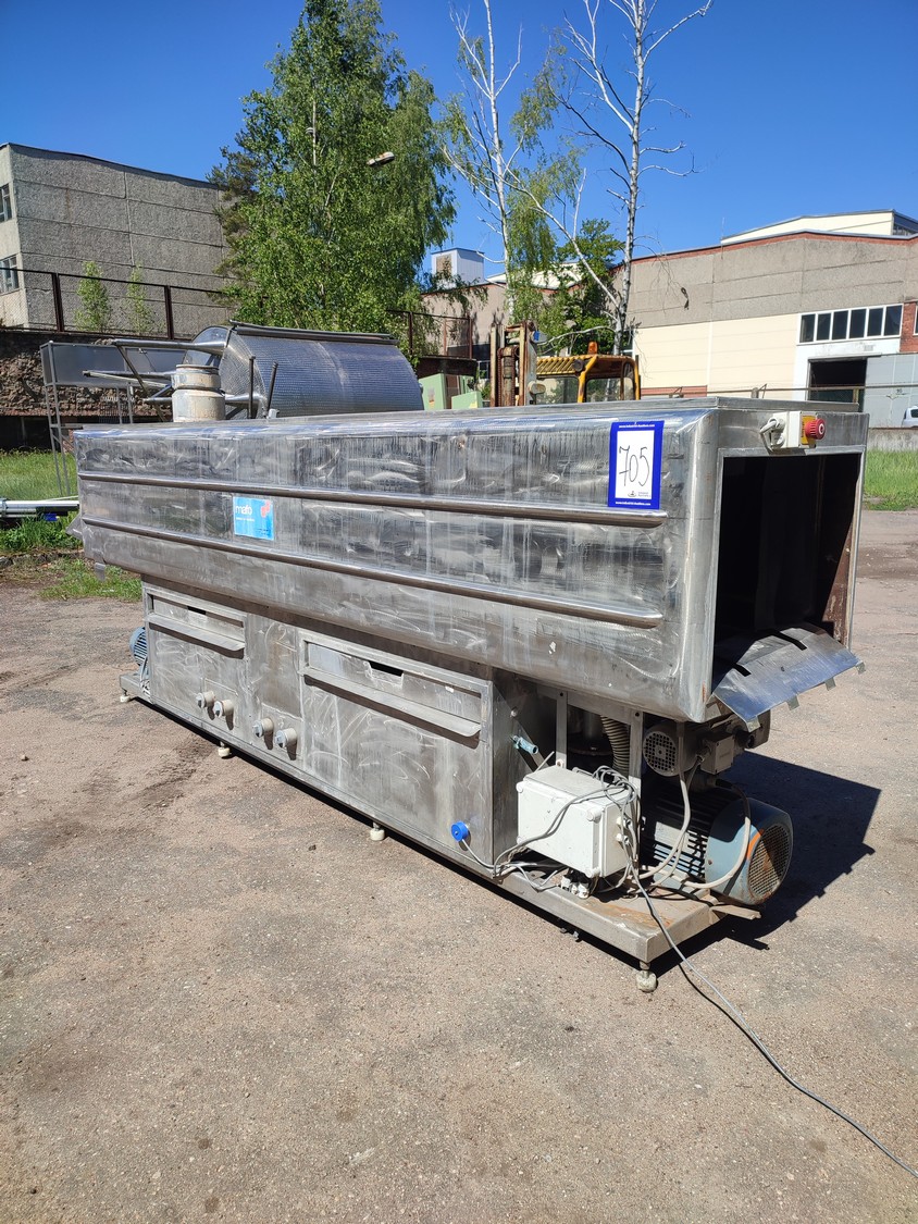 Mafo Machinefabriek Oldenzaal B.V crate washer, clearance: 400 mm x 390 mm, total dimensions: 4500 mm x 930 mm x 1830 mm.