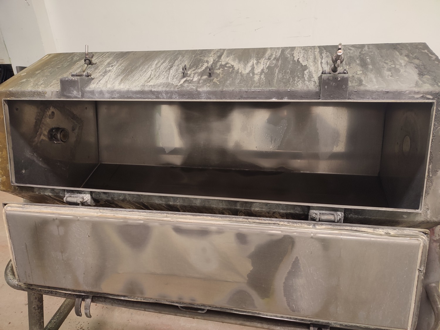 Smoke stick washer, inside dimensions: 1200 mm x 520 mm, total dimensions: 2500 mm x 950 mm x 1240 mm.