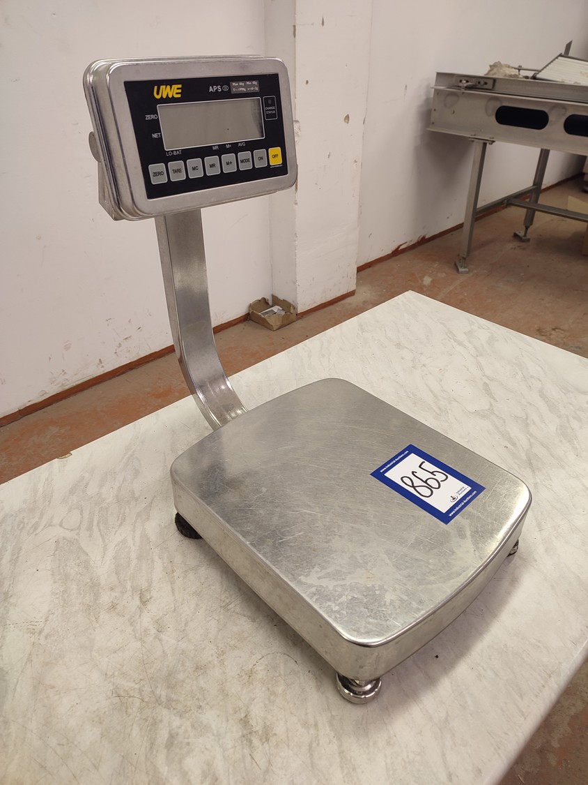 UWE weighing scale, max. weight: 6 kg, min. weight: 40 g, e=d= 2 g, T=-1998 g, scale dimensions: 280 mm x 330 mm, total dimensions: 290 mm x 470 mm x 480 mm.