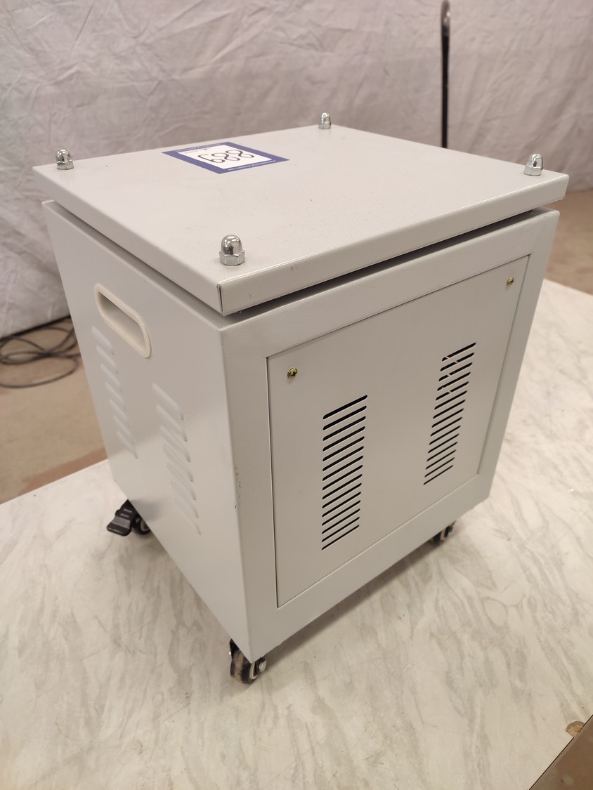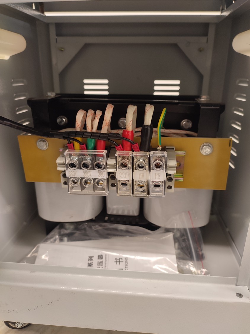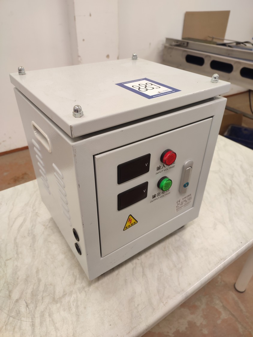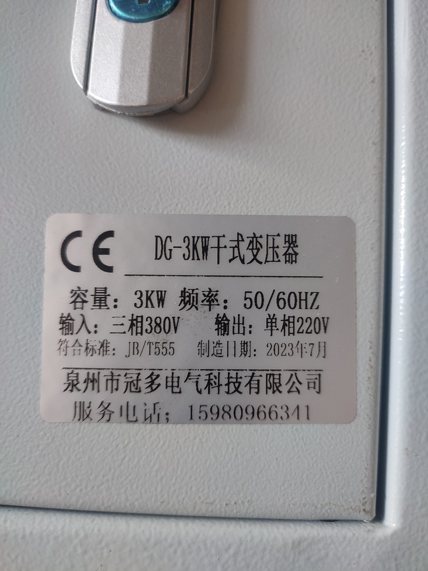 Quanzhou Guanduo Electric Technology Co., Ltd current transformer, model: DG-3KW, year of construction: 07.2023, 50/60 Hz, 3 kW, input voltage: 380 V, output voltage: 220 V, dimensions: 330 mm x 320 mm x 440 mm.