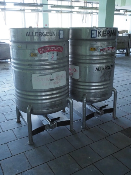 2 s/s tanks, volume: 500 liter, dimensions: (2x) Ø 800 mm x 1480 mm.
