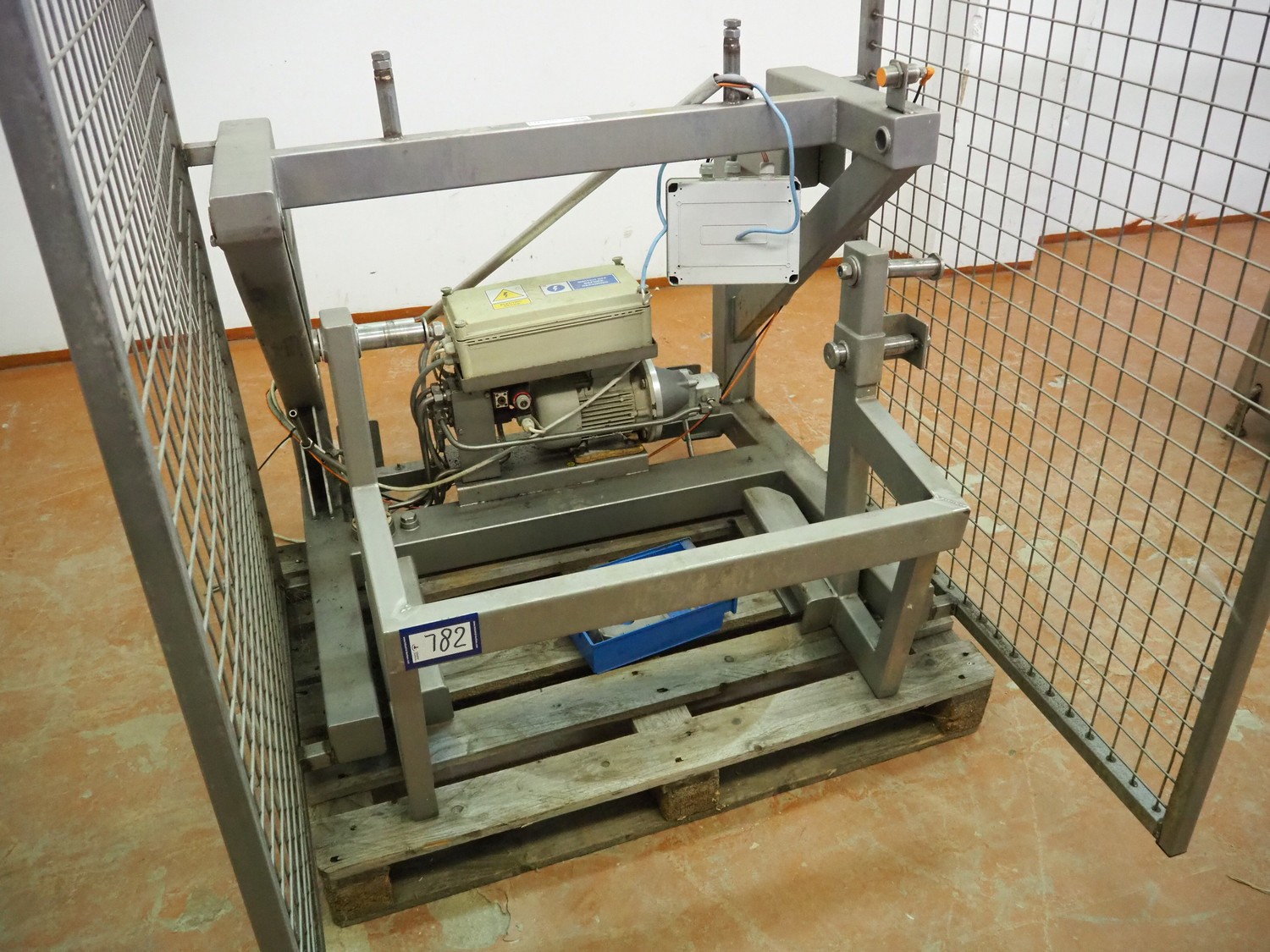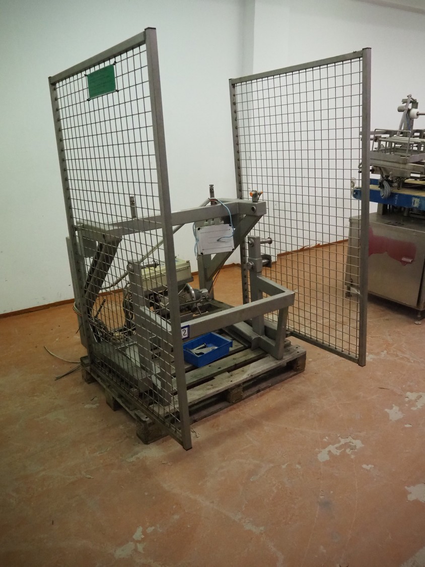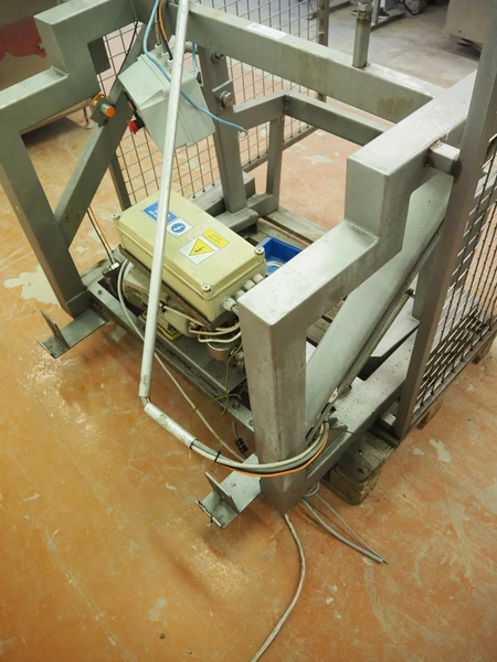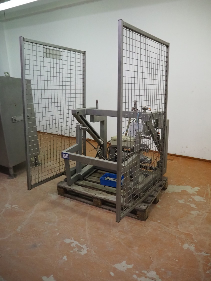 Tilting device for 200 liter meat bins, dimensions: 1200 mm x 1400 mm x 1650 mm. Technical condition unknown.