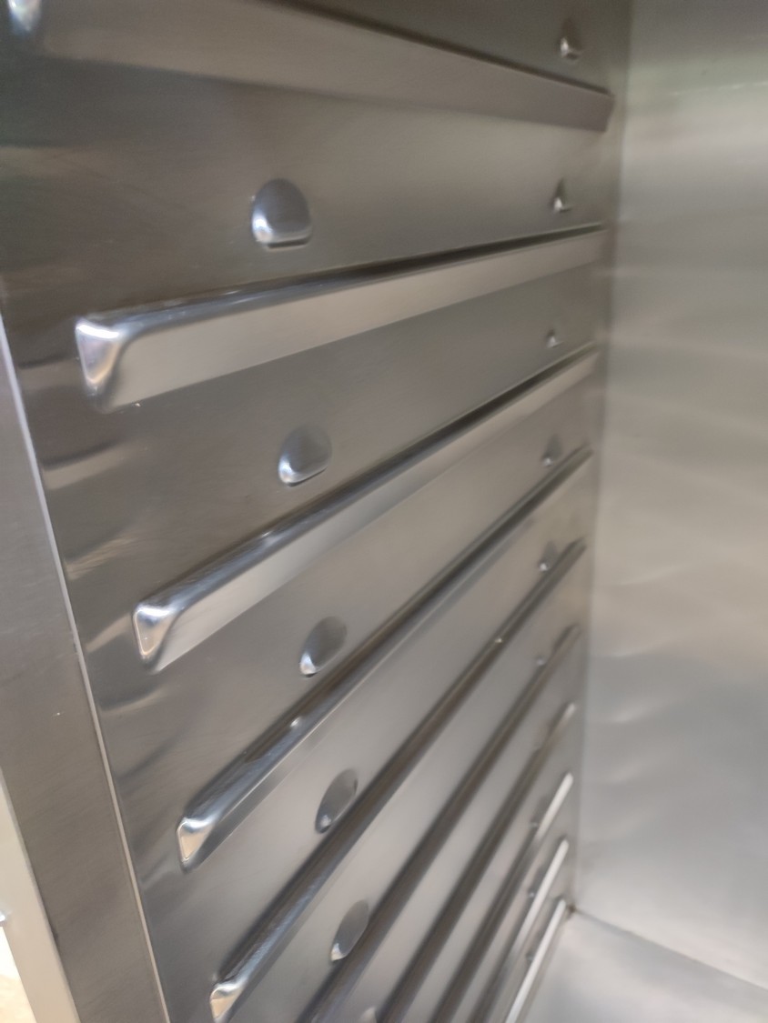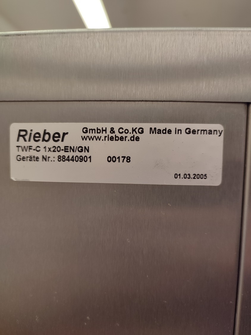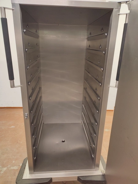 Rieber thermo trolley, type: TWF-C 1x20-EN/GN, number: 88440901 00178, year of construction: 01.03.2005, 10 floors, floor dimensions: (10x) 700 mm x 530 mm, total dimensions: 810 mm x 940 mm x 1590 mm.