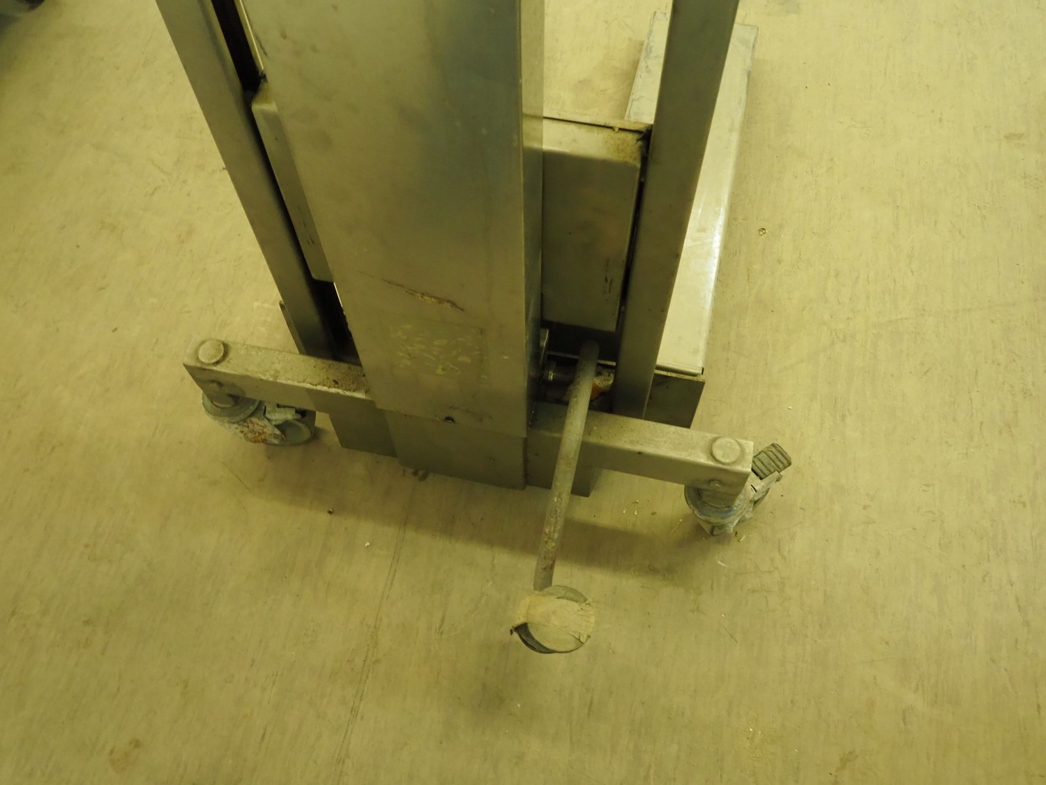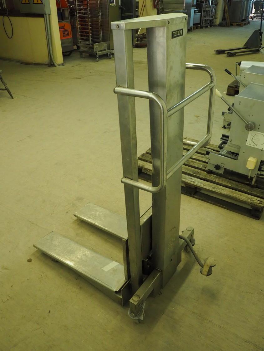 Metos lifter, dimensions platform: 720 mm x 560 mm, total dimensions: 920 mm x 650 mm x 1480 mm.