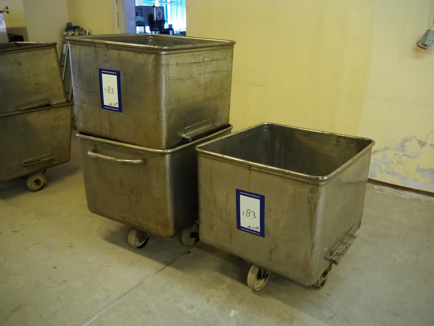 3 s/s meat bins, volume: (3x) 200 liter.