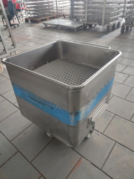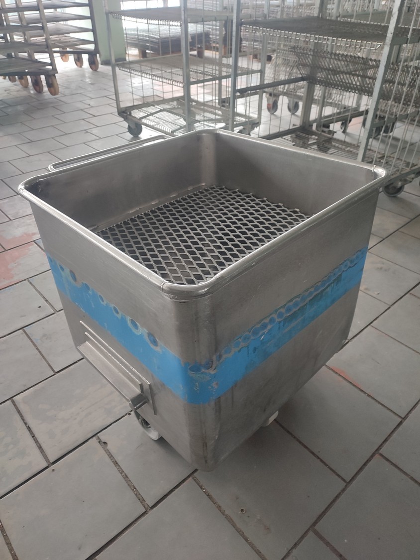 S/s meat bin, volume: 200 liter.