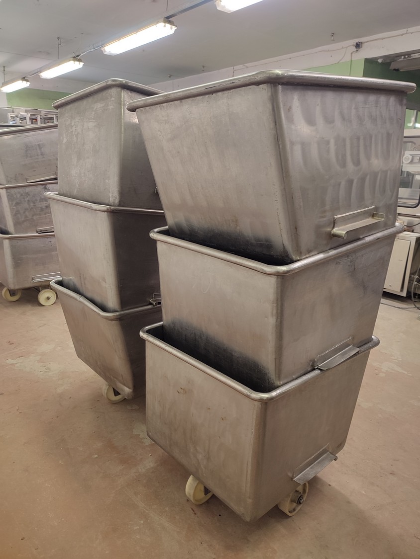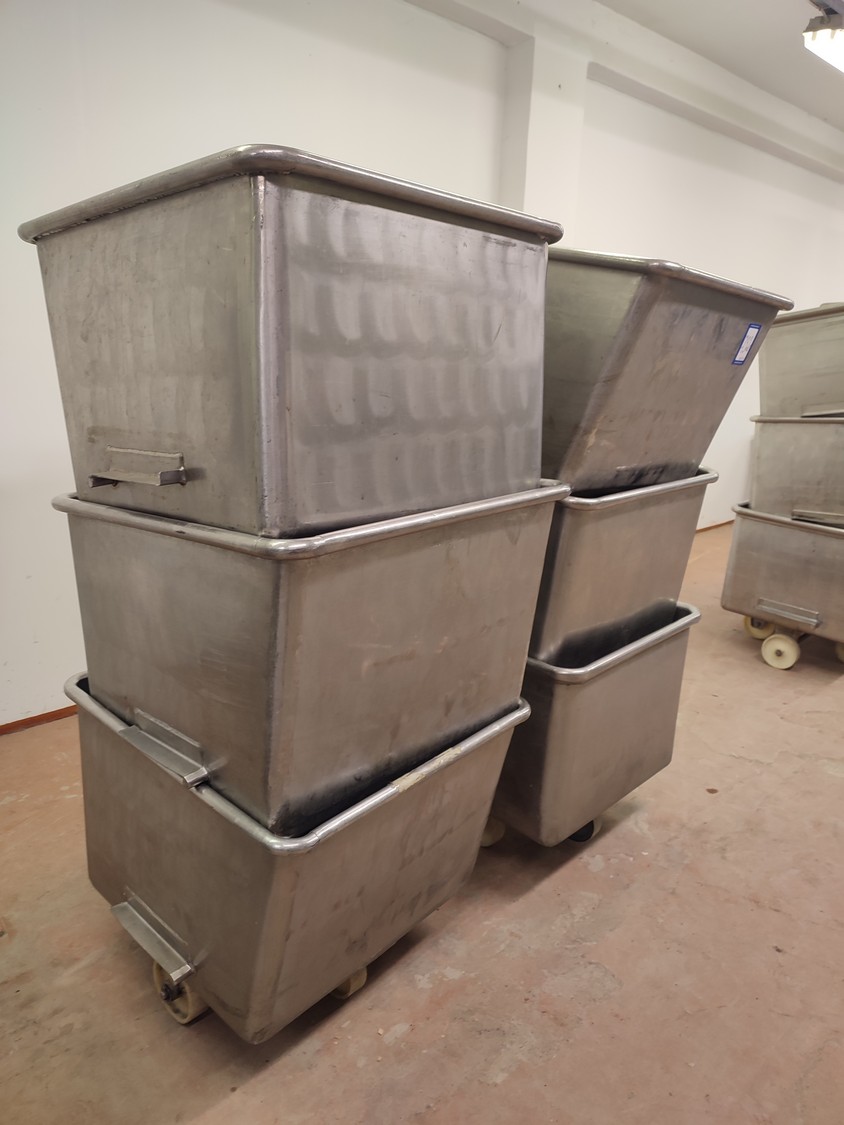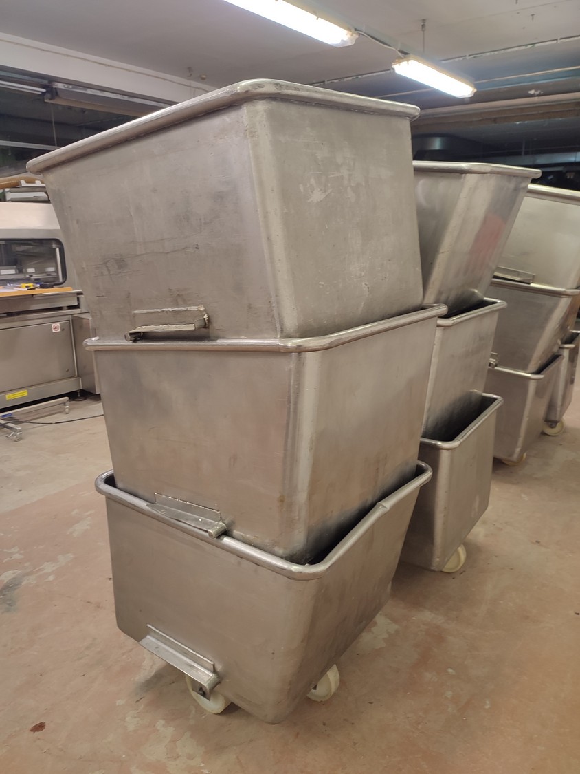 6 s/s meat bins, volume: (6x) 200 liter.