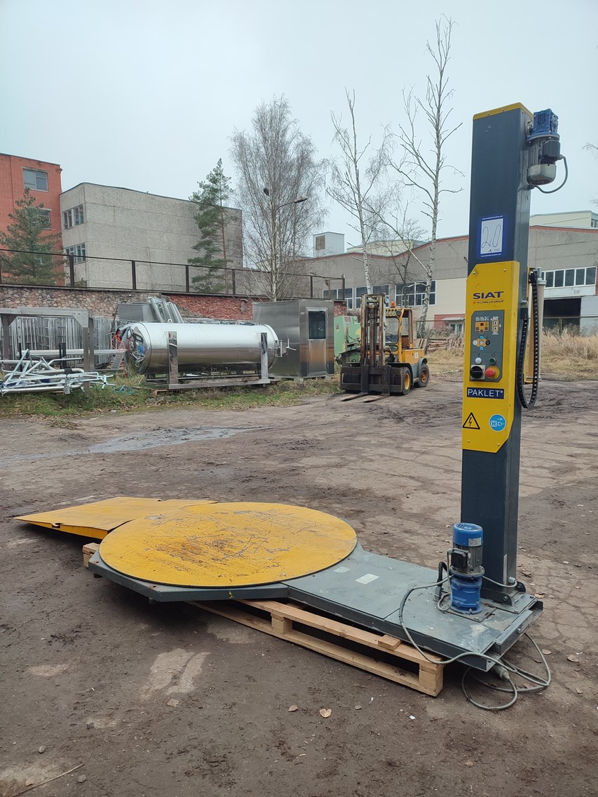 Siat pallet wrapper, model: SW1, type: 16-M-2BF, serial number: 52322, year of construction: 2004, 400 V, 3 Ph, 50 Hz, 2 A, 600 W, dimensions: 4020 mm x 1650 mm x 2410 mm.