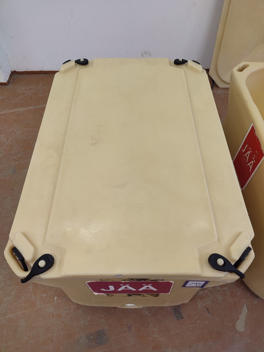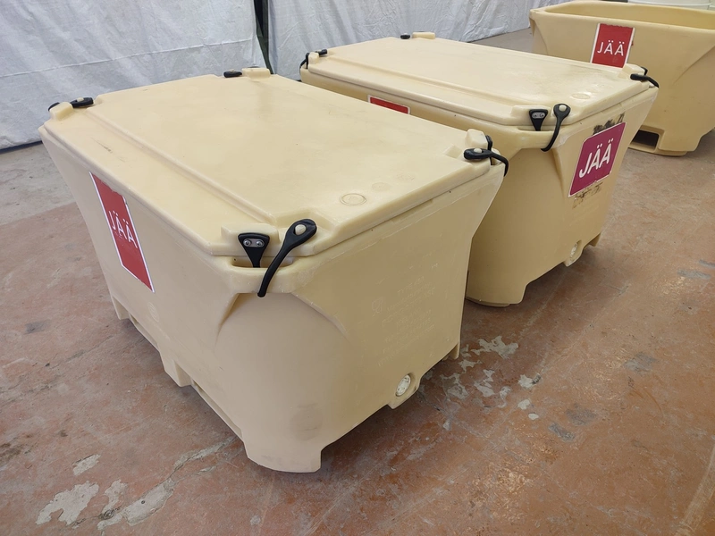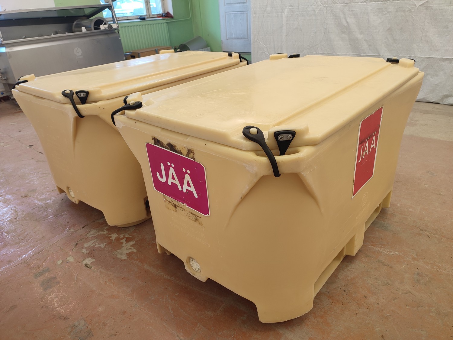 2 Borgarplast plastic tubs with lid, type: 450, dimensions: (2x) 810 mm x 1170 mm x 700 mm.