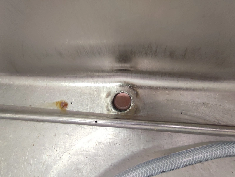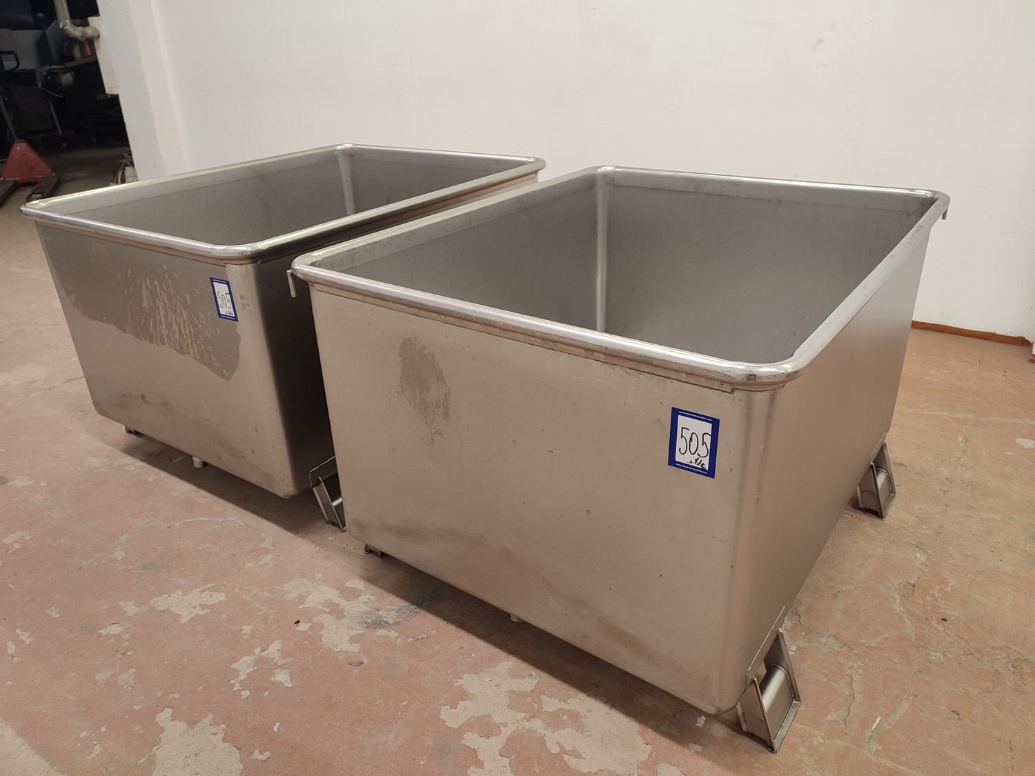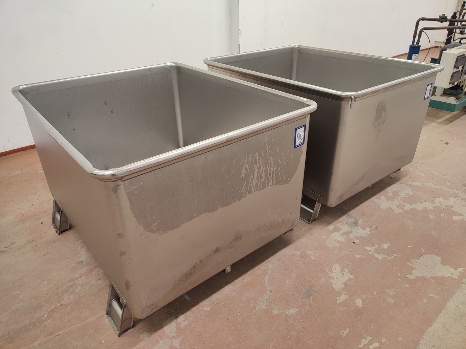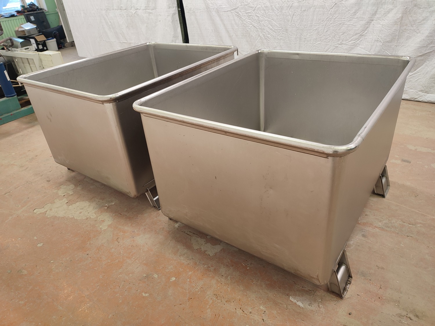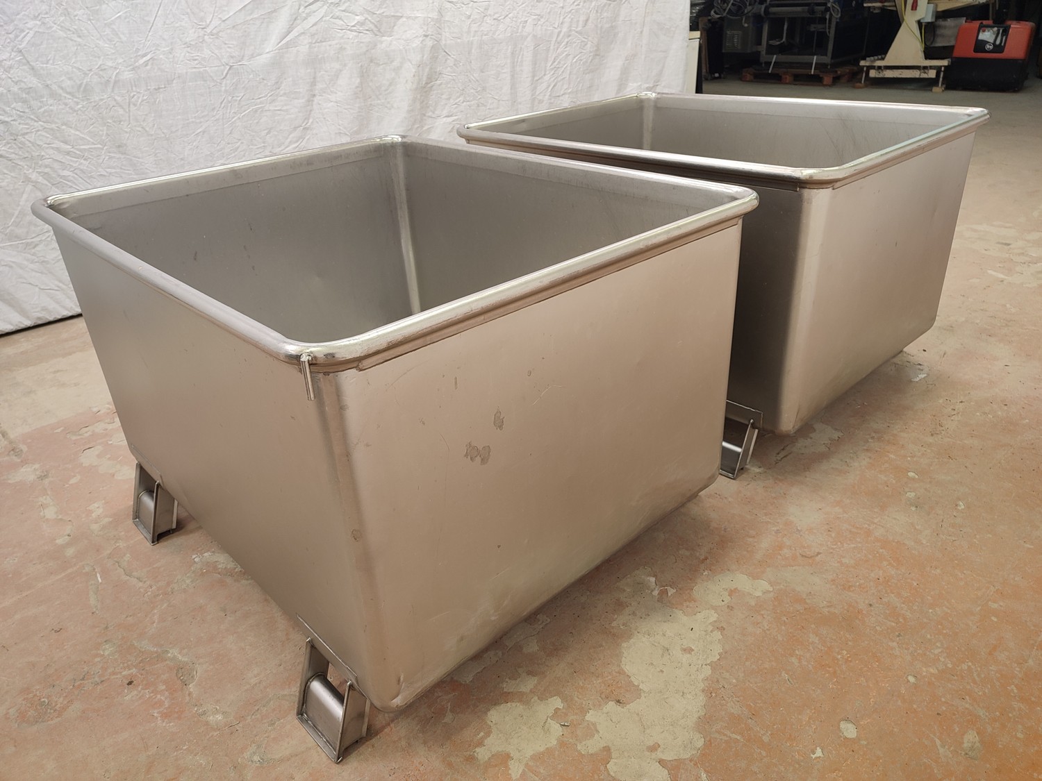 2 s/s tubs with drain, dimensions: (2x) 1090 mm x 1280 mm x 830 mm.