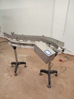 45° Curve conveyor, s/s frame, plastic belt, belt width 255 mm, total dimensions 1900 mm x 550 mm x 950 mm.€ 150,000 bidsLast day: 24 March 2026 16:00 -
