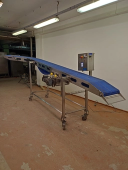 45° curve mobile elevating belt, s/s frame, plastic mesh belt, belt width: 380 mm, elevating height: 1640 mm, total dimensions: 480…€ 300,000 bidsLast day: 24 March 2026 16:00