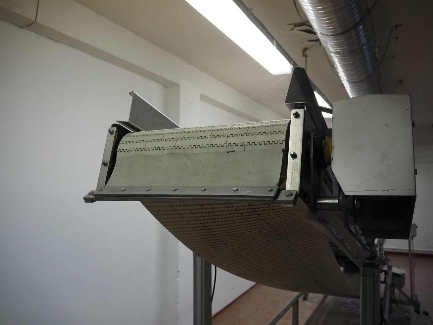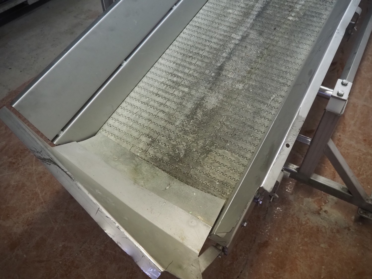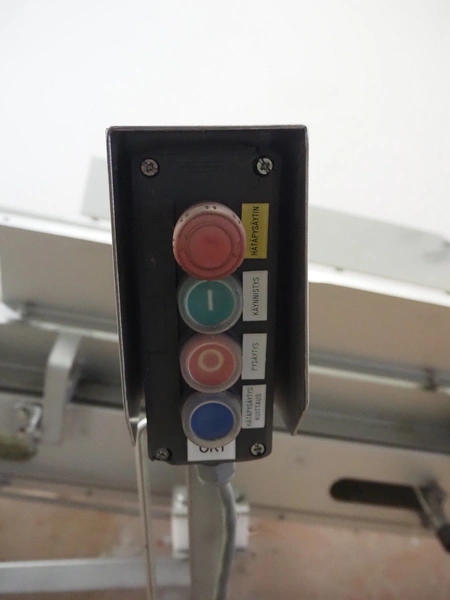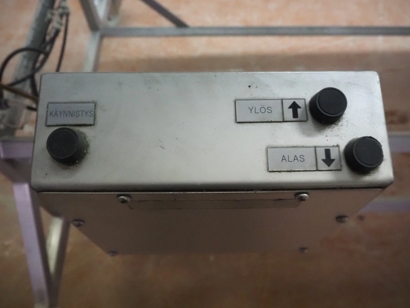 Antti Lindfors OY mobile elevating belt, type: Lamellik, number: 53408, year of construction: 2010, 0.55 kW, 200 kg, s/s frame, plastic belt, belt width: 510 mm, elevating height: 1950 mm, total dimensions: 5300 mm x 1600 mm x 2000 mm.