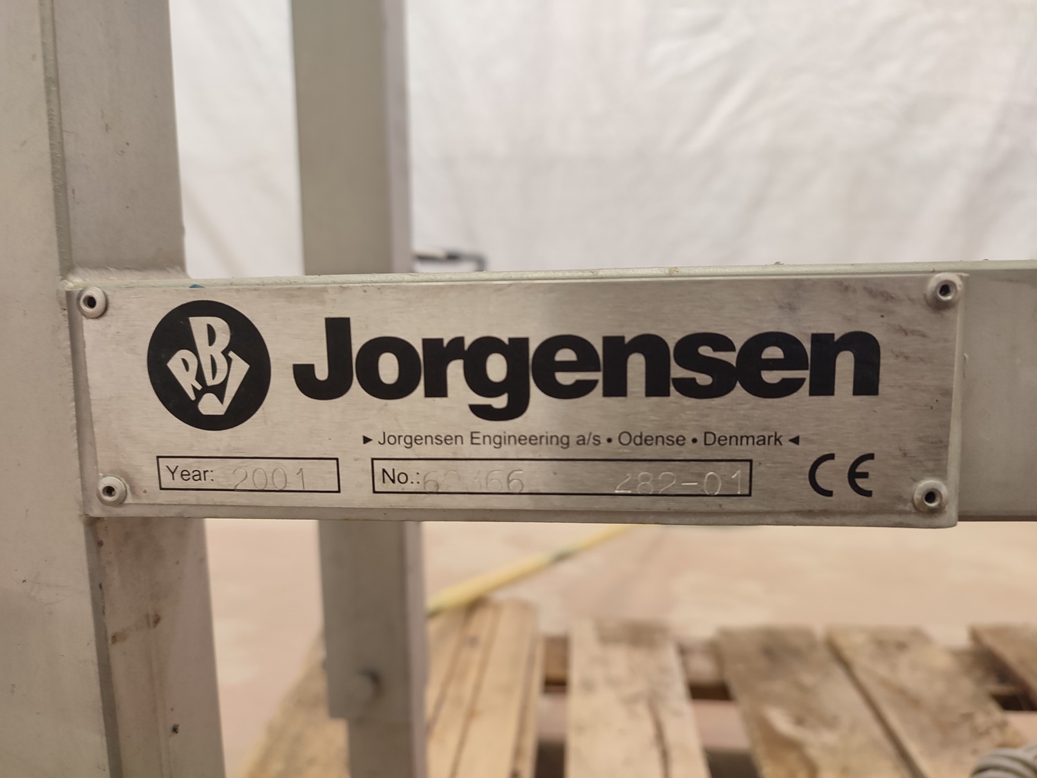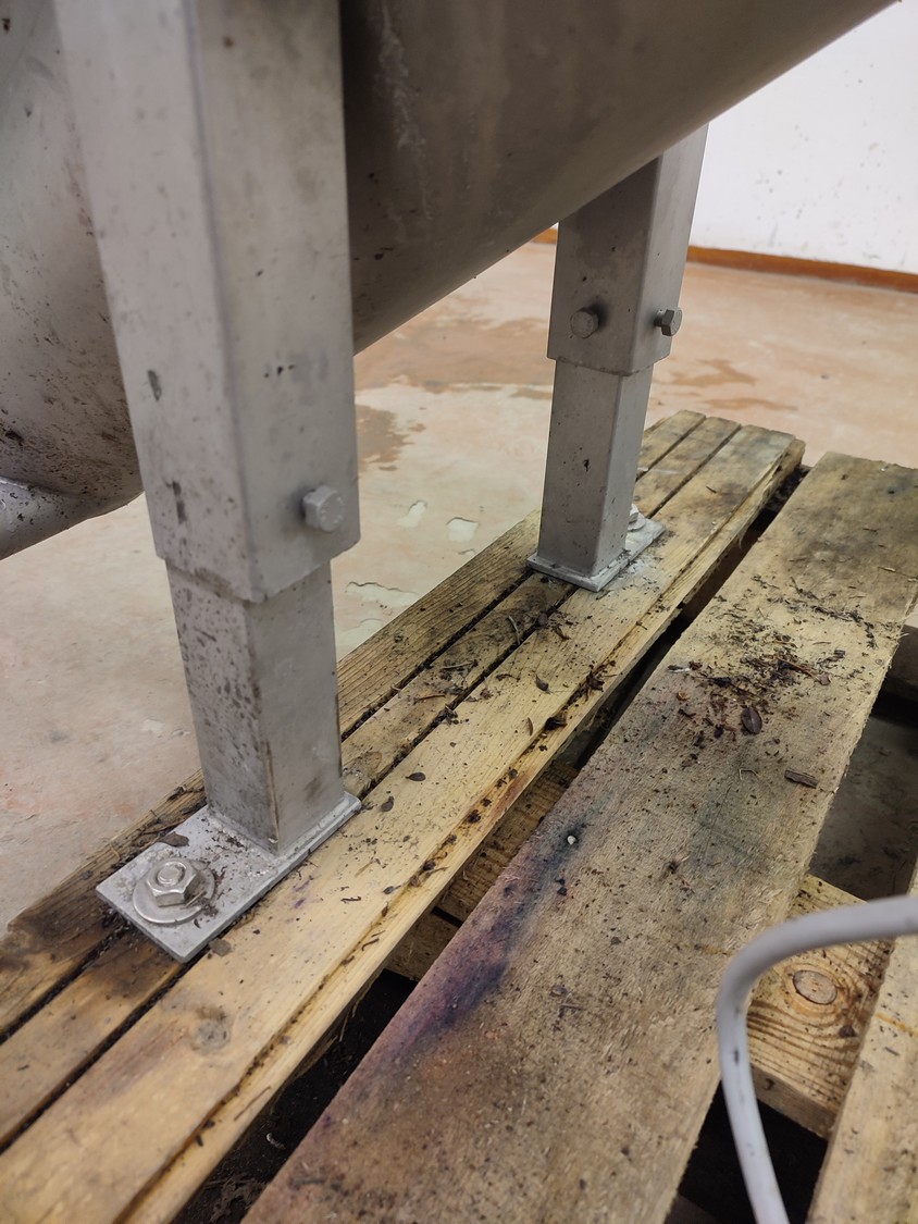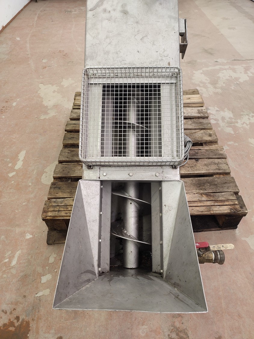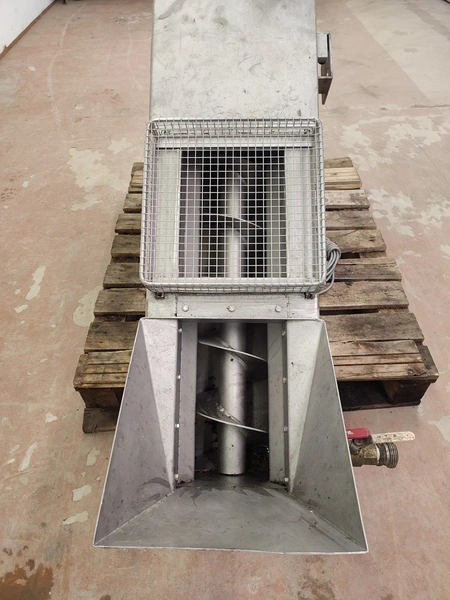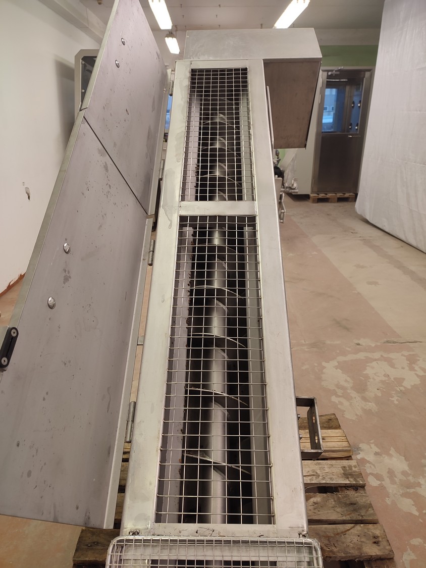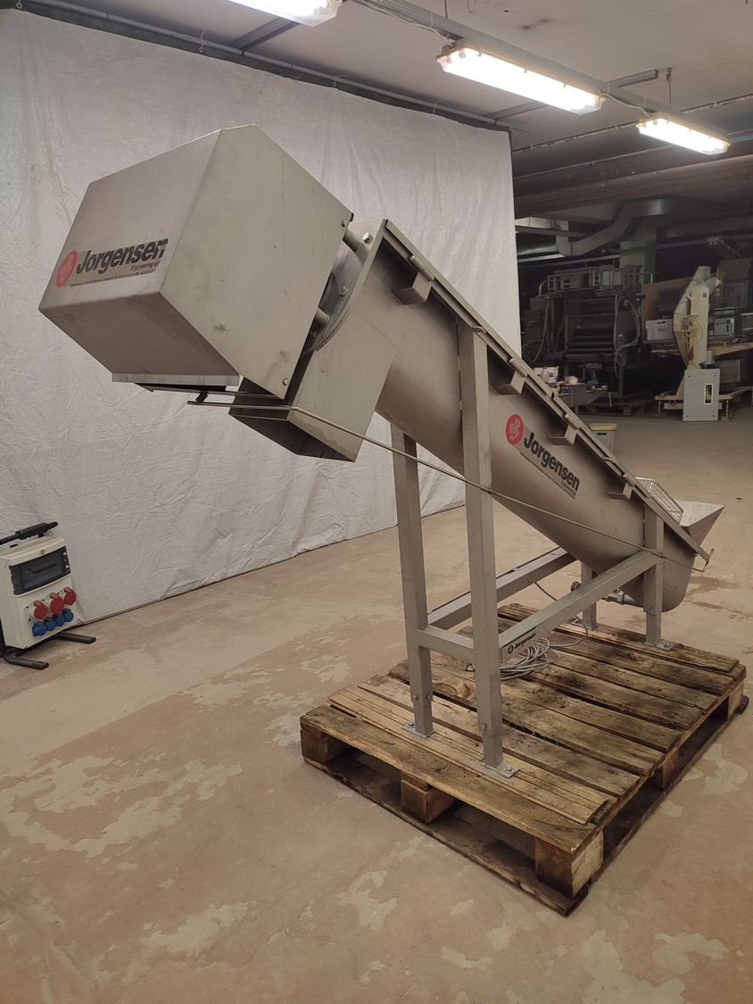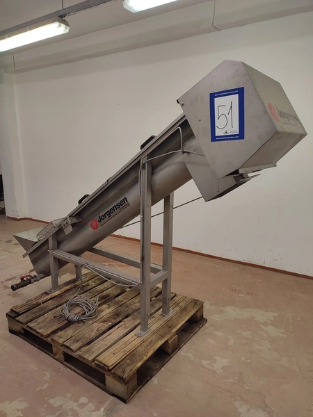 Jorgense elevating screw, number: 62366 282-01, year of construction: 2001, s/s screw, screw diameter: 200 mm, total dimensions: 2500 mm x 550 mm x 1600 mm.