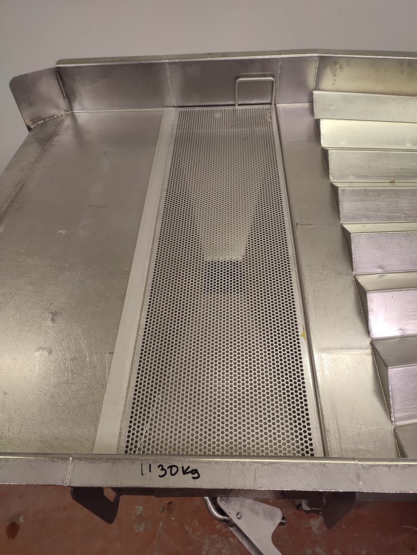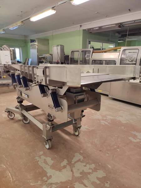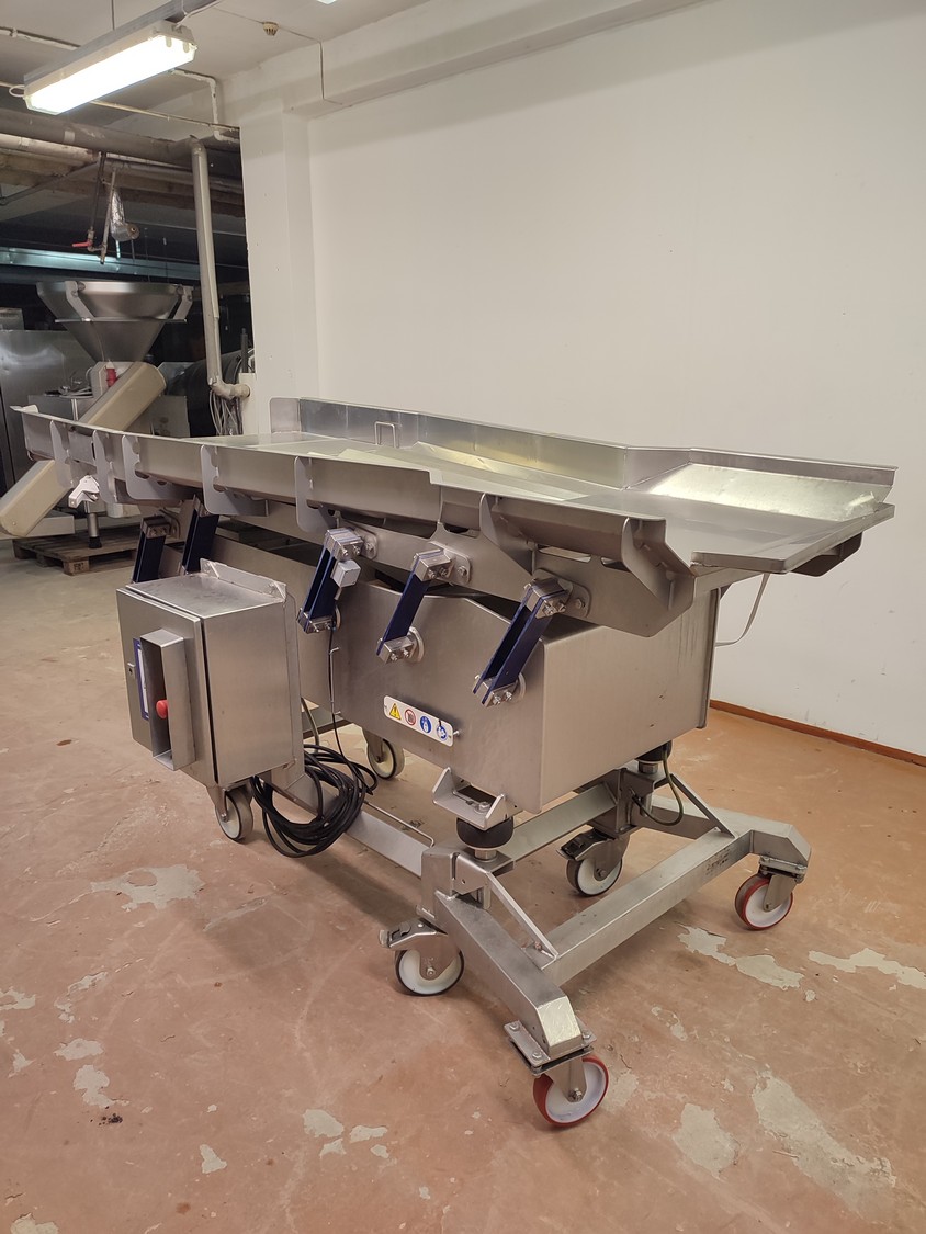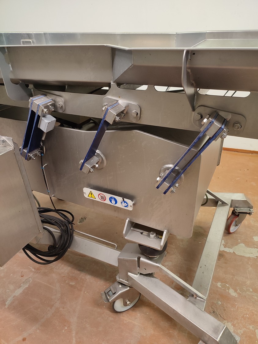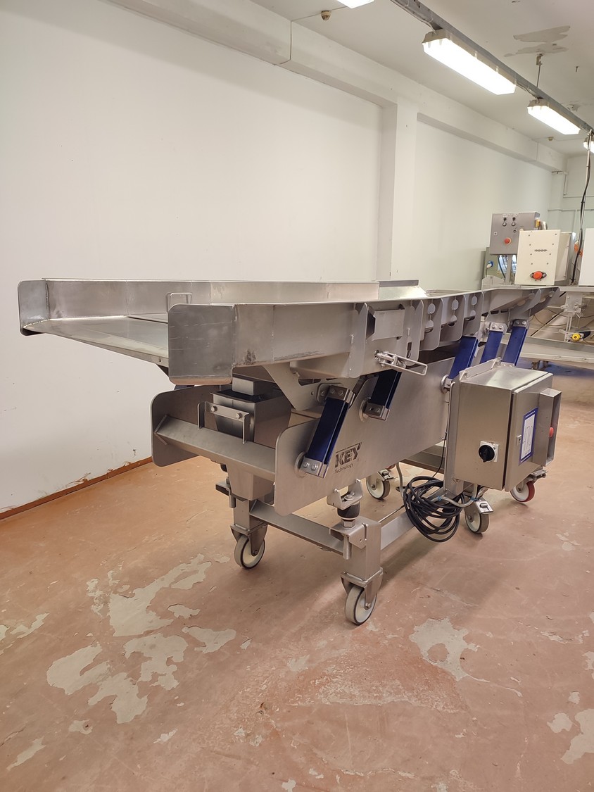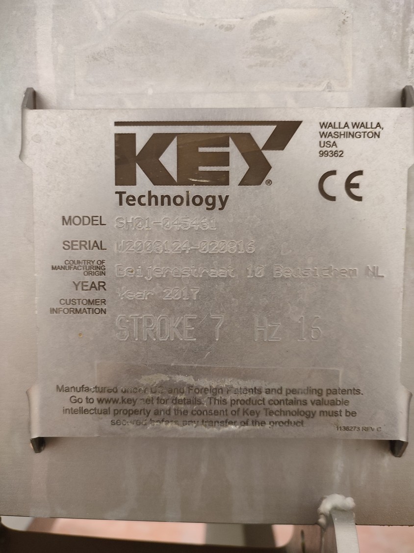 Key Technology vibrating gutter, model: SH01-045461, number: W2008124-020816, year of construction: 2017, s/s gutter, dimensions: 2640 mm x 1200 mm x 1300 mm.