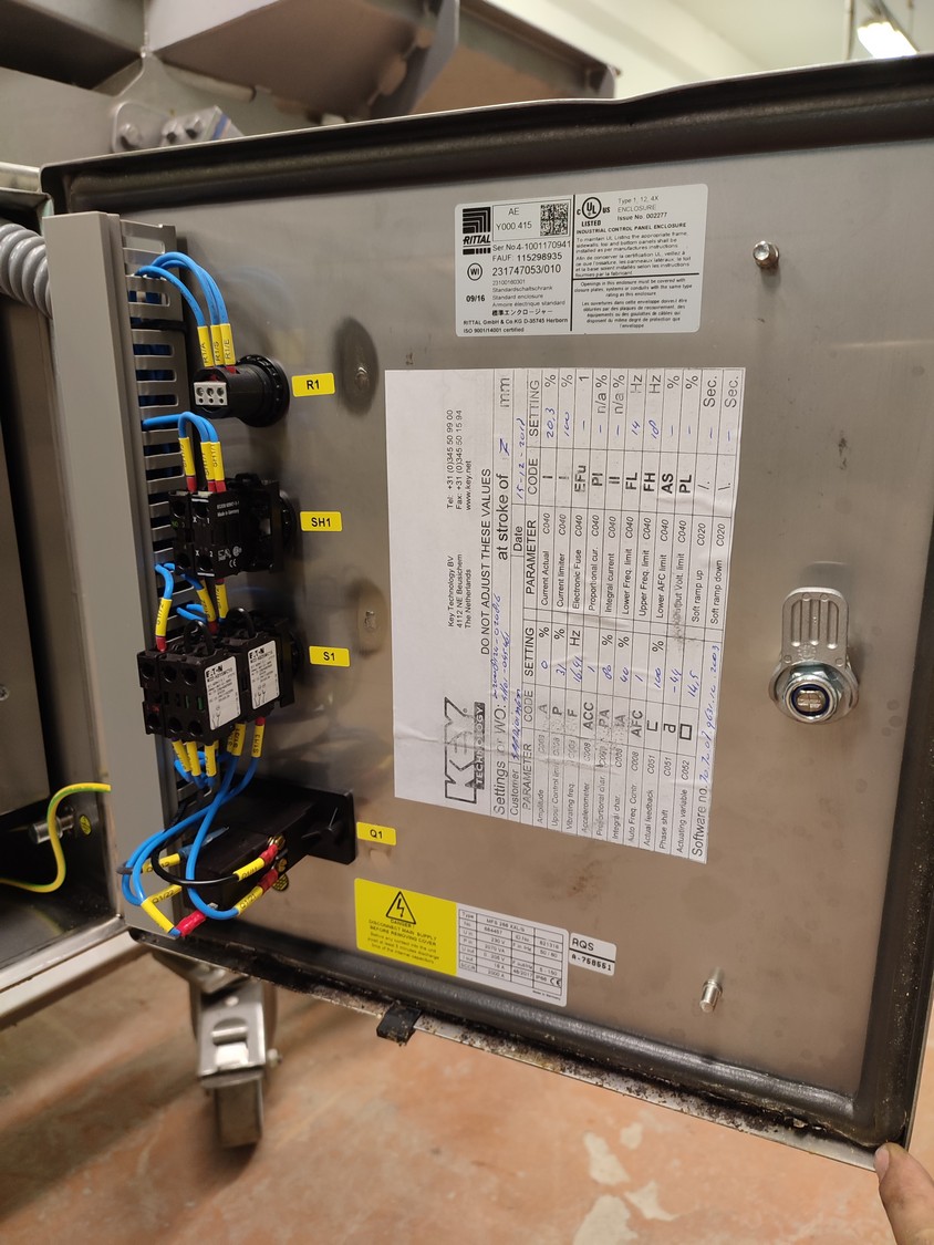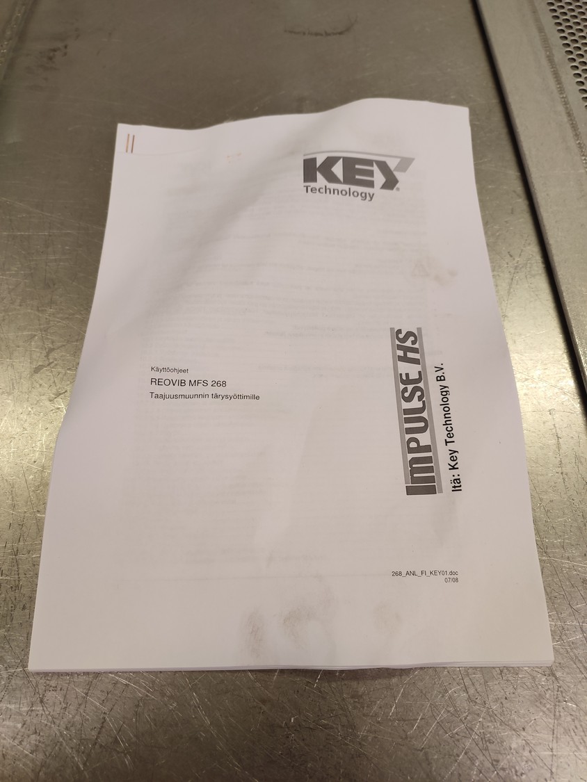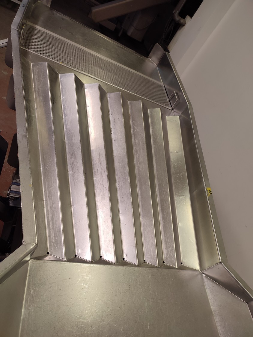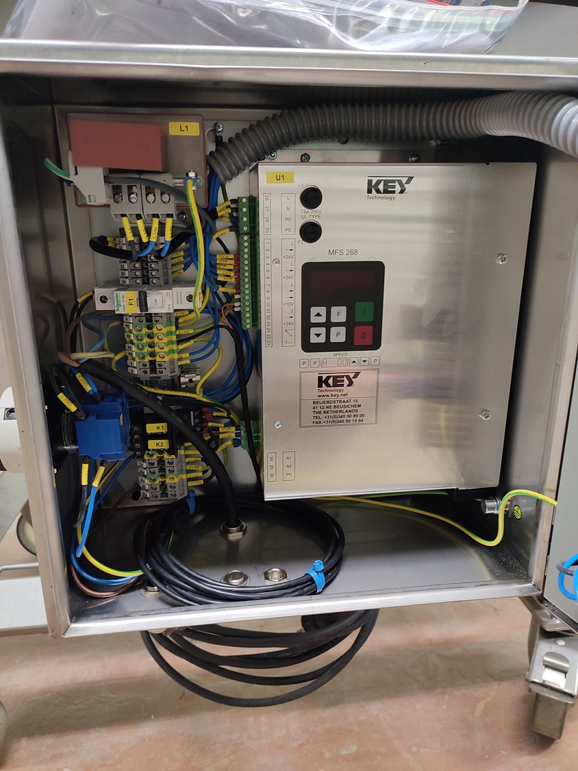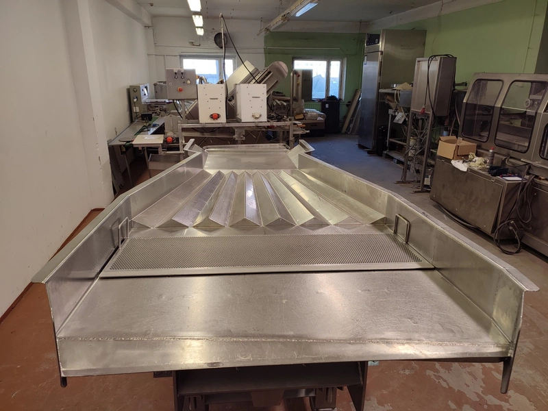 Key Technology vibrating gutter, model: SH01-045461, number: W2008124-020816, year of construction: 2017, s/s gutter, dimensions: 2640 mm x 1200 mm x 1300 mm.