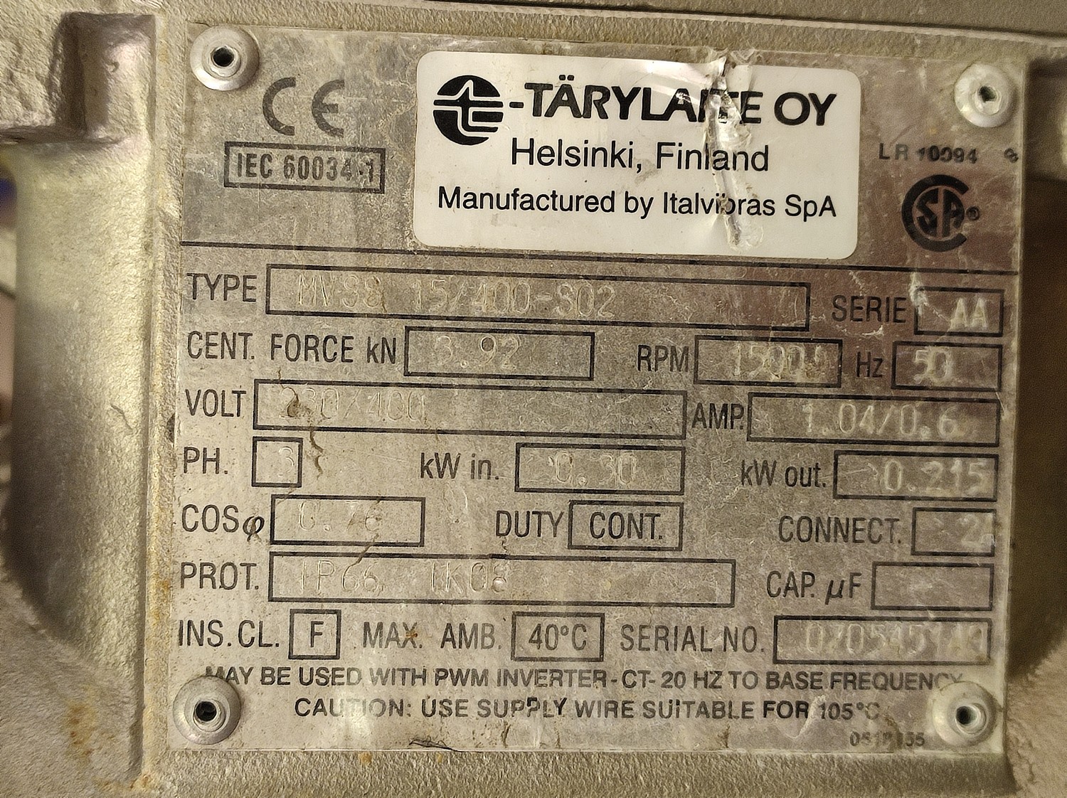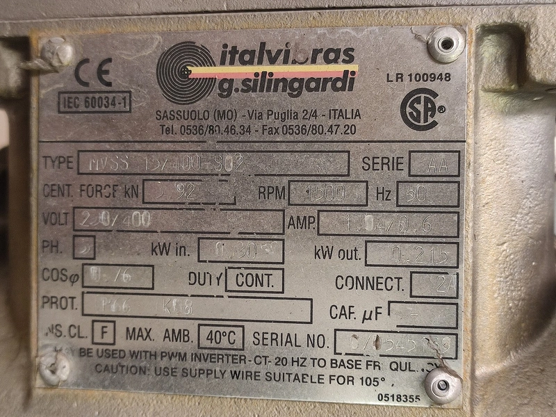 Vibrating gutter, gutter width: 600 mm, total dimensions: 1700 mm x 1150 mm x 1135 mm.