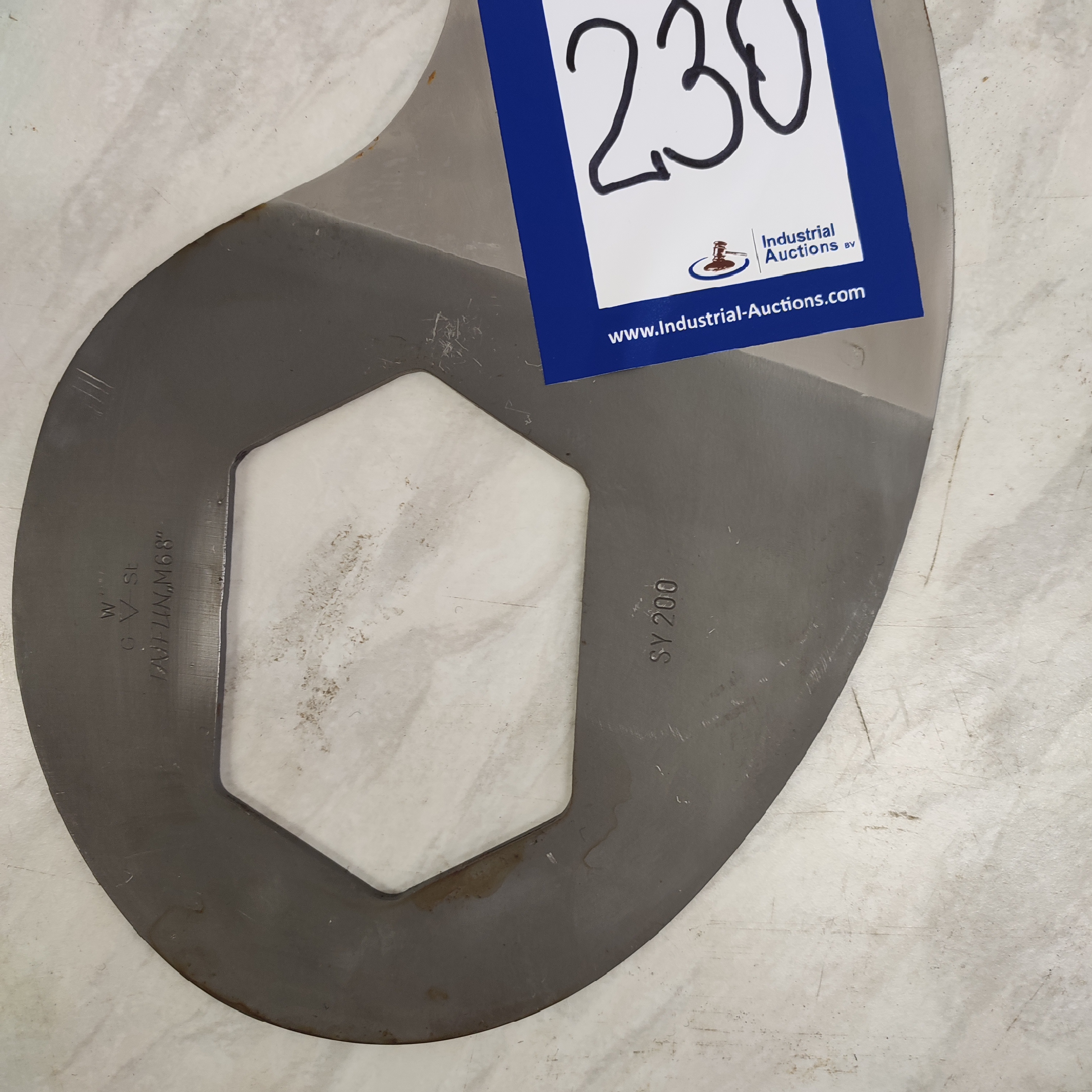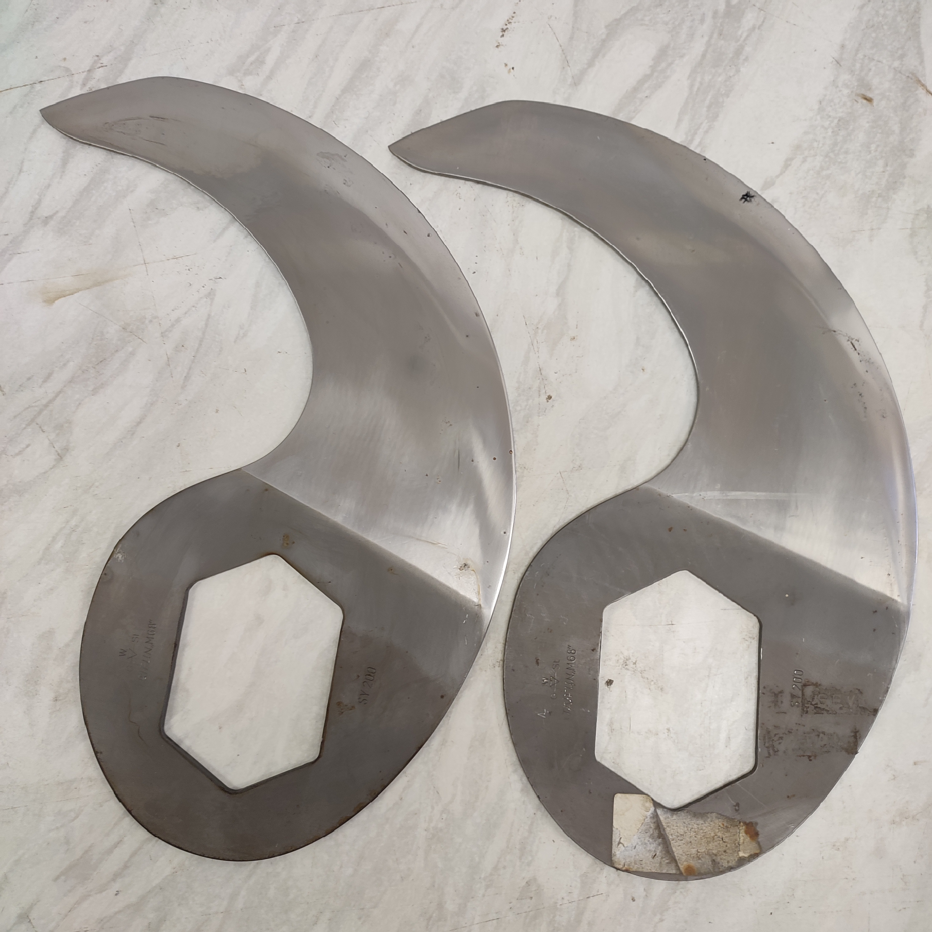 5 GW Steffens bowl cutter blades, type: SY 200, radius: 276 mm, thickness: 4 mm, shaft/hex 70 mm, total dimensions: 360 mm x 205 mm x 20 mm.