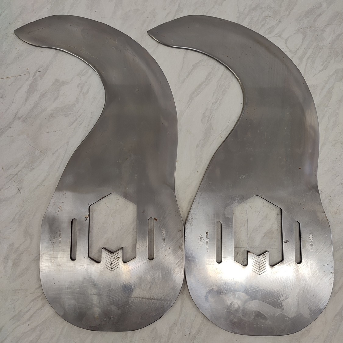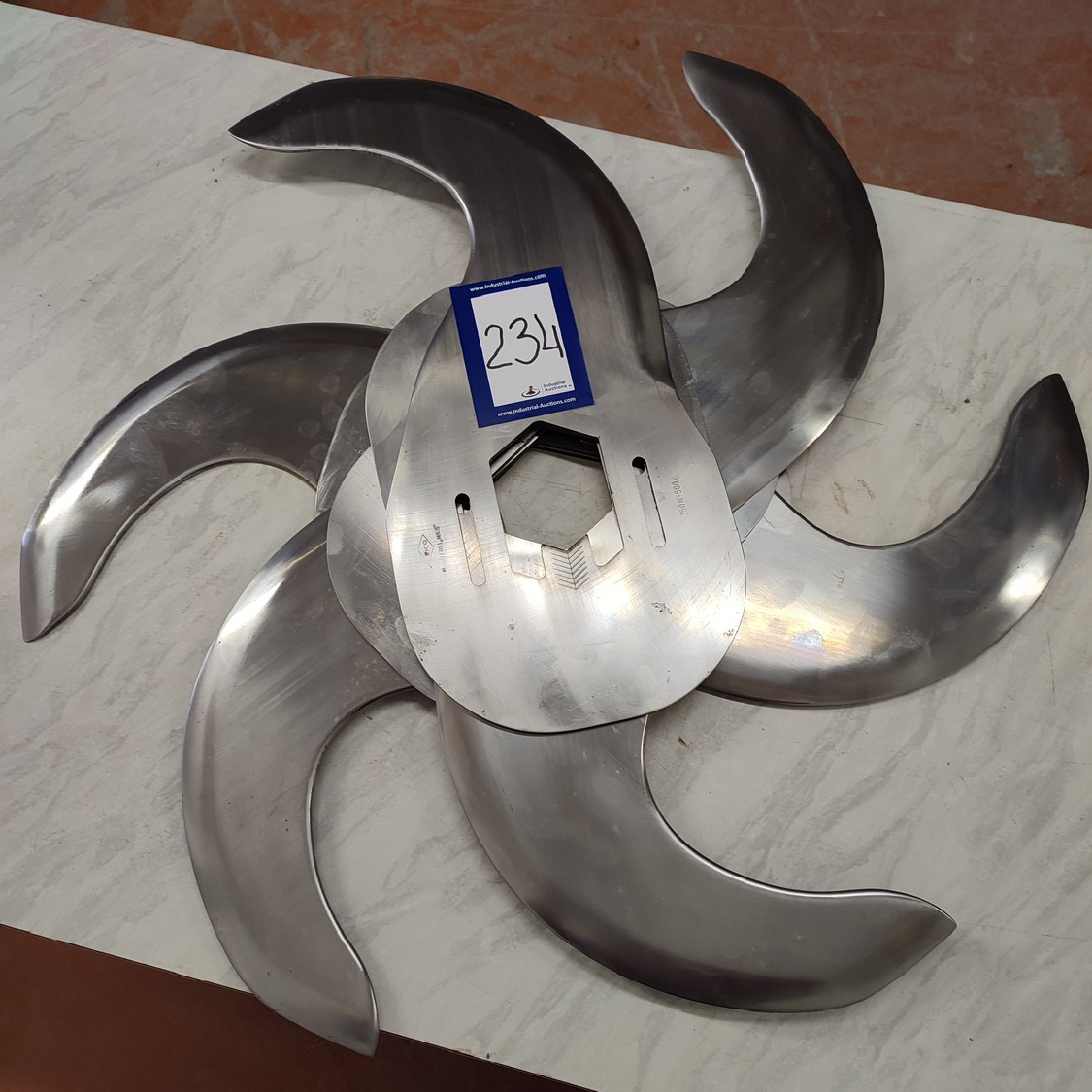 6 Zico bowl cutter blades, type: A 885 (350R - 500L), radius: 350 mm, thickness: 6 mm, shaft/hex 70 mm, total dimensions: 490 mm x 235 mm x 36 mm.