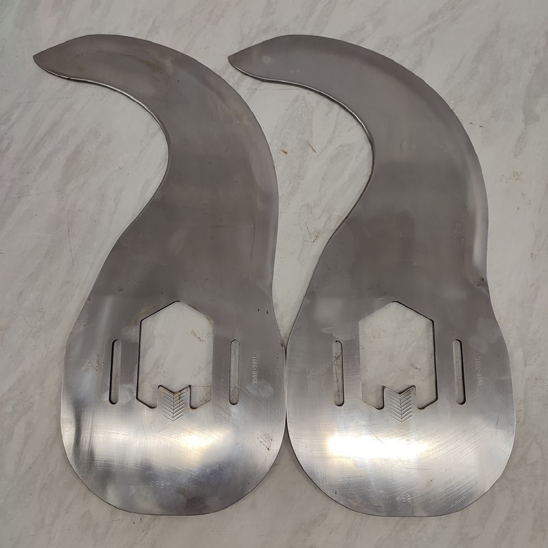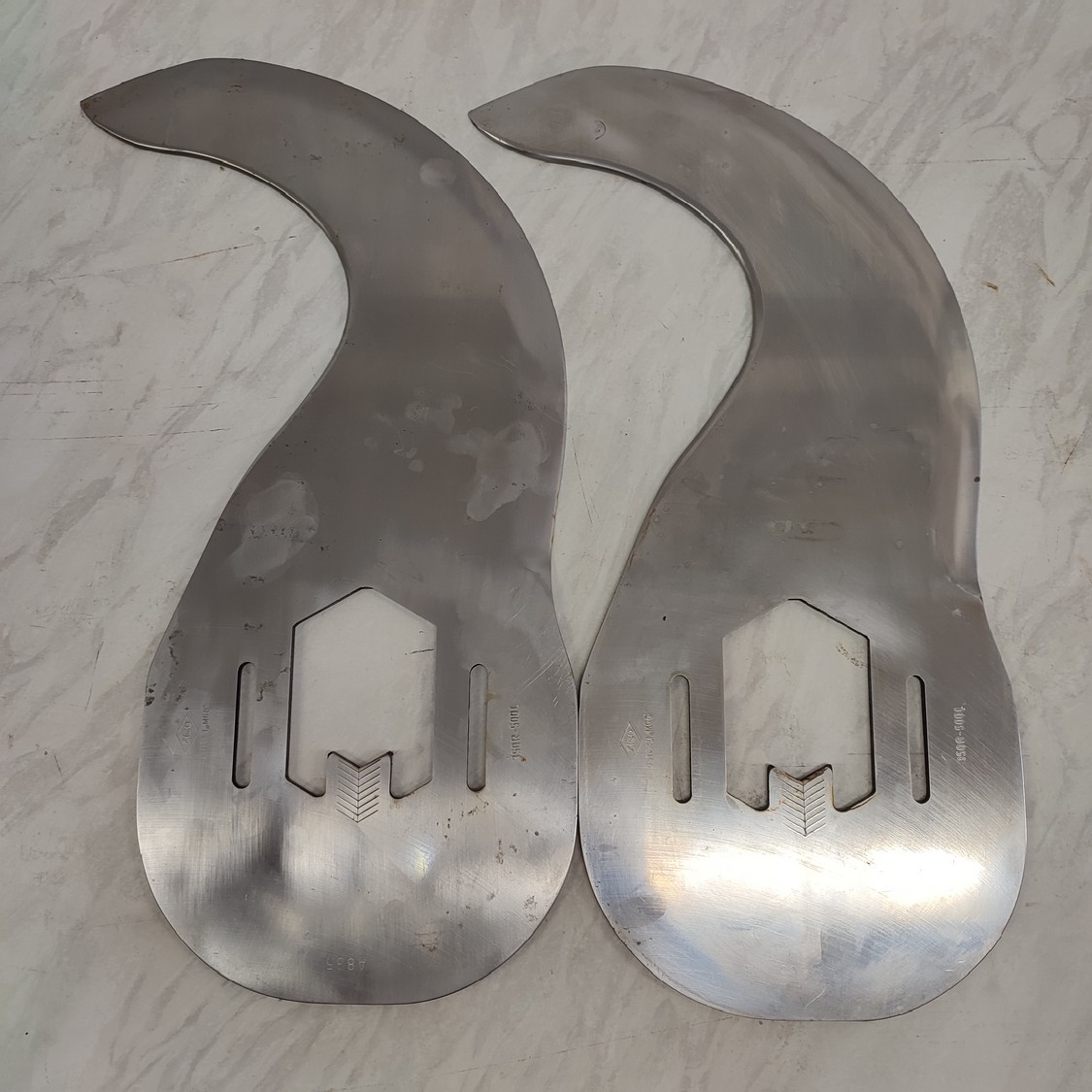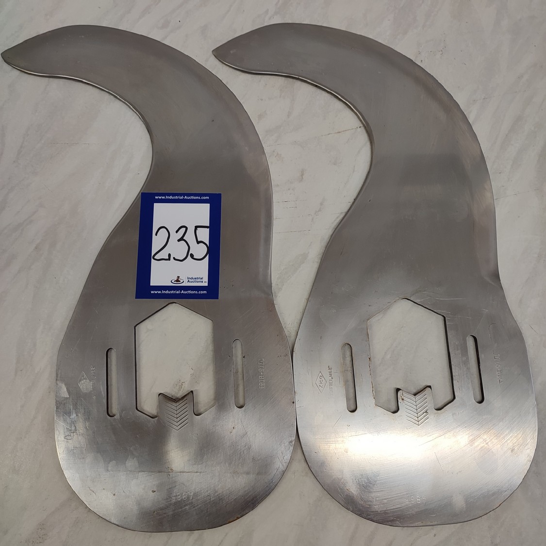6 Zico bowl cutter blades, type: A 885 (350R - 500L), radius: 350 mm, thickness: 6 mm, shaft/hex 70 mm, total dimensions: 490 mm x 235 mm x 36 mm.