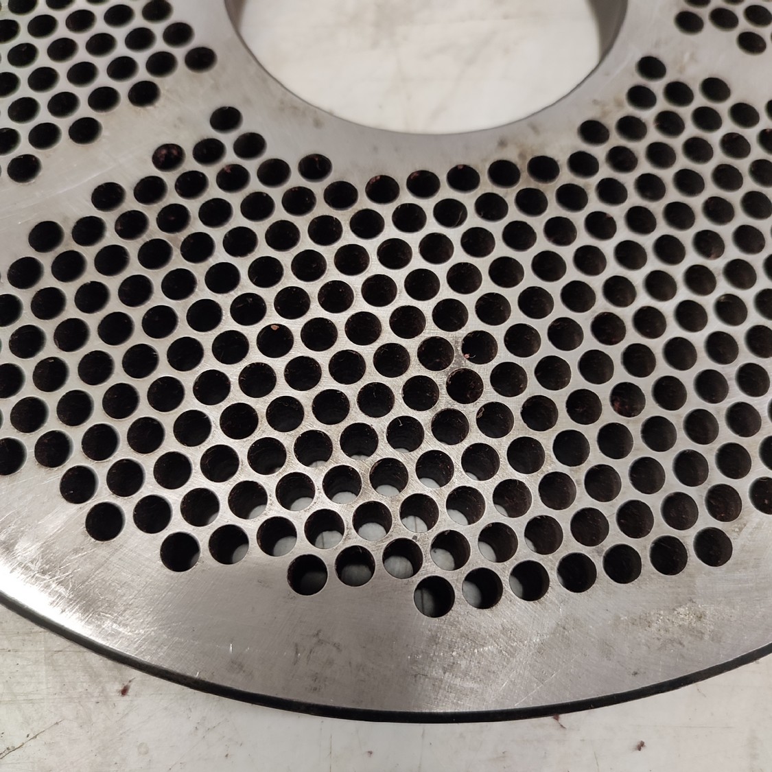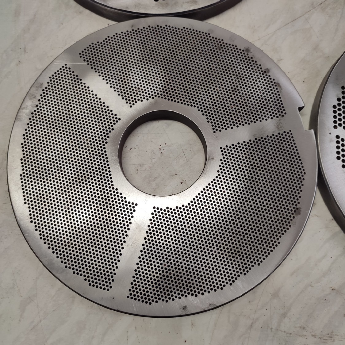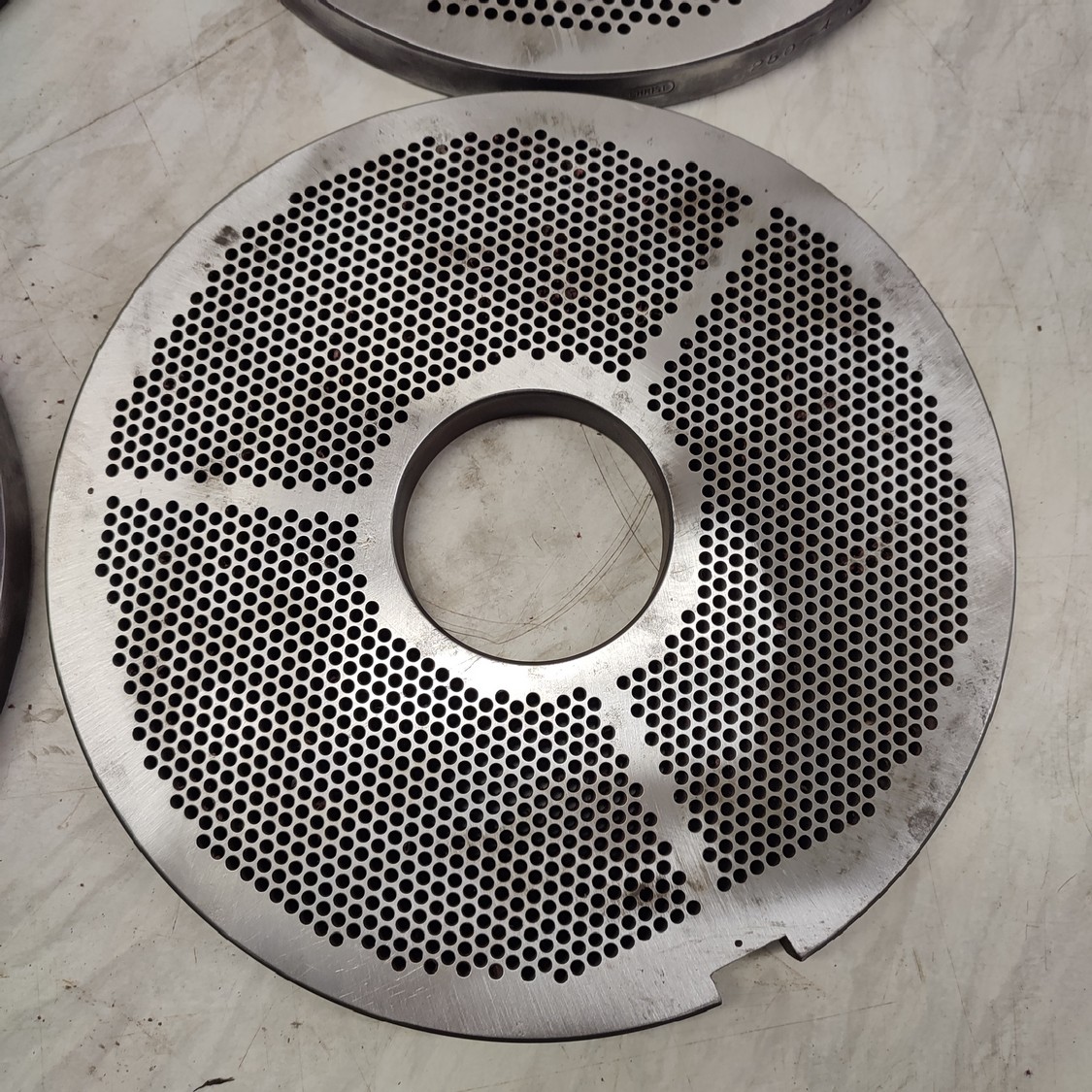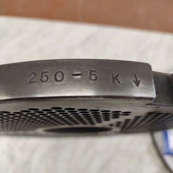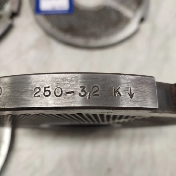 4 Christ grinder plate, plate diameter: 250 mm, Ø centre hole: 70 mm, plate perforations 2 mm / 3.2 mm / 4.0 mm / 5.0 mm.