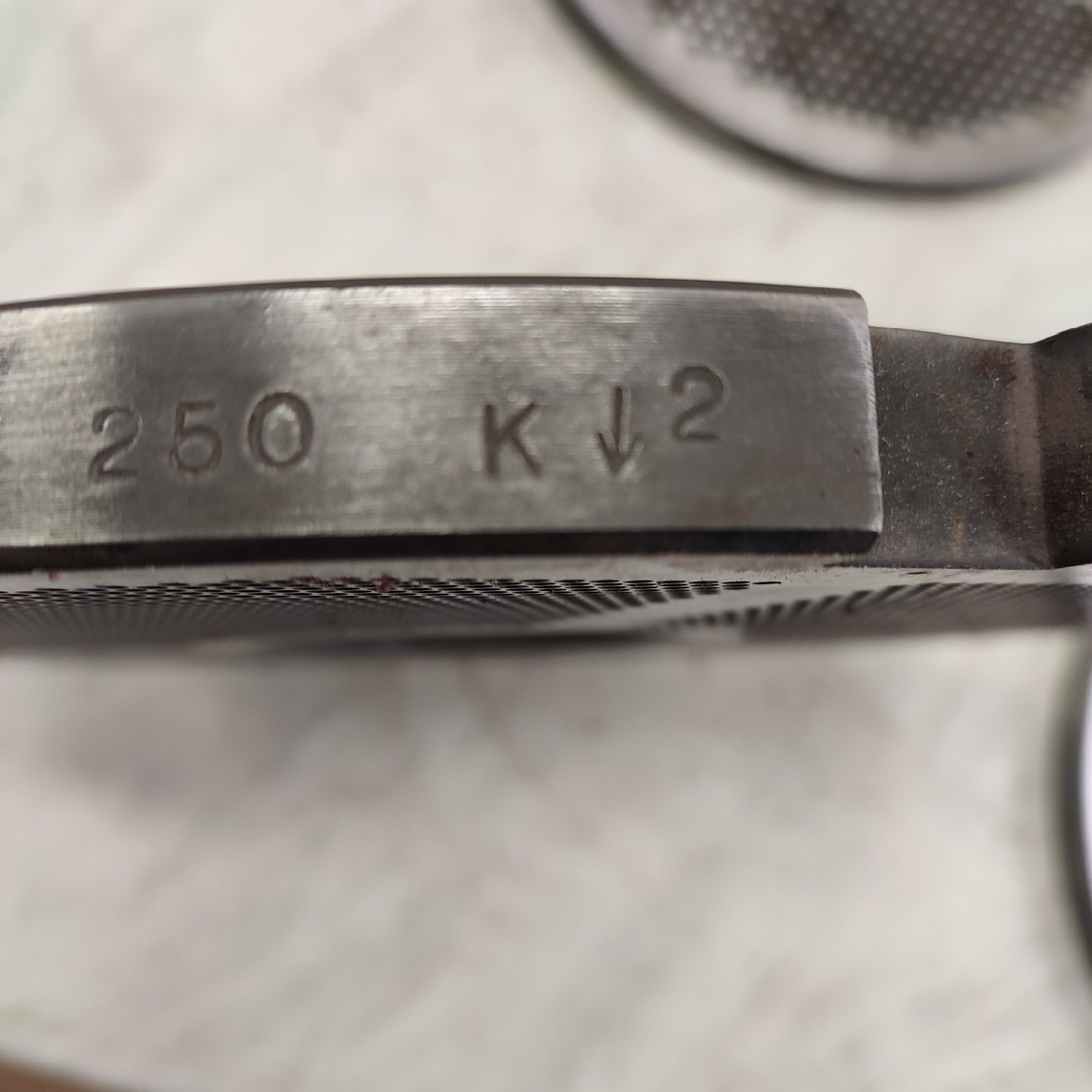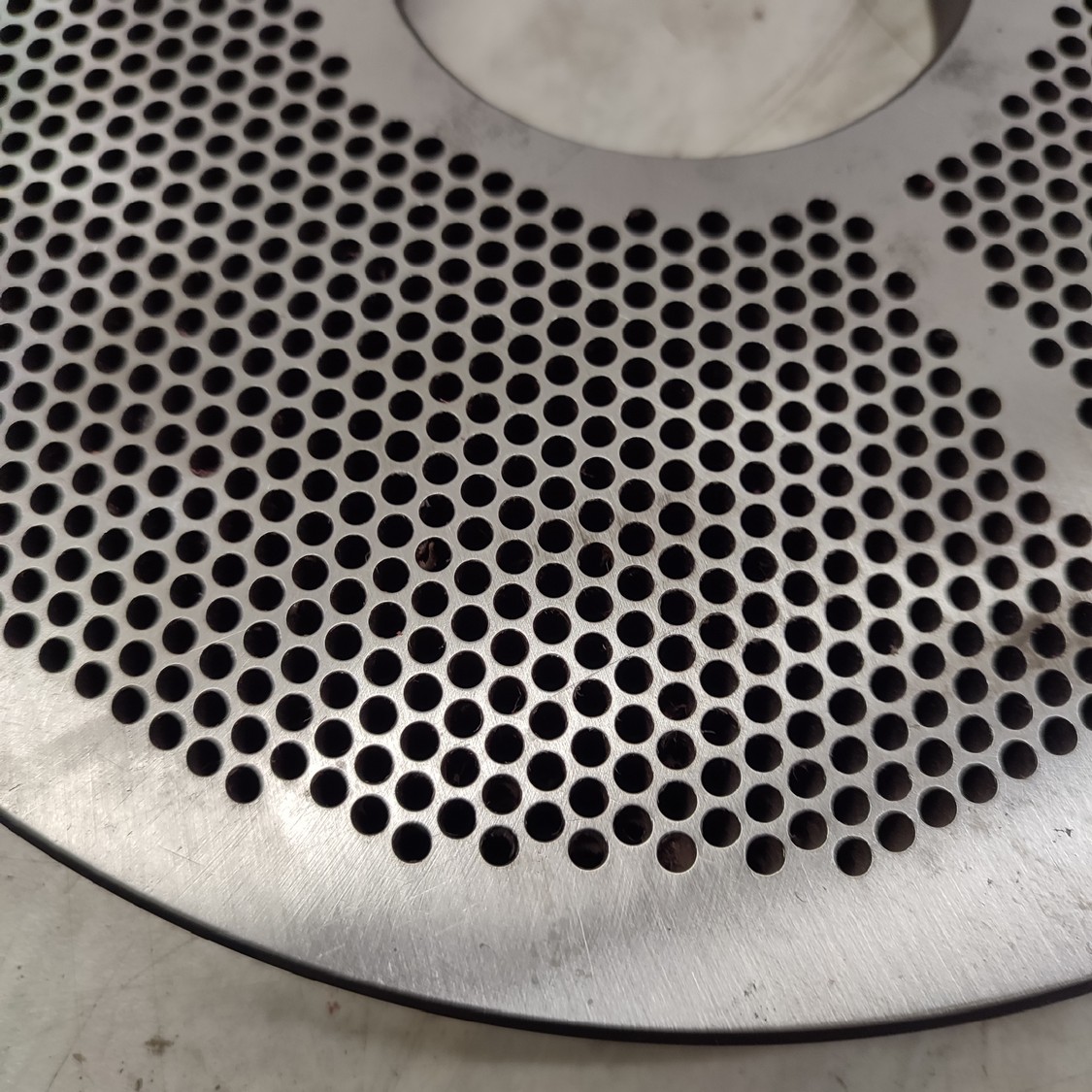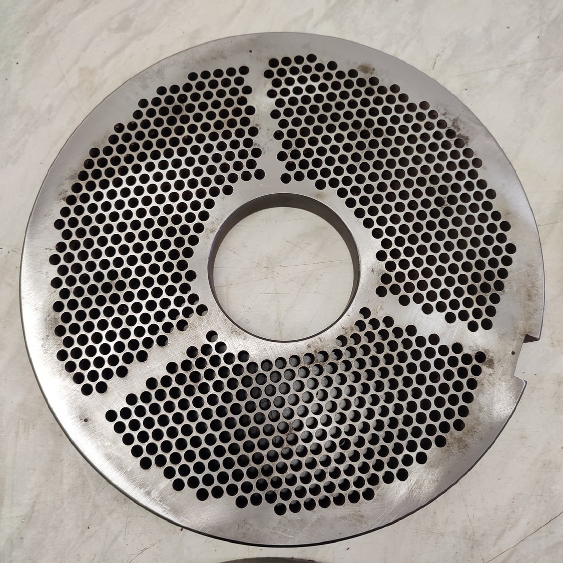 4 Christ grinder plate, plate diameter: 250 mm, Ø centre hole: 70 mm, plate perforations 2 mm / 3.2 mm / 4.0 mm / 5.0 mm.