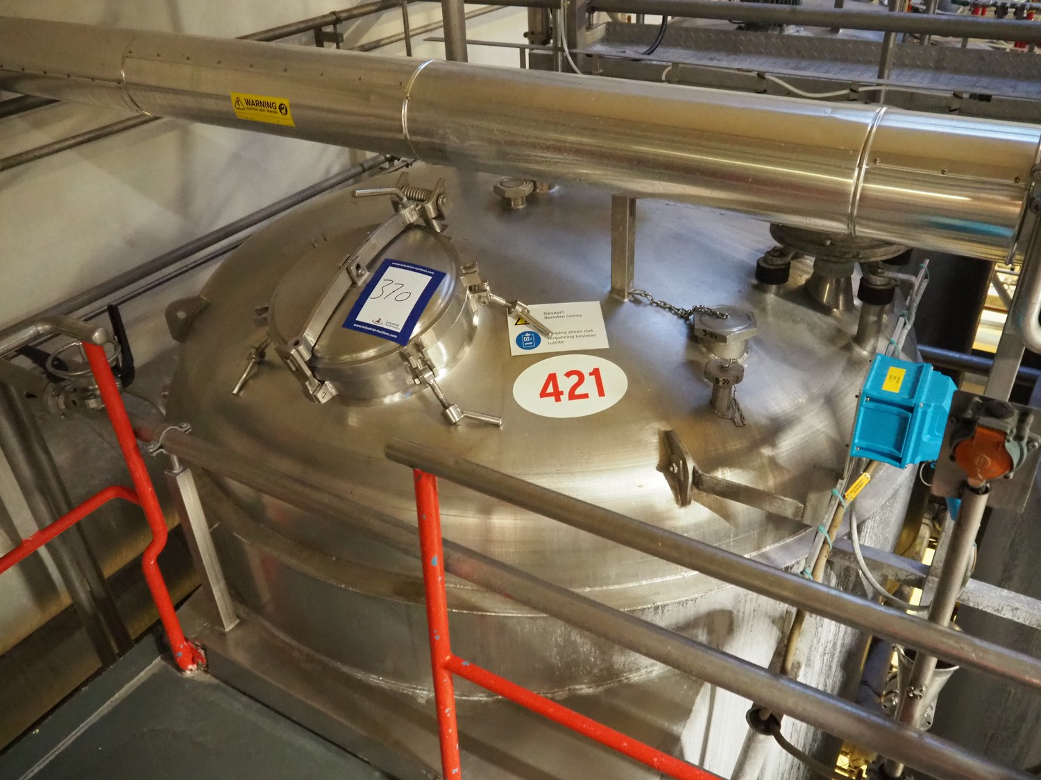 S/s double jacketed tank with agitator, dimensions: Ø 1750 mm x 5000 mm. Including various valves.€ 3.500,000 bids18/06/2026 15:10 -