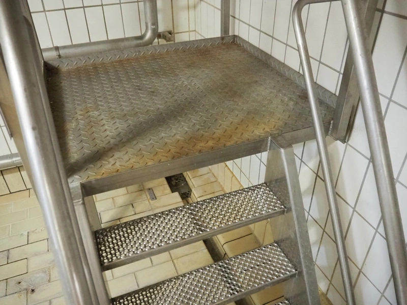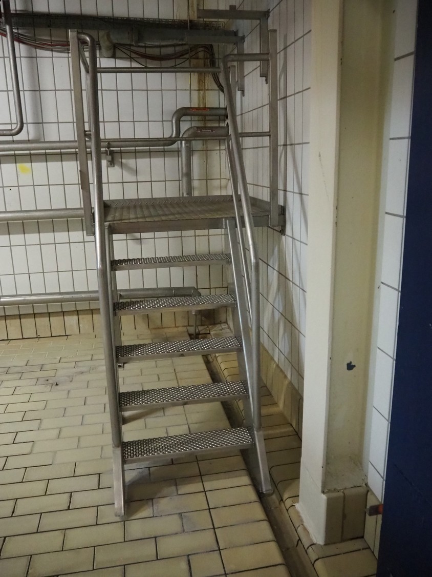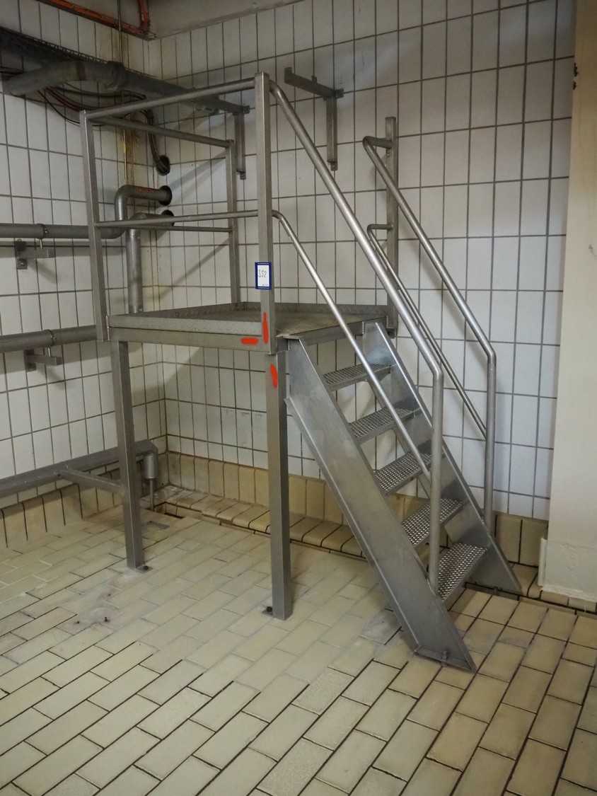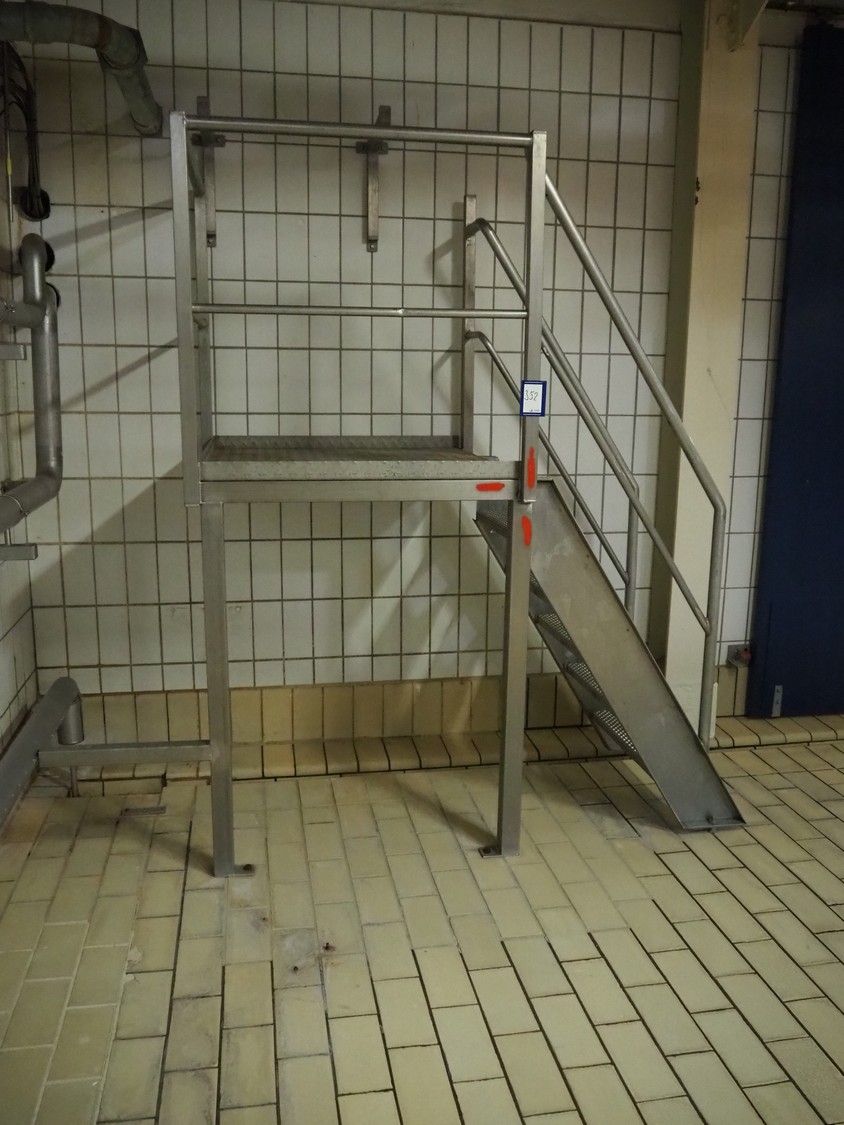 S/s platform wit stairs, working height: 1200 mm, total dimensions: 2300 mm x 400 mm x 2150 mm.