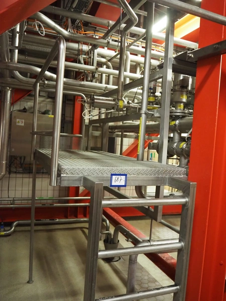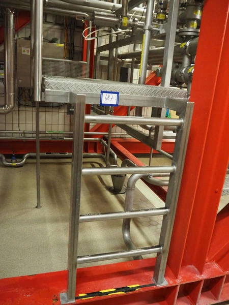 S/s platform with stairs, working height: 1550 mm, dimensions: 1900 mm x 850 mm x 2320 mm.