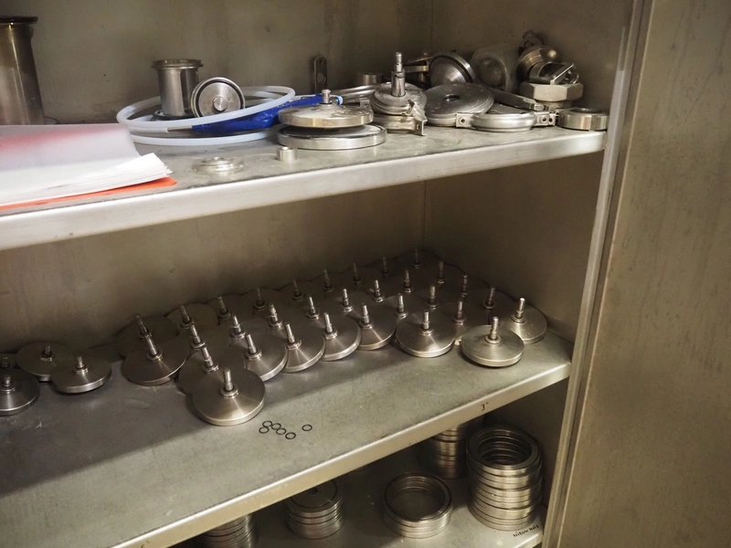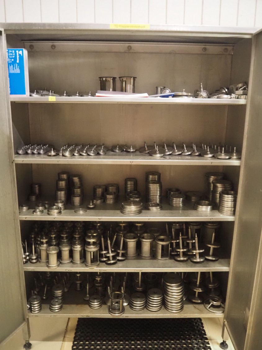 S/s cabinet, dimensions: 1450 mm x 500 mm x 2100 mm. Please note that we cannot guarantee the presence or completeness of any parts or accessories shown inside the cabinet.