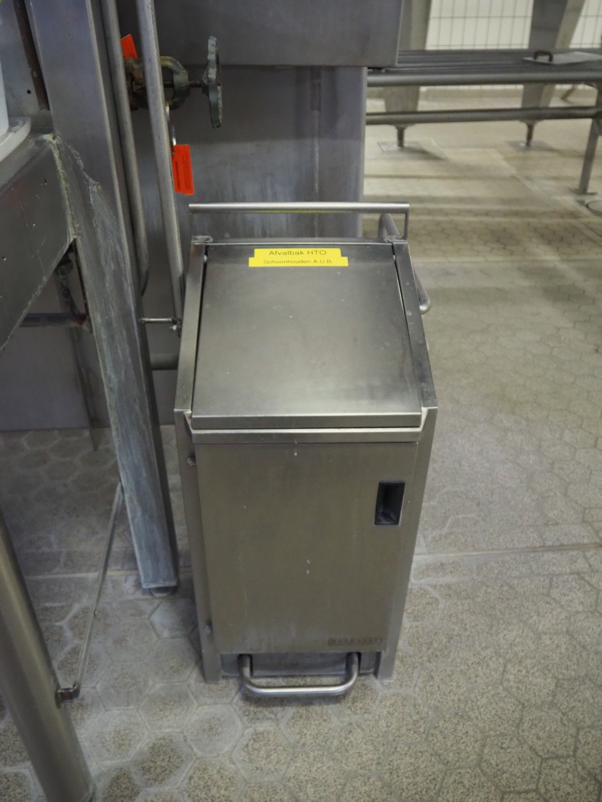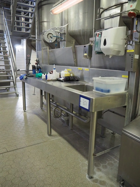S/s washing table with sink and s/s waste bin, dimensions: 3000 mm x 600 mm x 1800 mm.