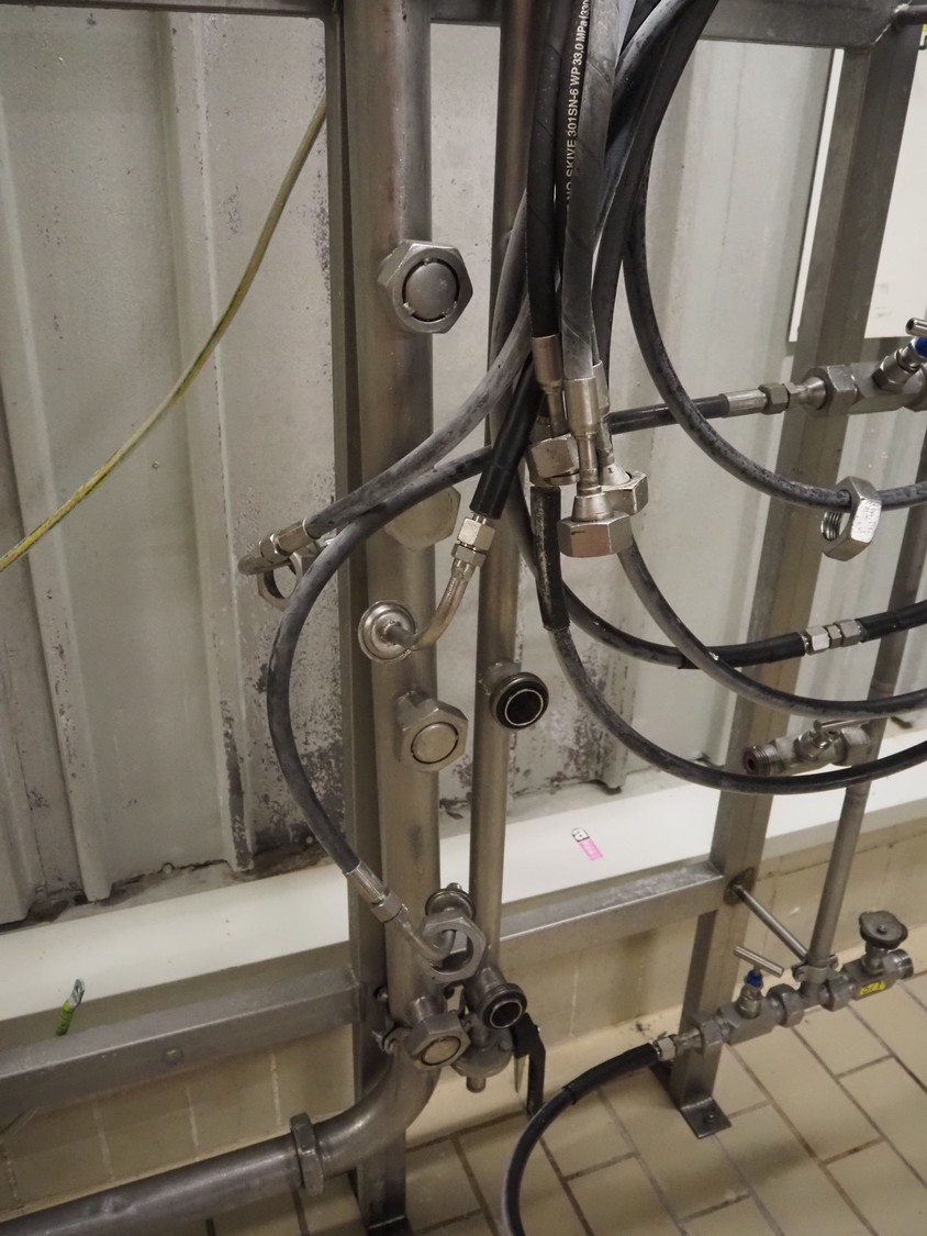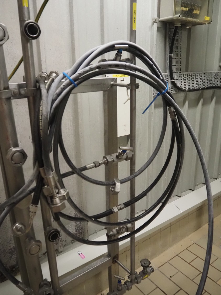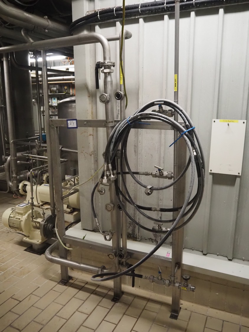S/s frame with tubes and hoses, dimensions: 1200 mm x 250 mm x 2150 mm.
