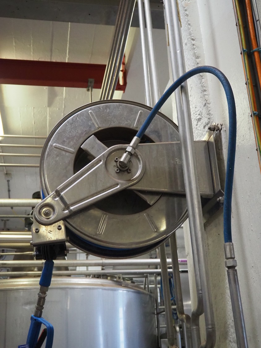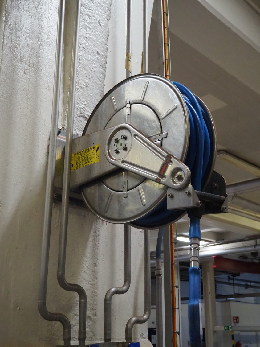 Elpress s/s hose reel with hose, dimensions: 600 mm x 300 mm x 600 mm.