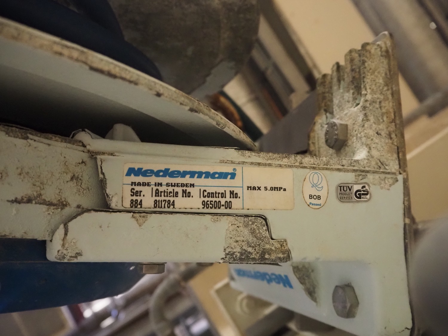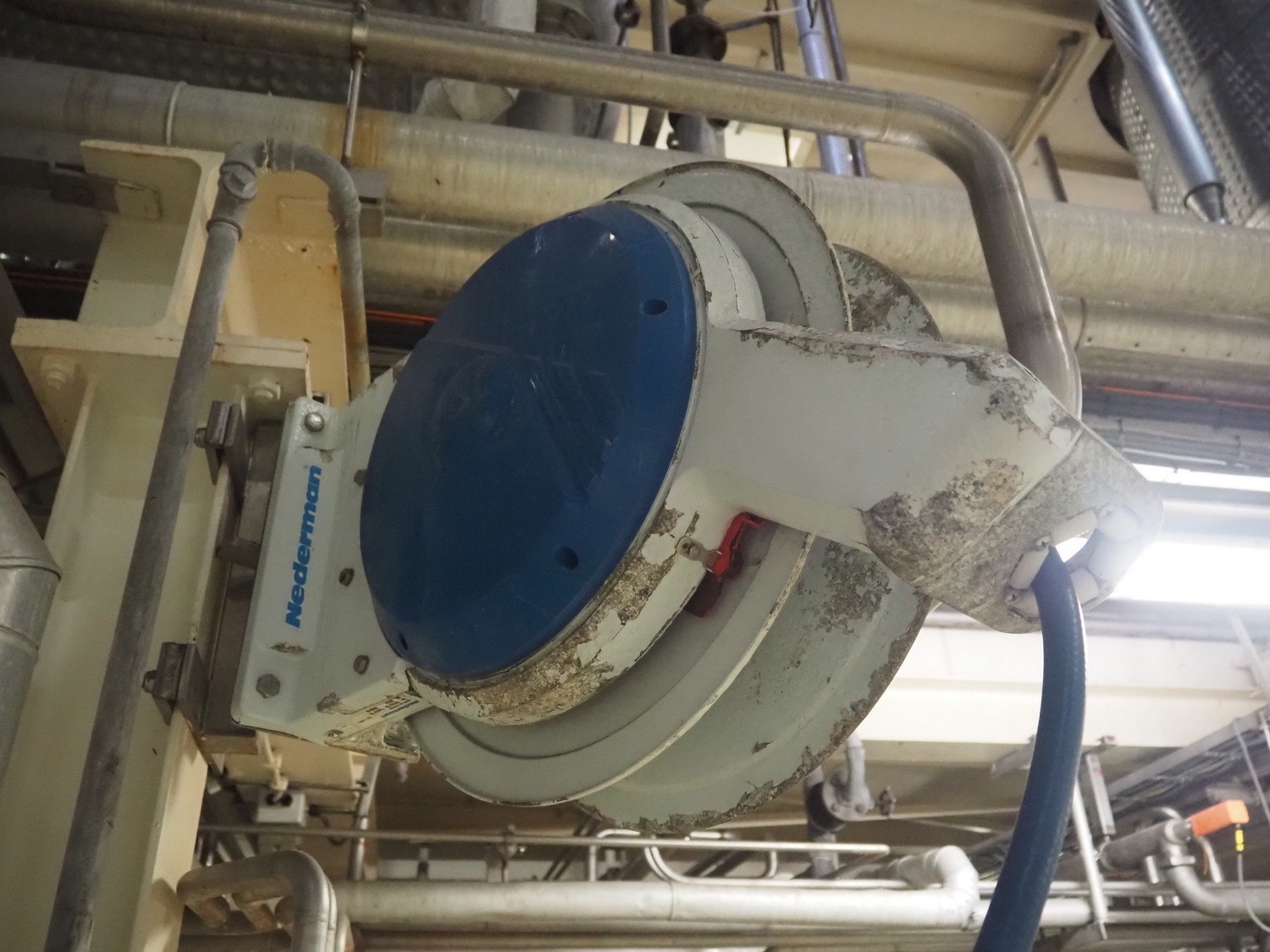 Nederman hose reel with hose and pistol, serial number: 884, dimensions: 700 mm x 300 mm x 550 mm.