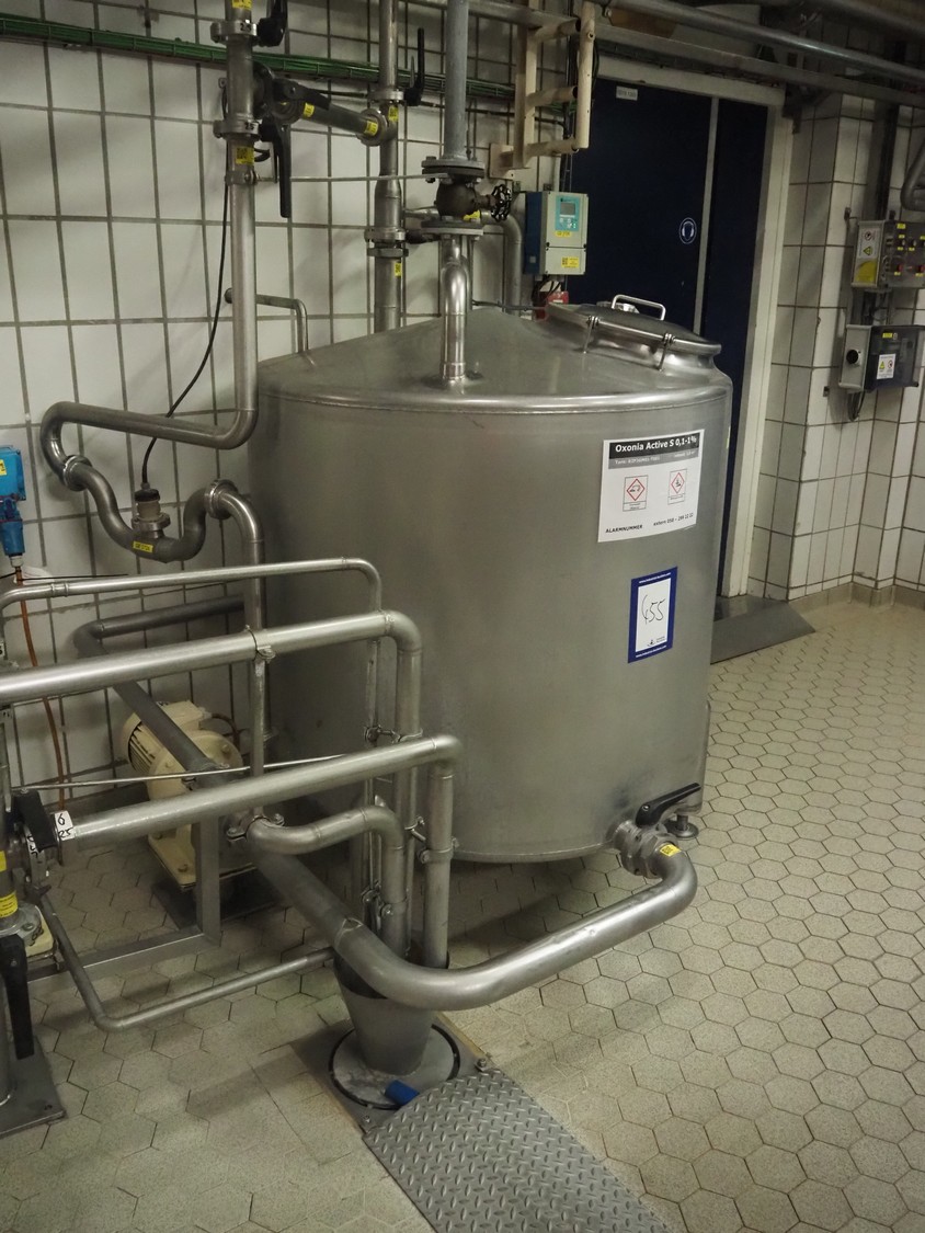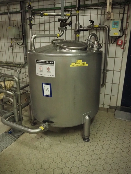 S/s tank used for Oxonia Active with Fristam centrifugal pump, dimensions tank: ø 1150 mm x 1500 mm.