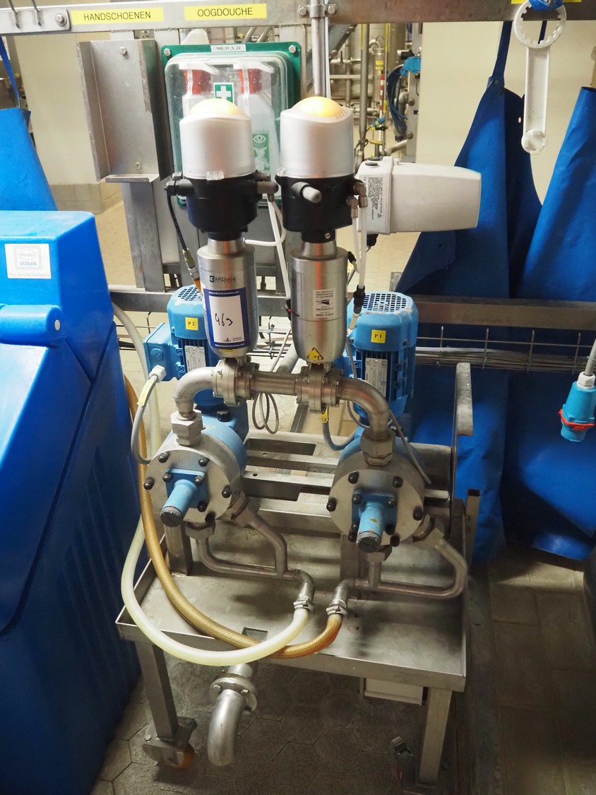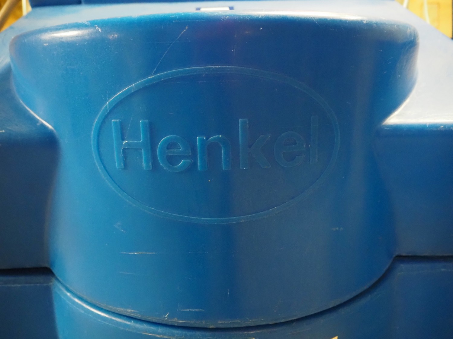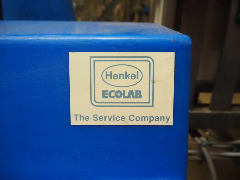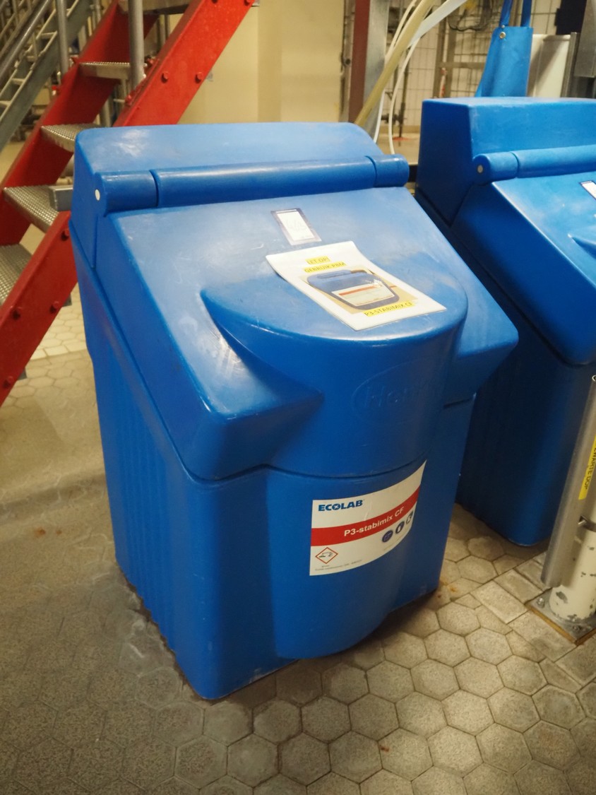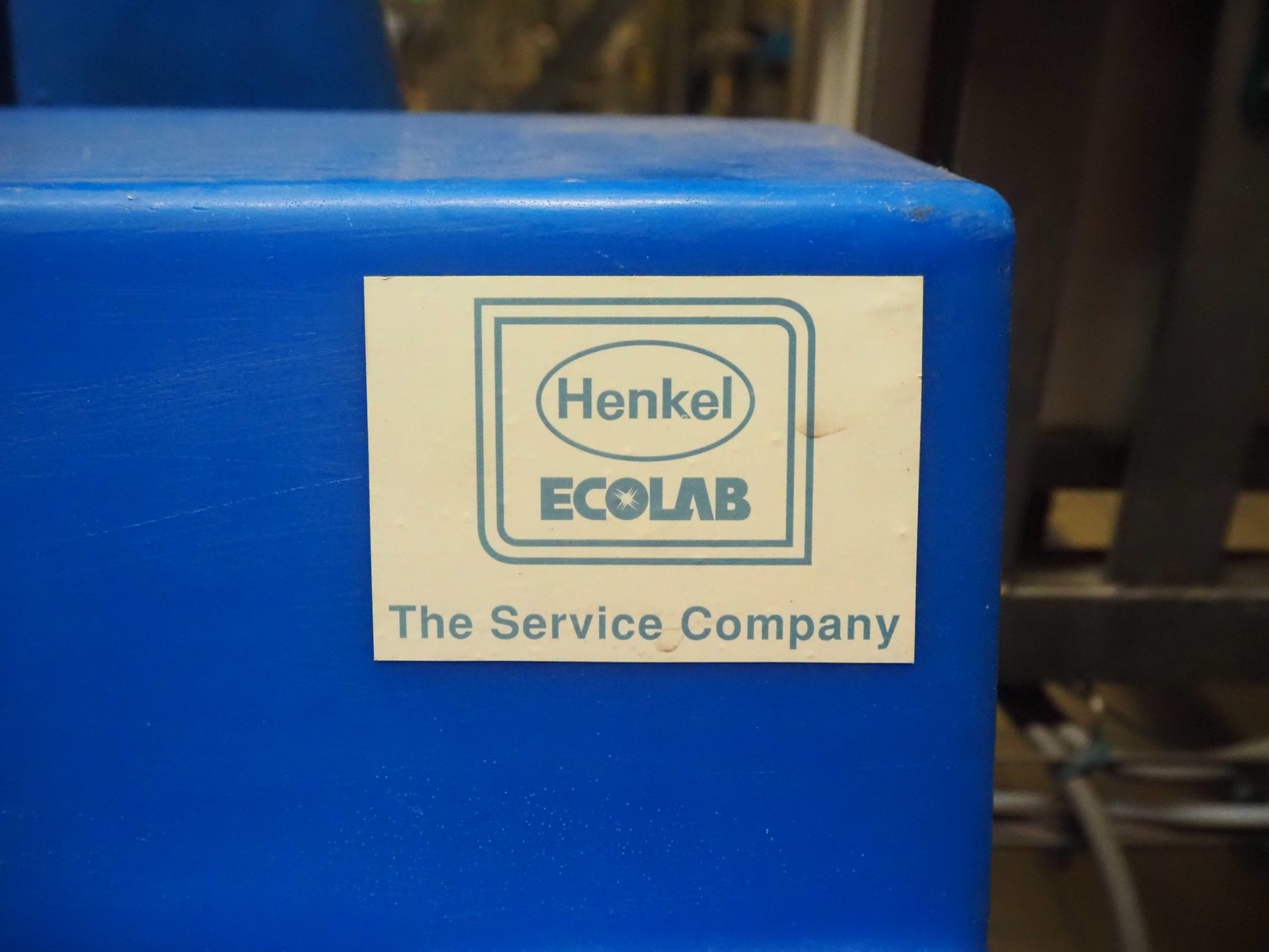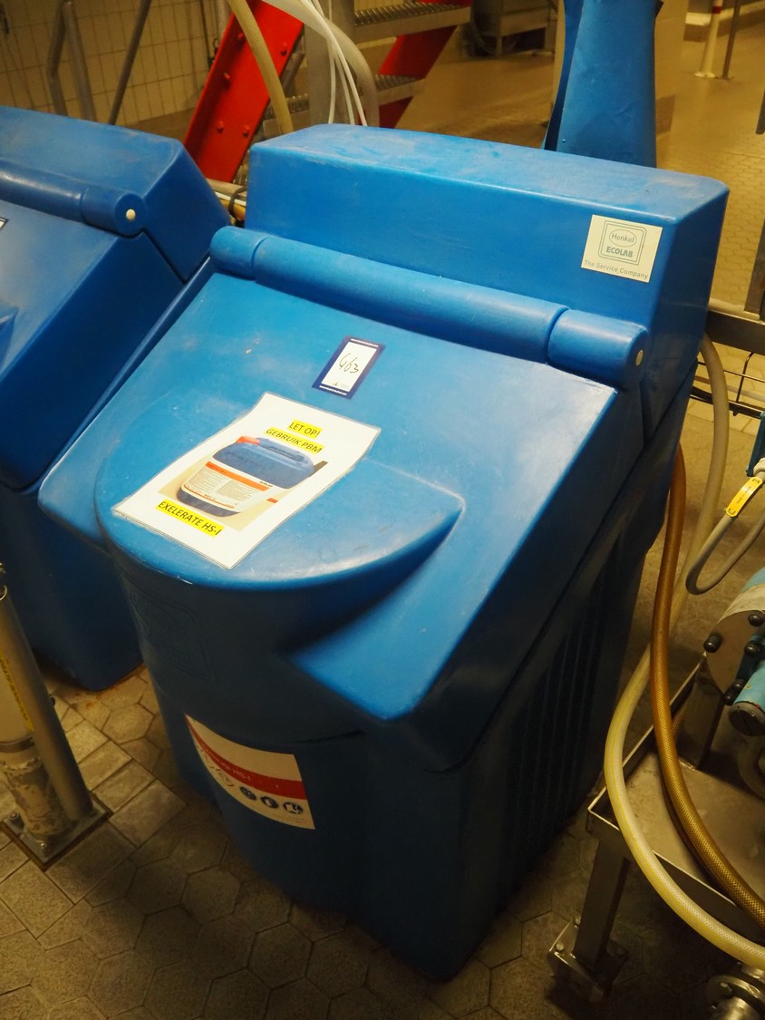 Chemical dosing installation consisting of 2 Henkel Ecolab plastic containers, 2 sera GmbH dosing pumps and 2 Bardiana Valvole Spa valves, total dimensions: 3100 mm x 1000 mm x 2000 mm.